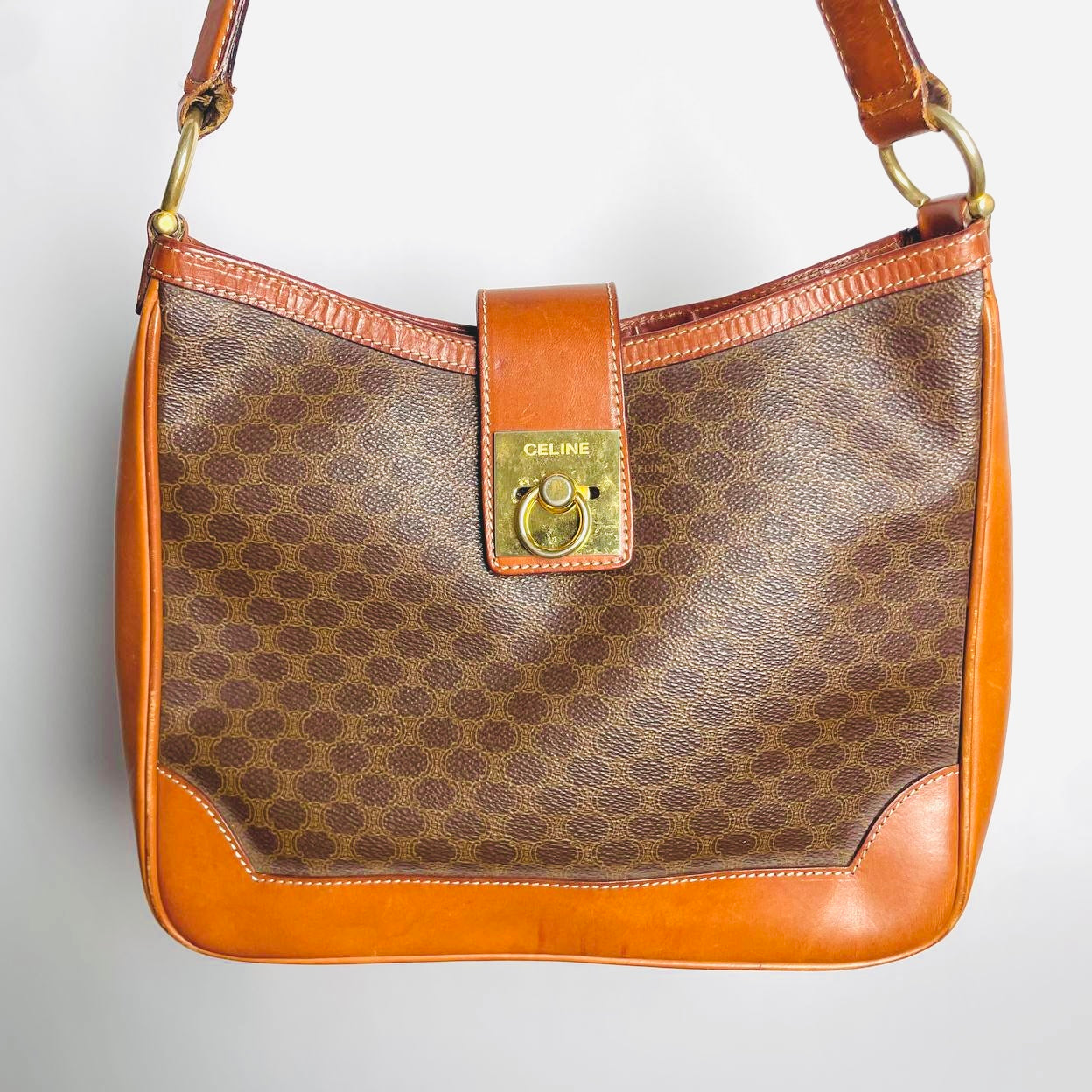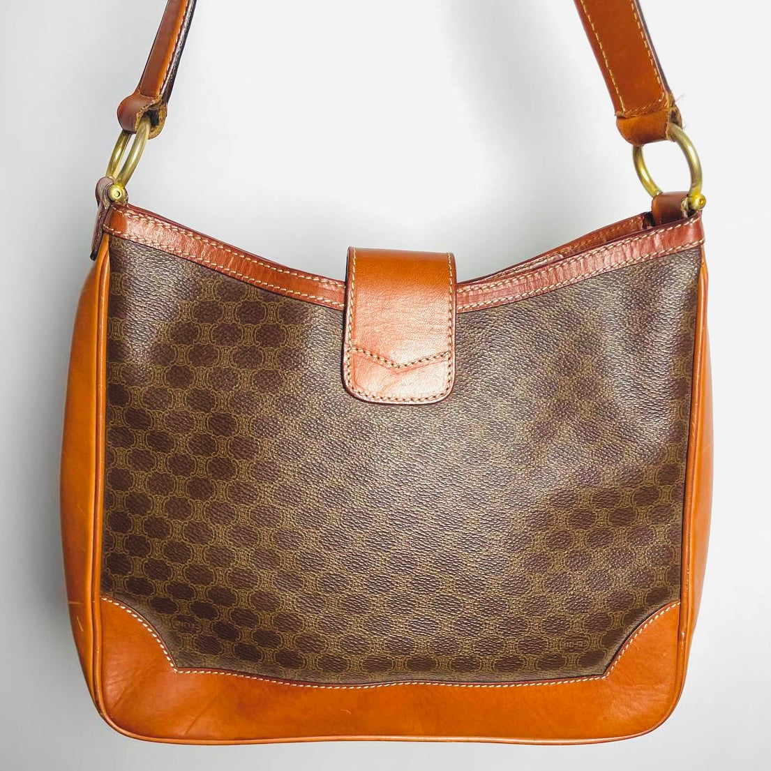 Celine Triomphe Macadam Monogram Logo GHW Vintage Hobo Flap Shoulder Bag