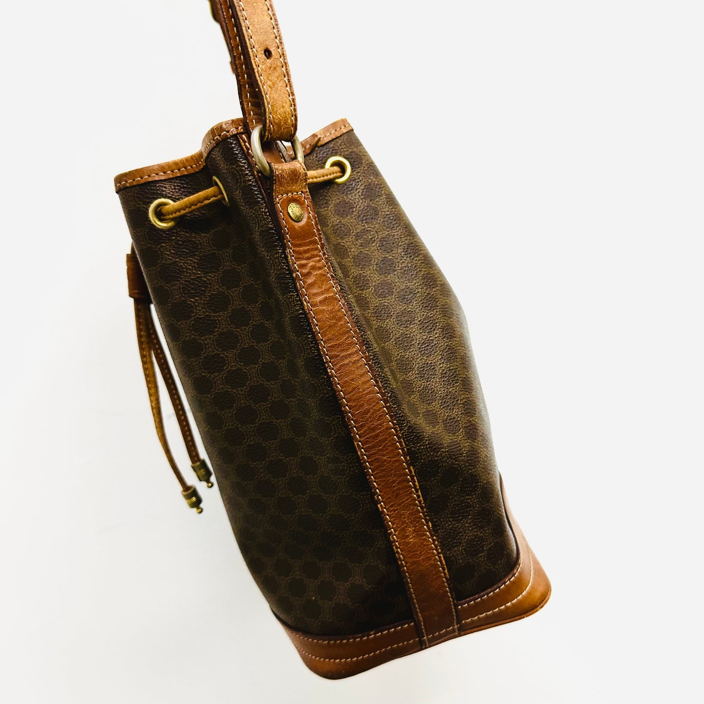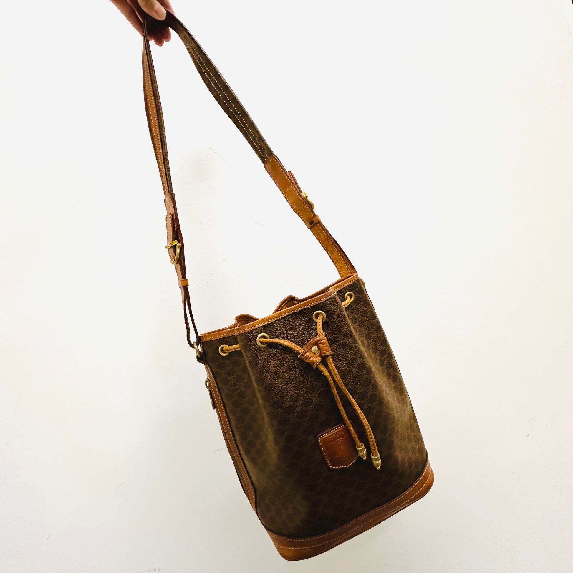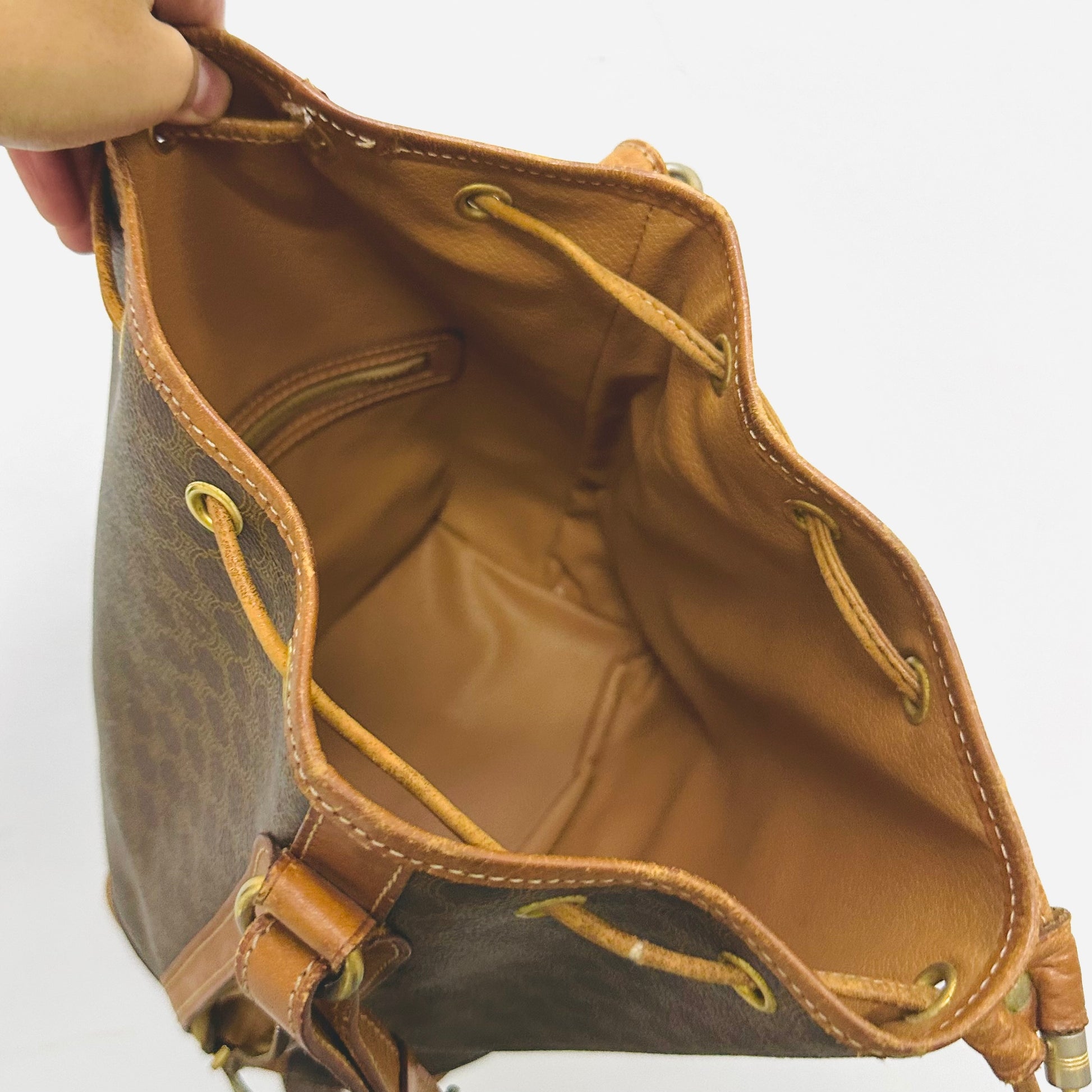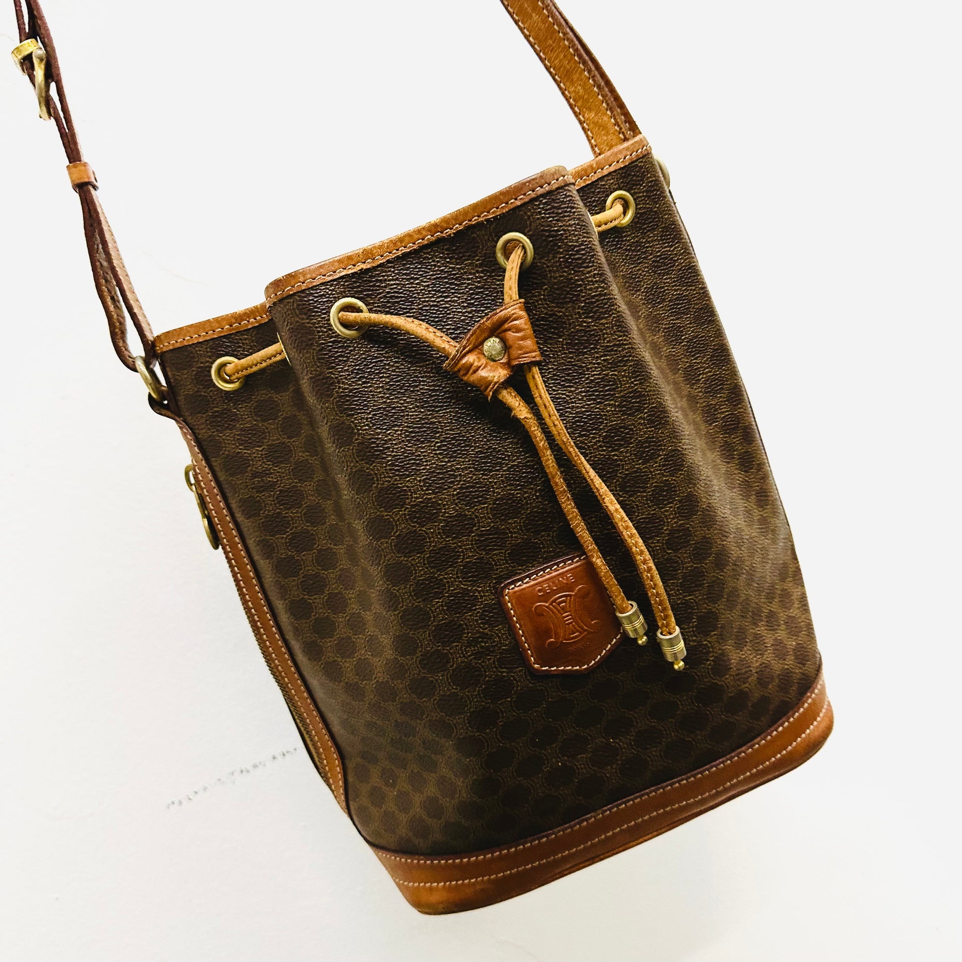 Celine Triomphe Macadam Monogram Logo Vintage Drawstring Bucket Shoulder Sling Bag