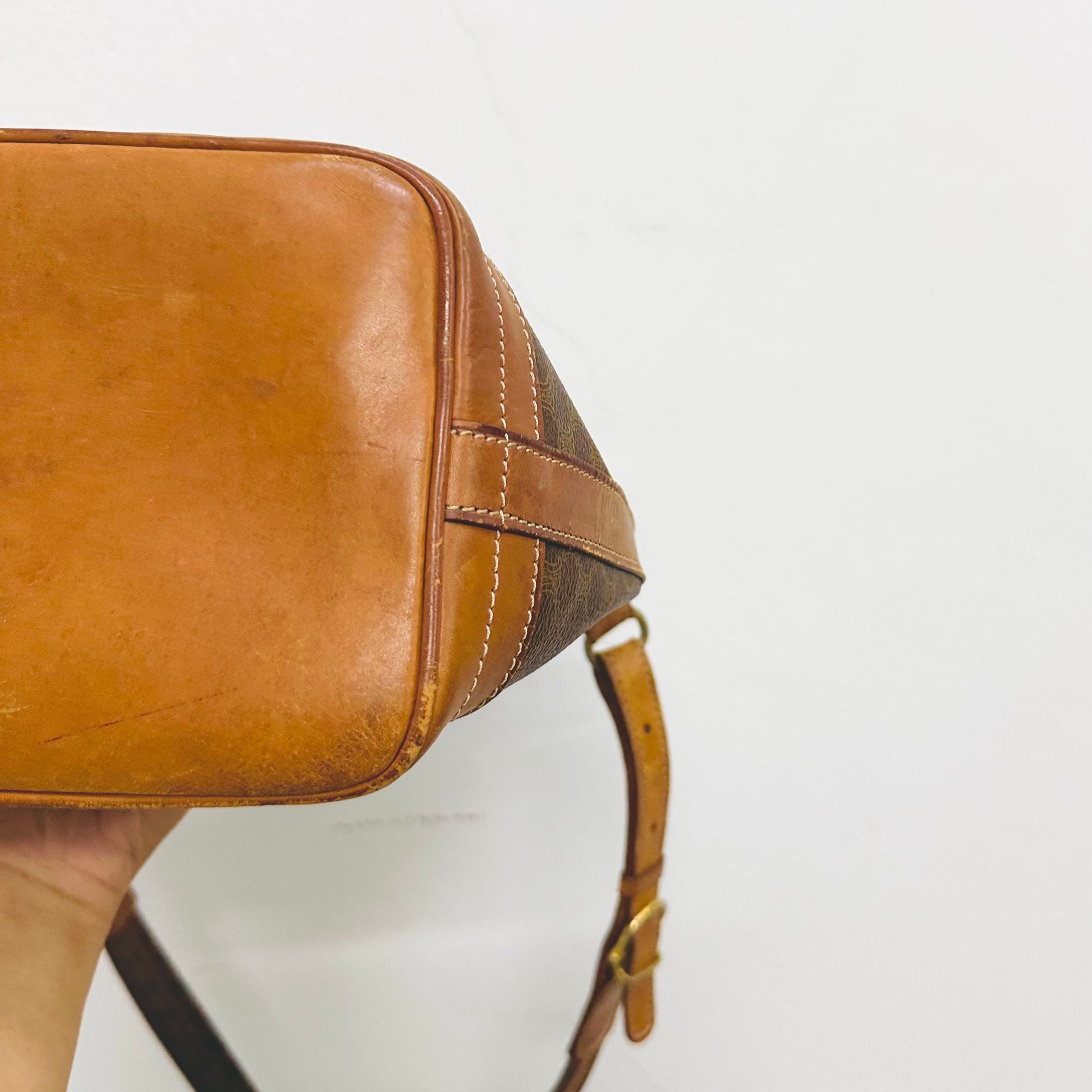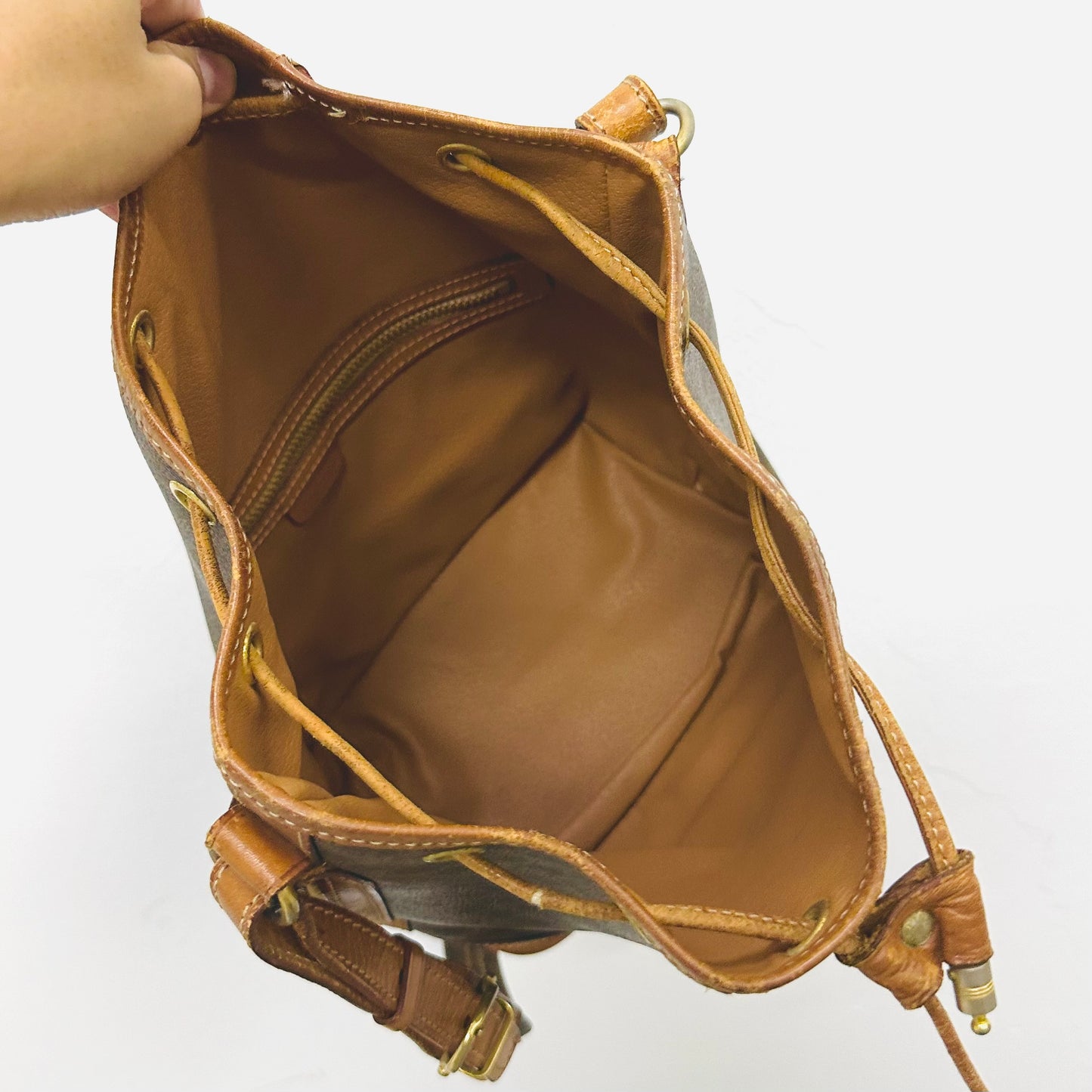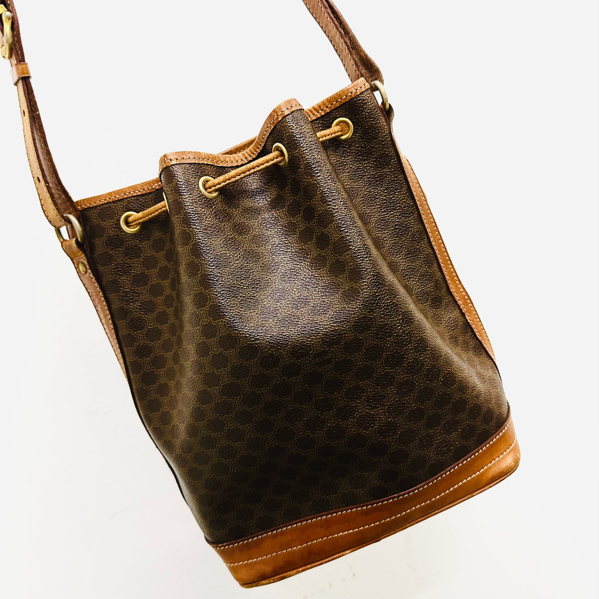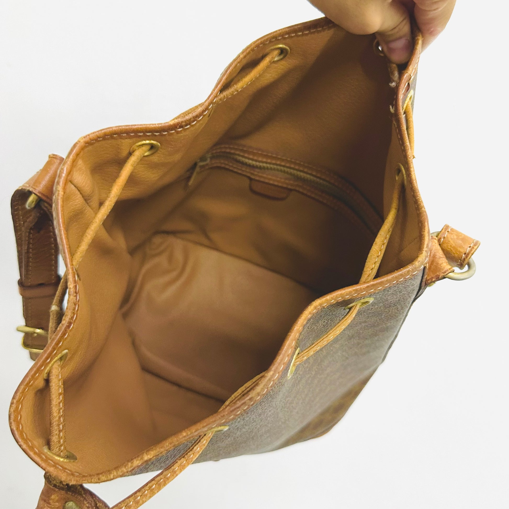 Celine Triomphe Macadam Monogram Logo Vintage Drawstring Bucket Shoulder Sling Bag
