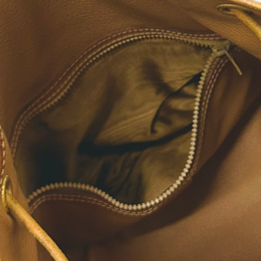 Preloved 9.4/10. This has an adjustable strap, drawstring closure, side zip pocket, central compartment and interior zip pocket. This measures 27x21x14cm.