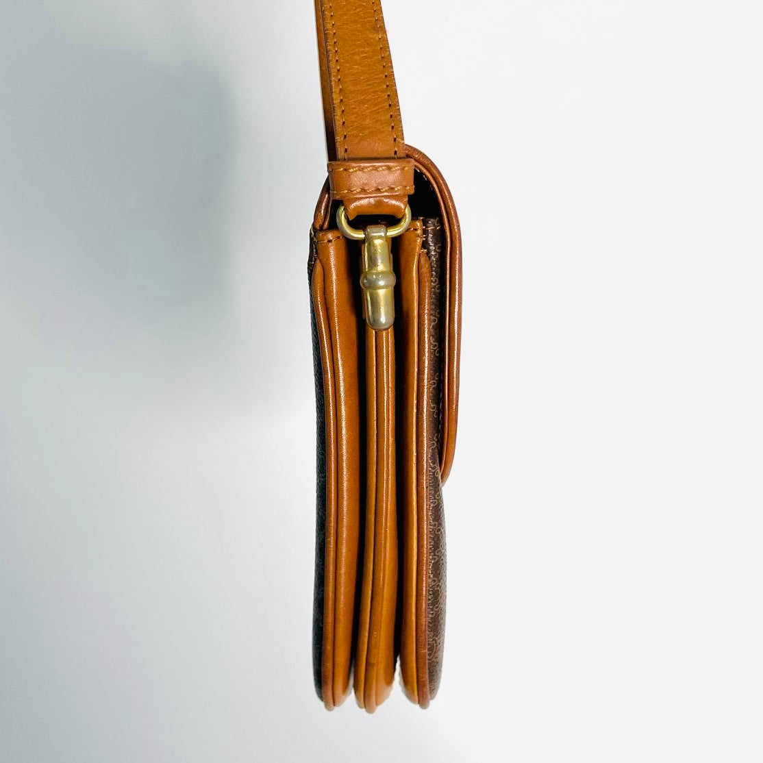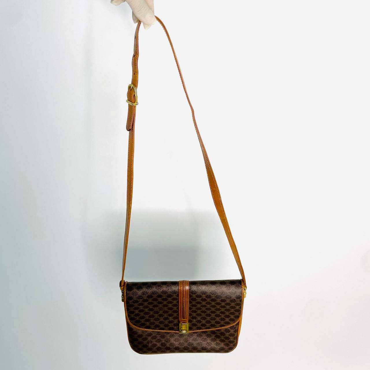 Preloved 9.4/10. This has an adjustable strap, flap clasp closure, central compartments, slip pocket and zip pocket. This measures 24x17x7cm.