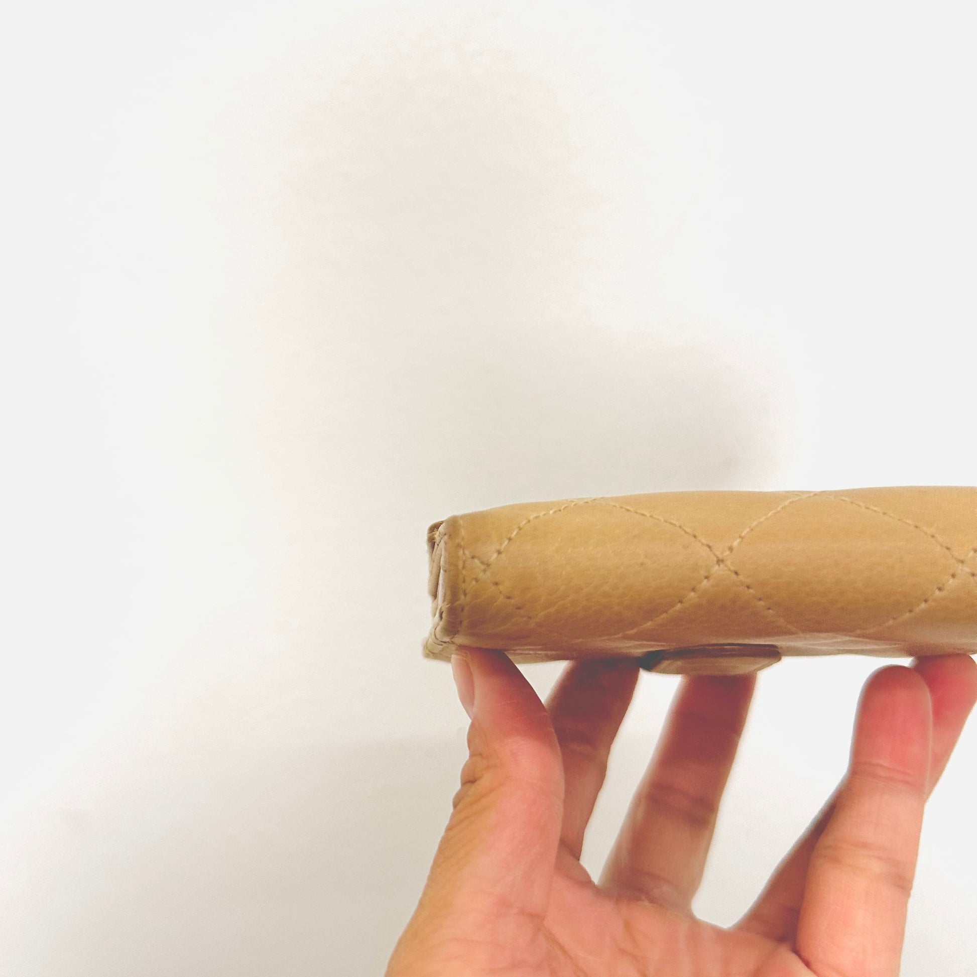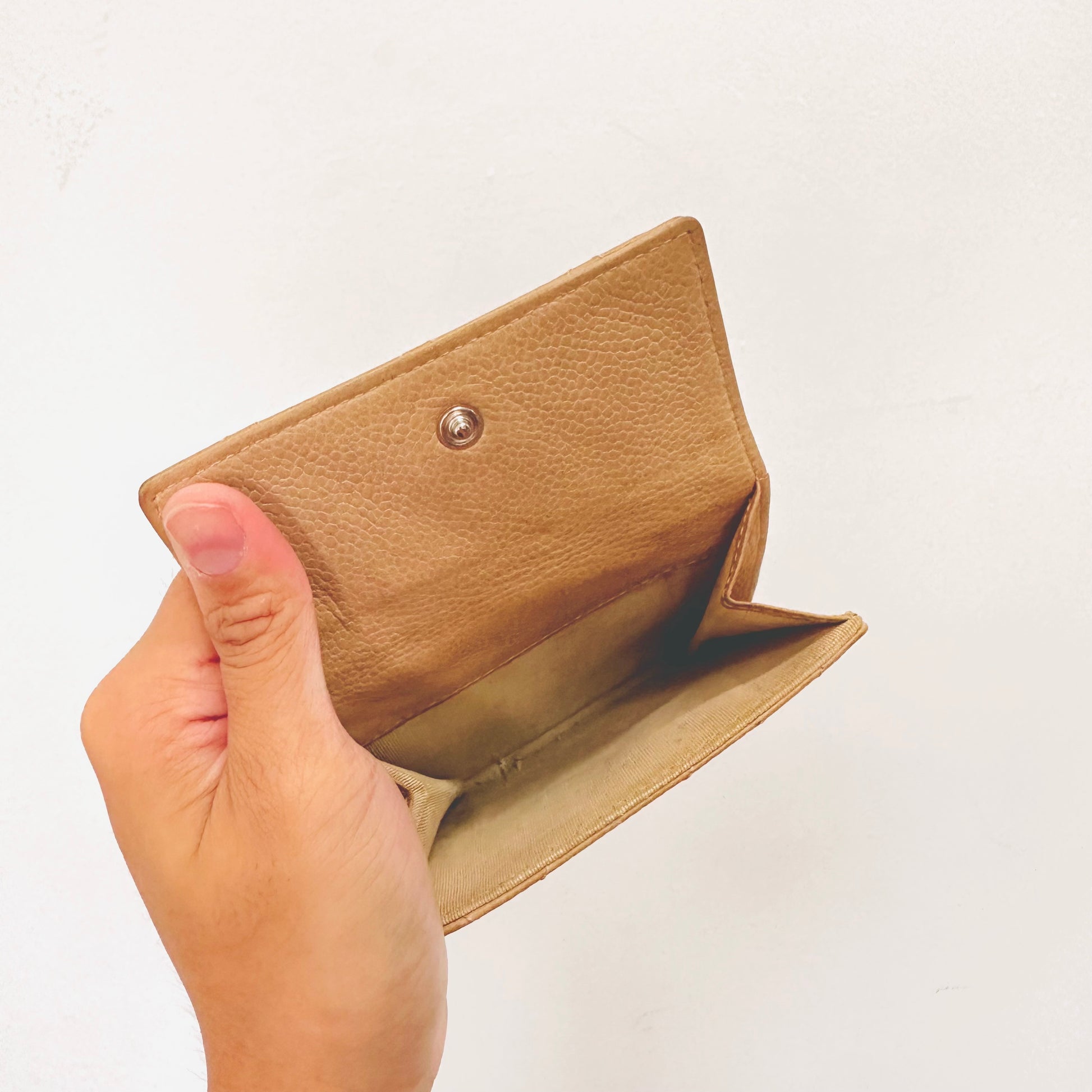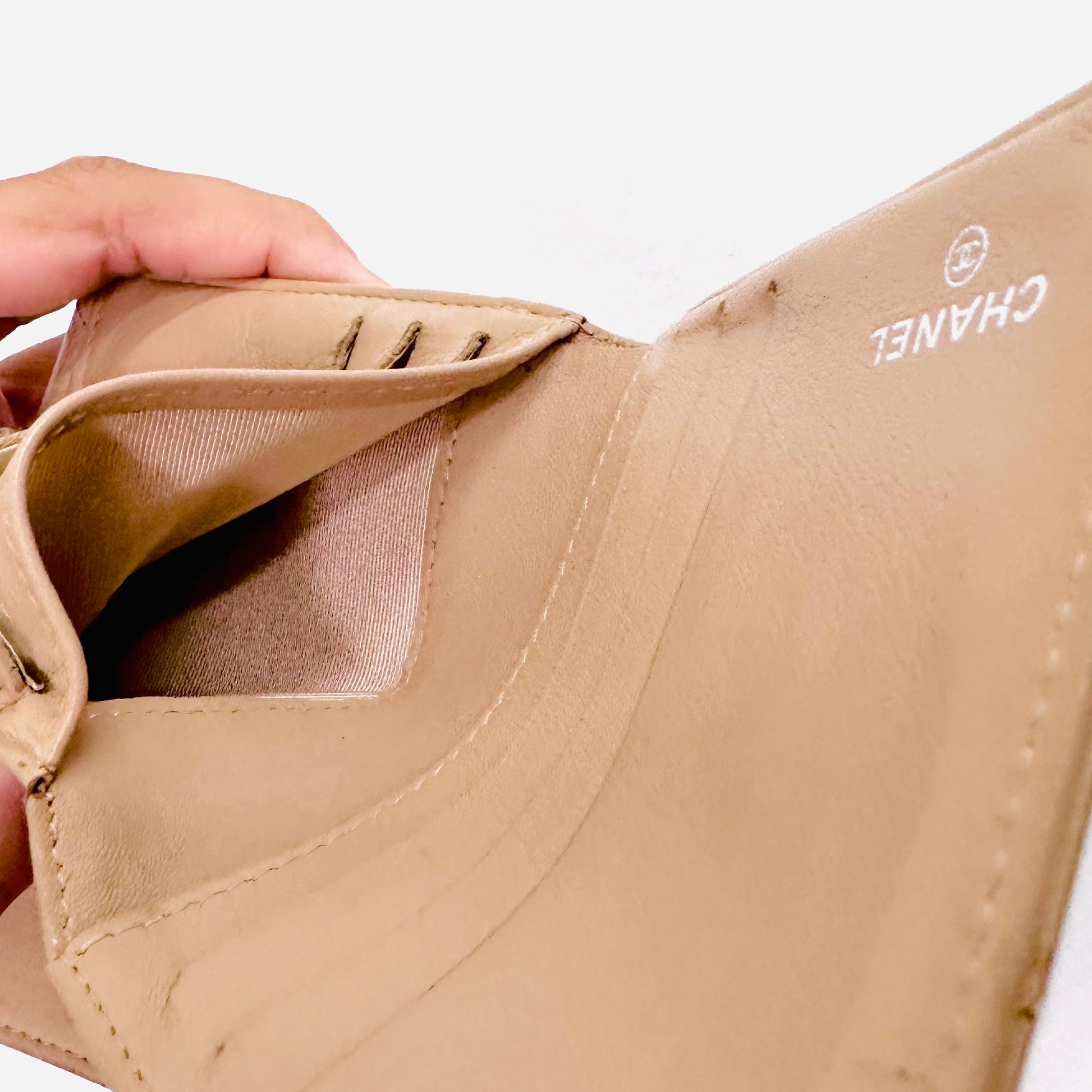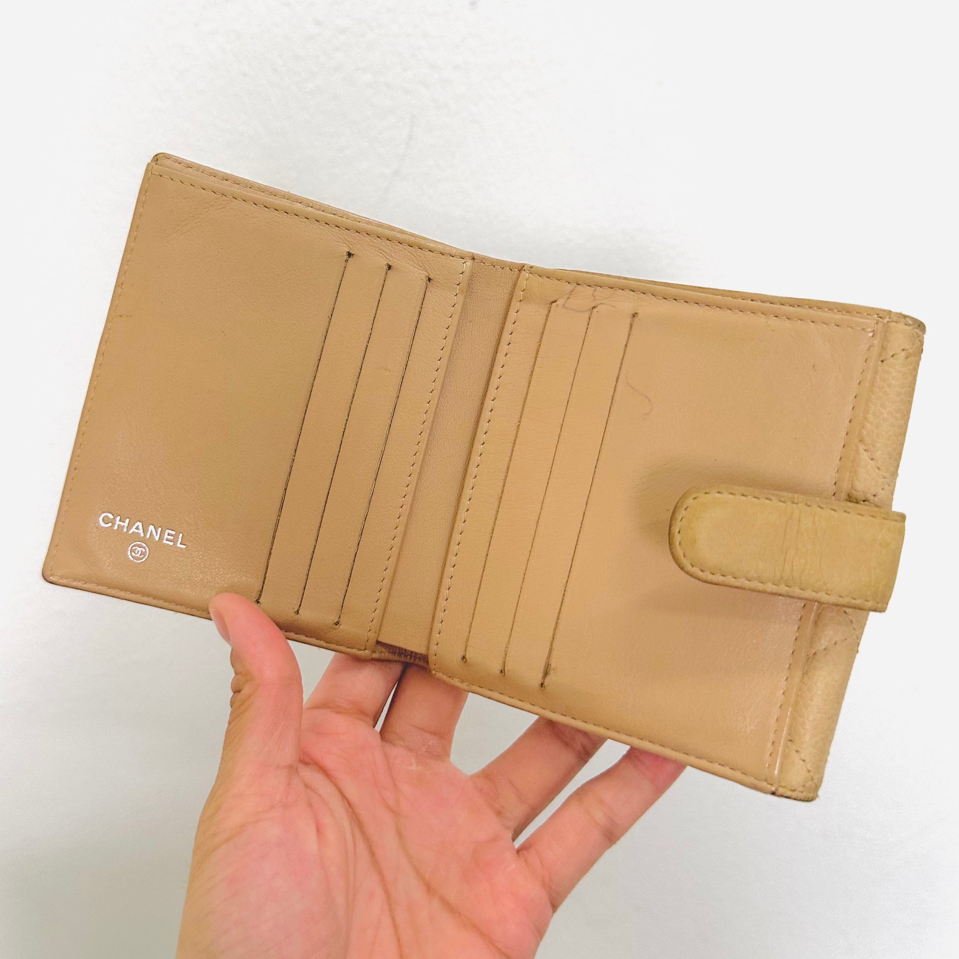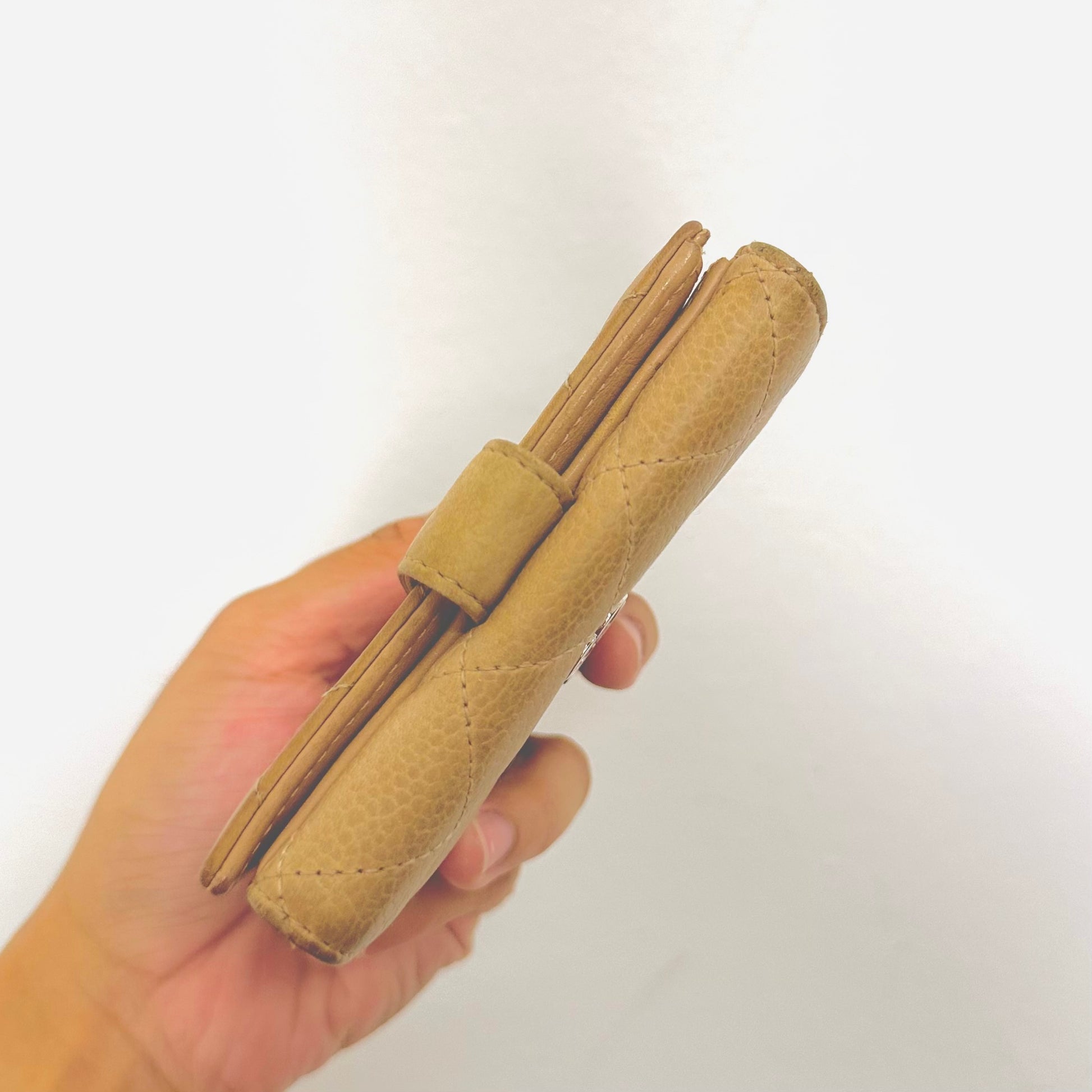Chanel Beige Caviar Leather CC Logo Flap Bifold Compact Wallet 14s