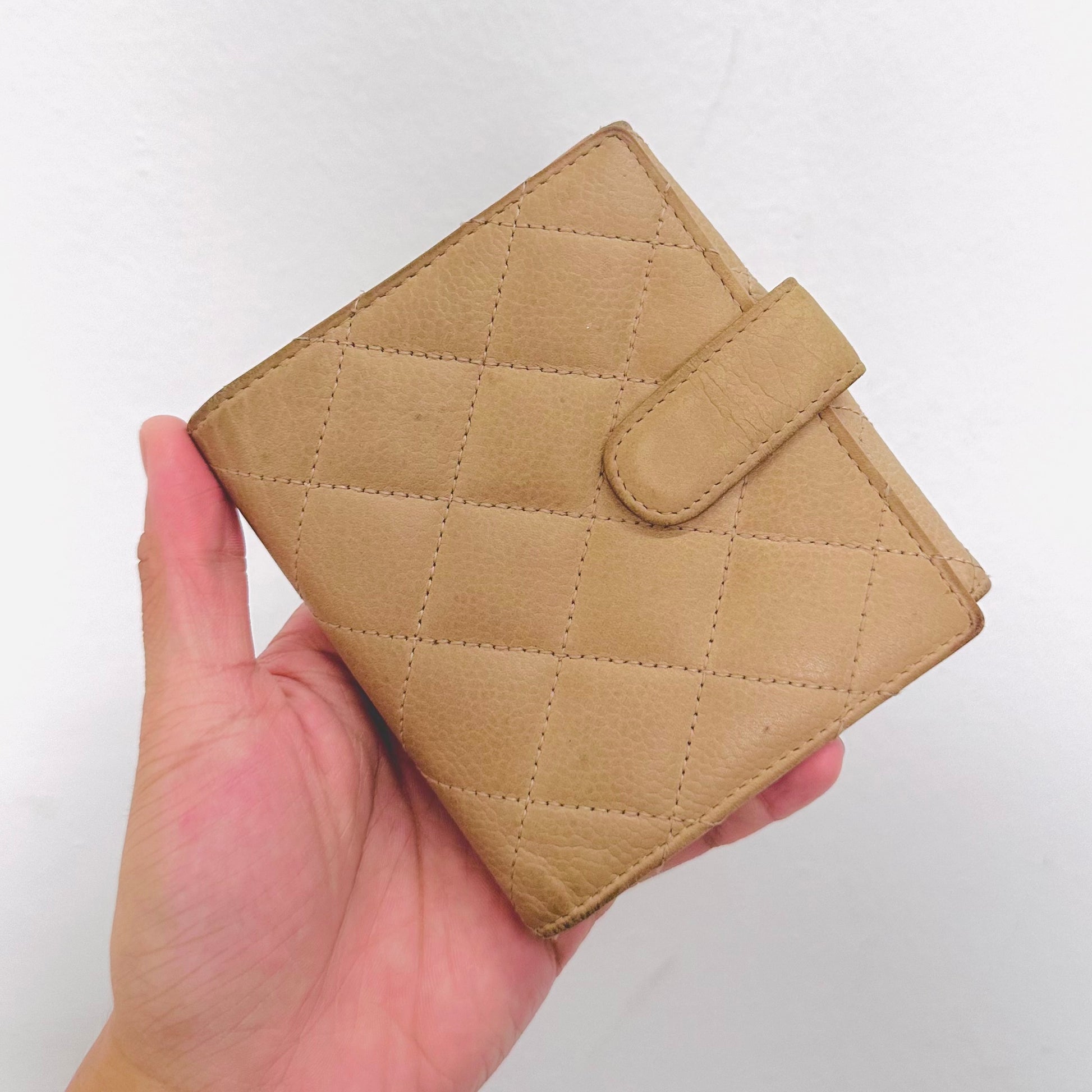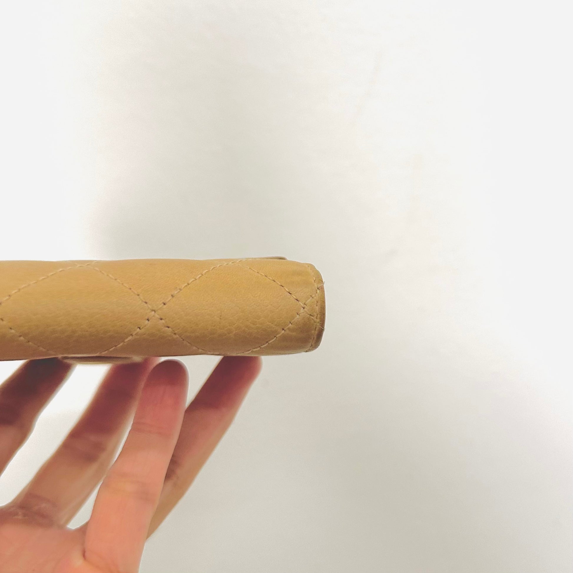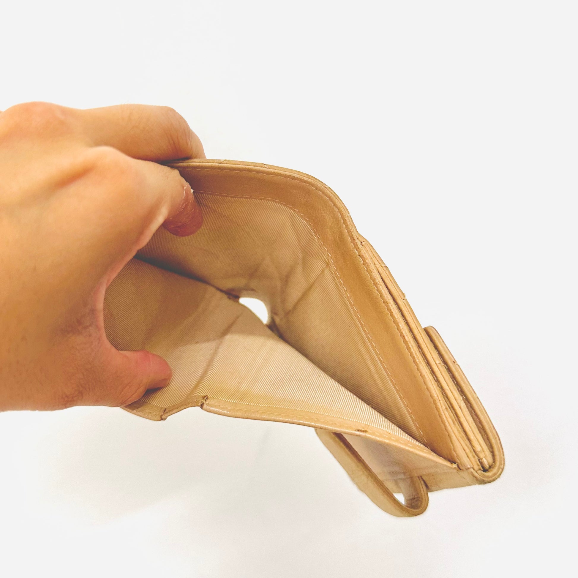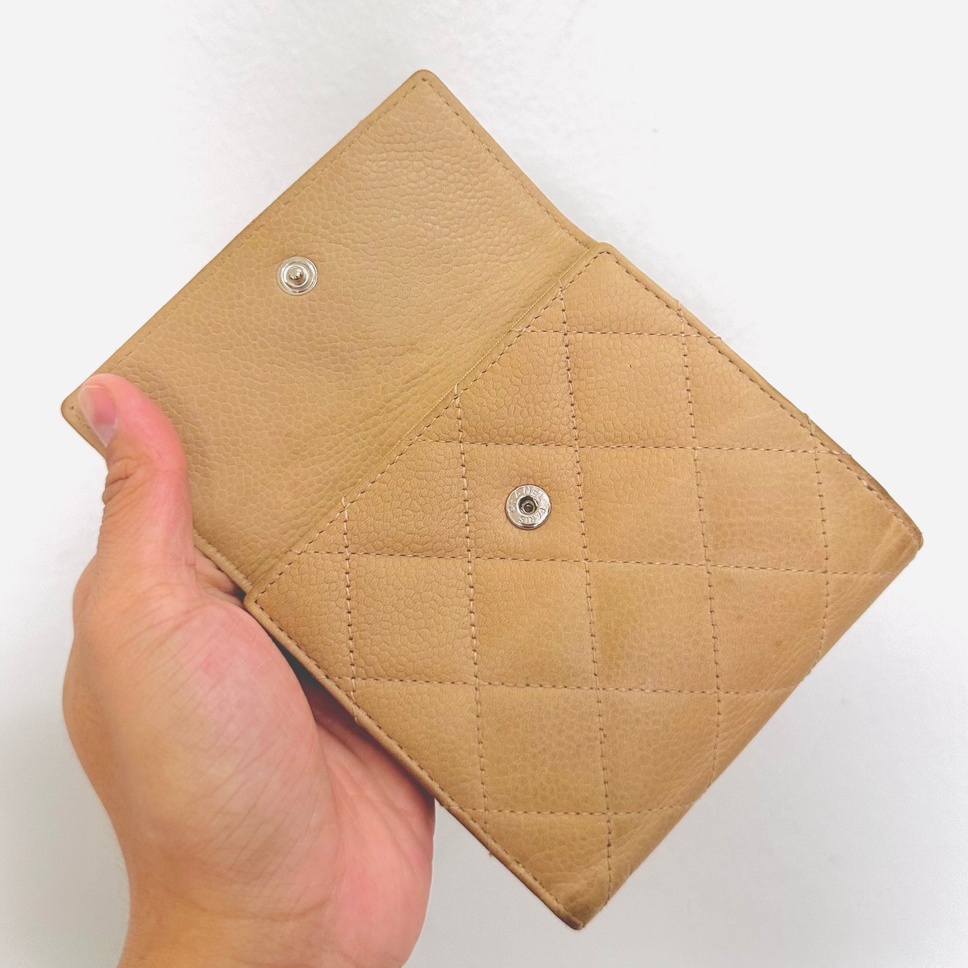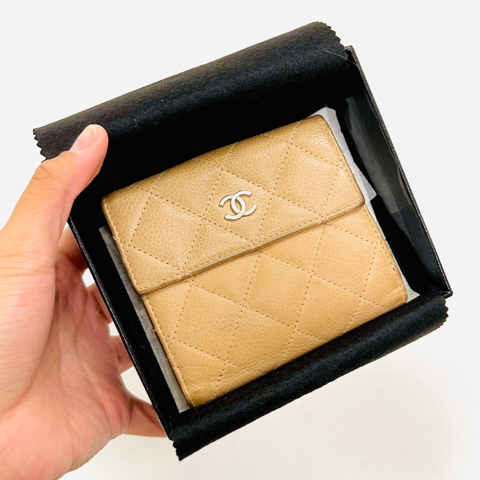 Chanel Beige Caviar Leather CC Logo Flap Bifold Compact Wallet 14s