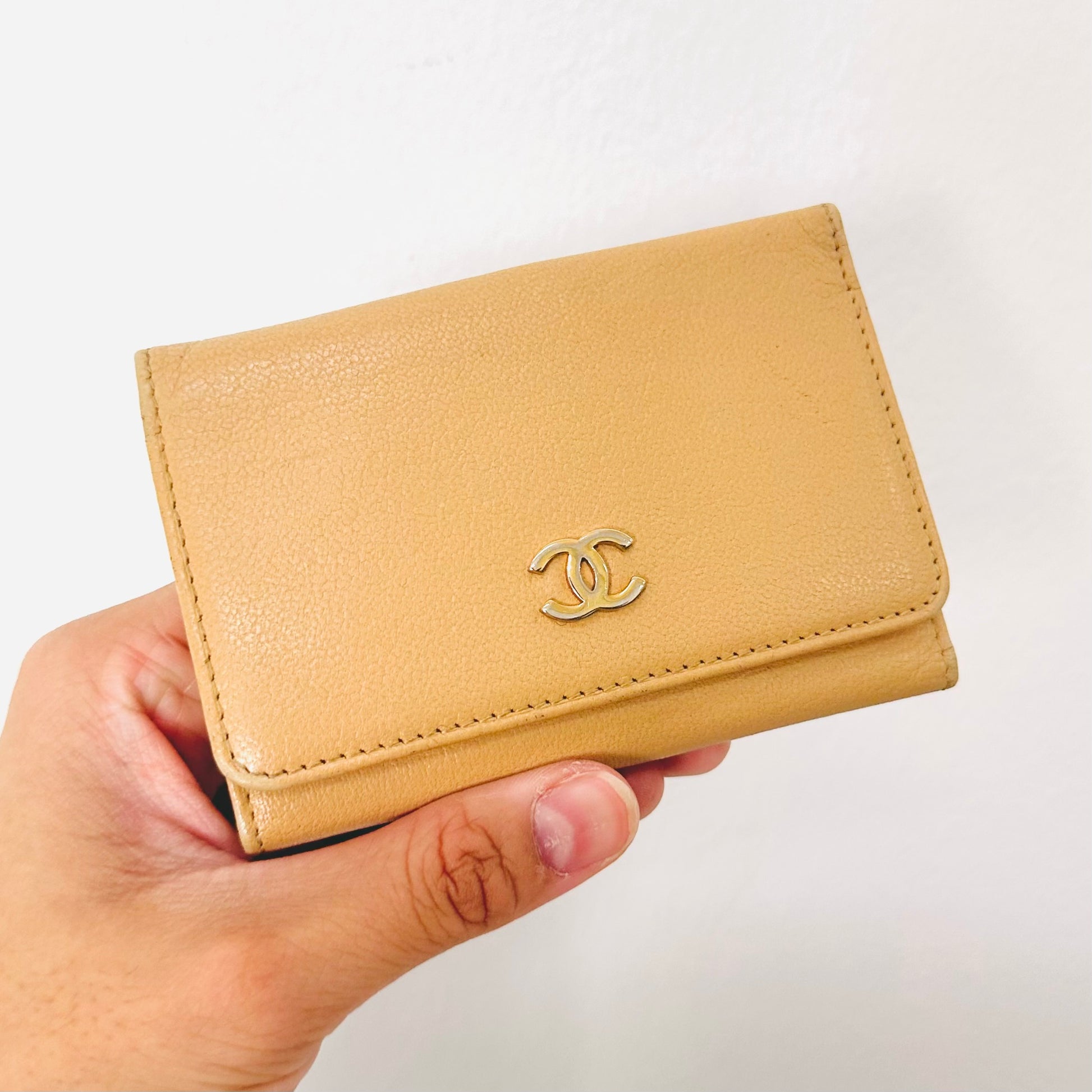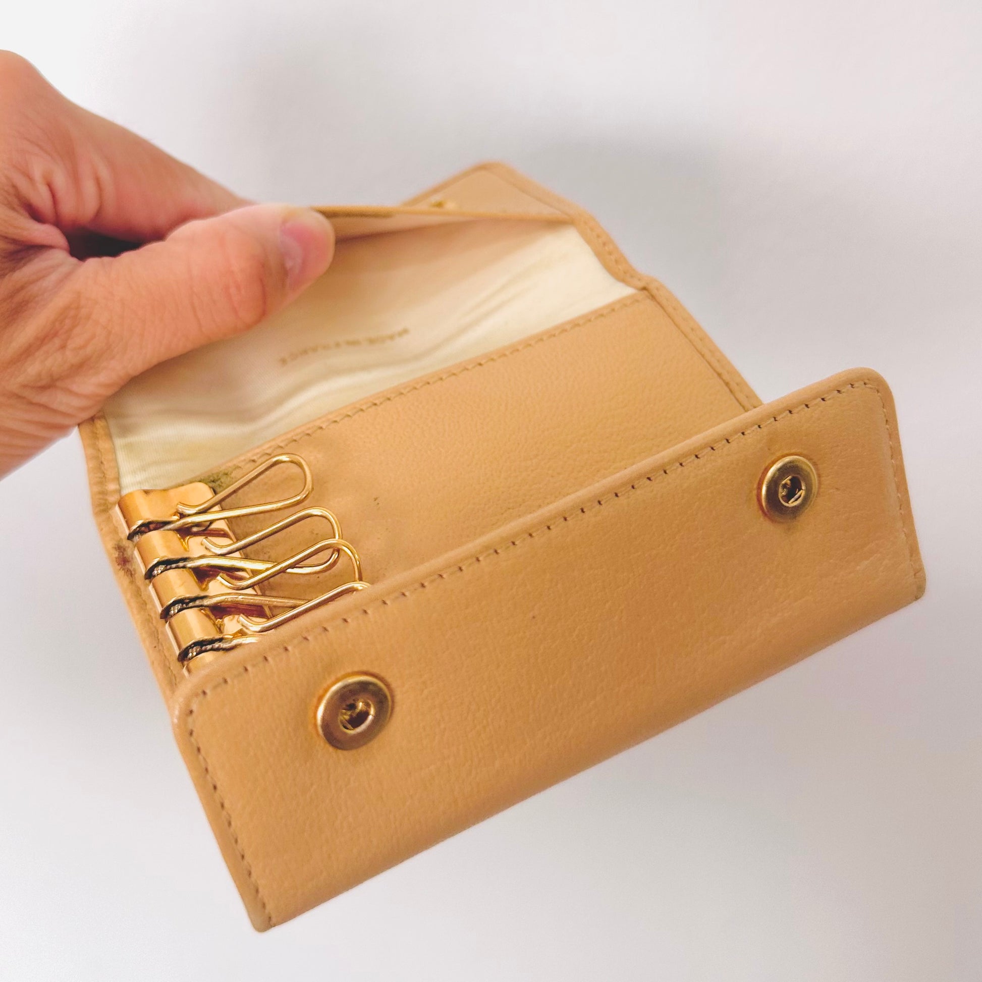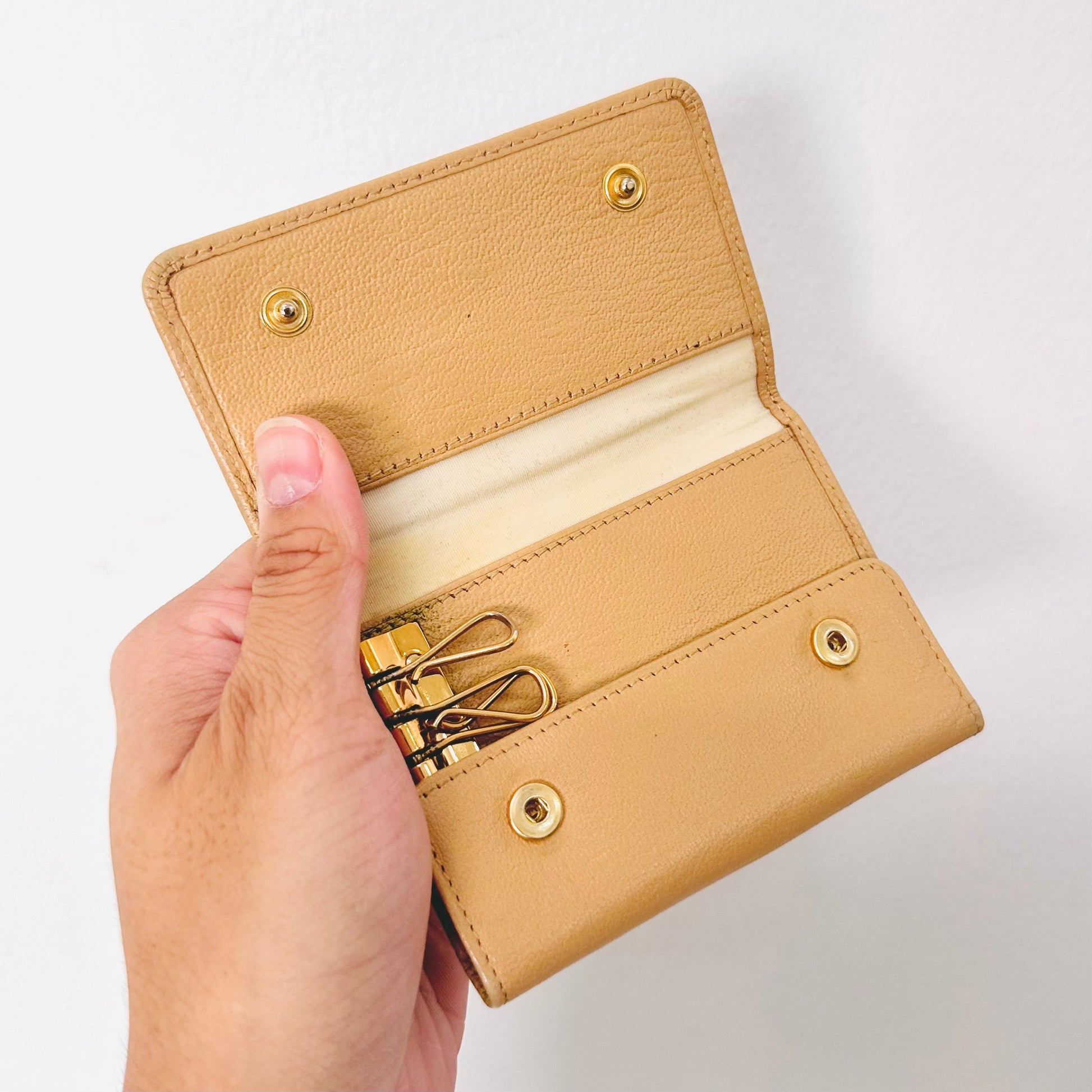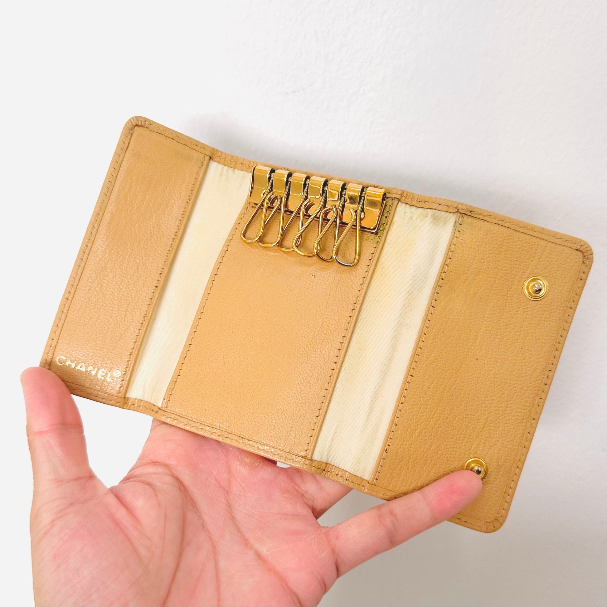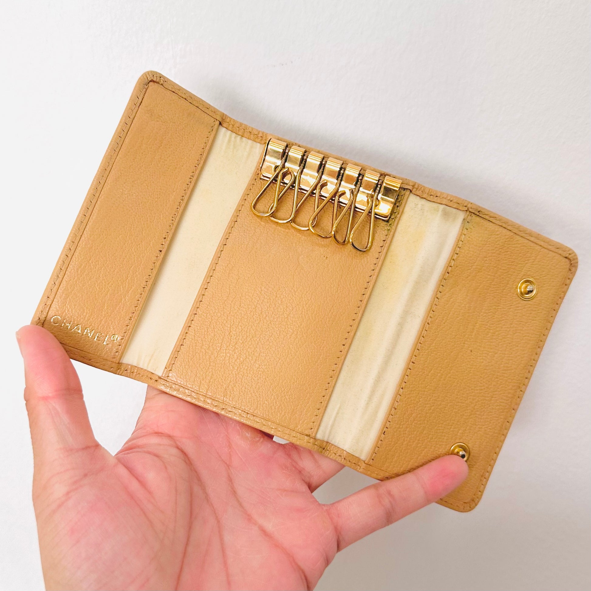 Chanel Beige GHW Chevre Giant CC Monogram Logo 6 Key Cles Flap Pouch Case