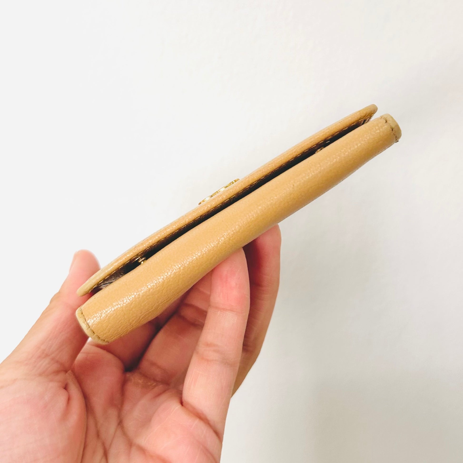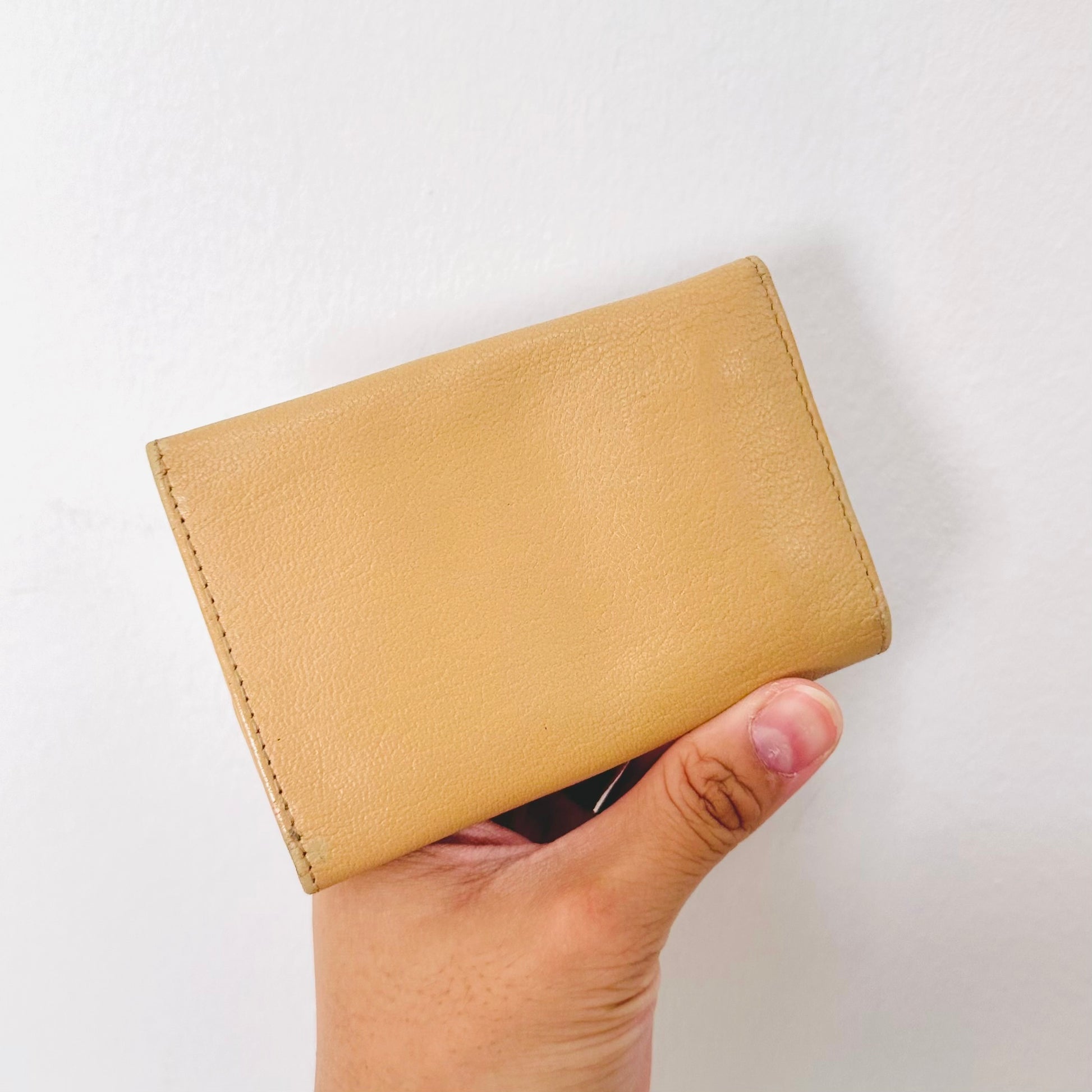 This has a flap button closure, key rings and slip pocket. This measures 10.5x7x1cm. This comes with front logo, interior stamping and gold japan boutique sticker.