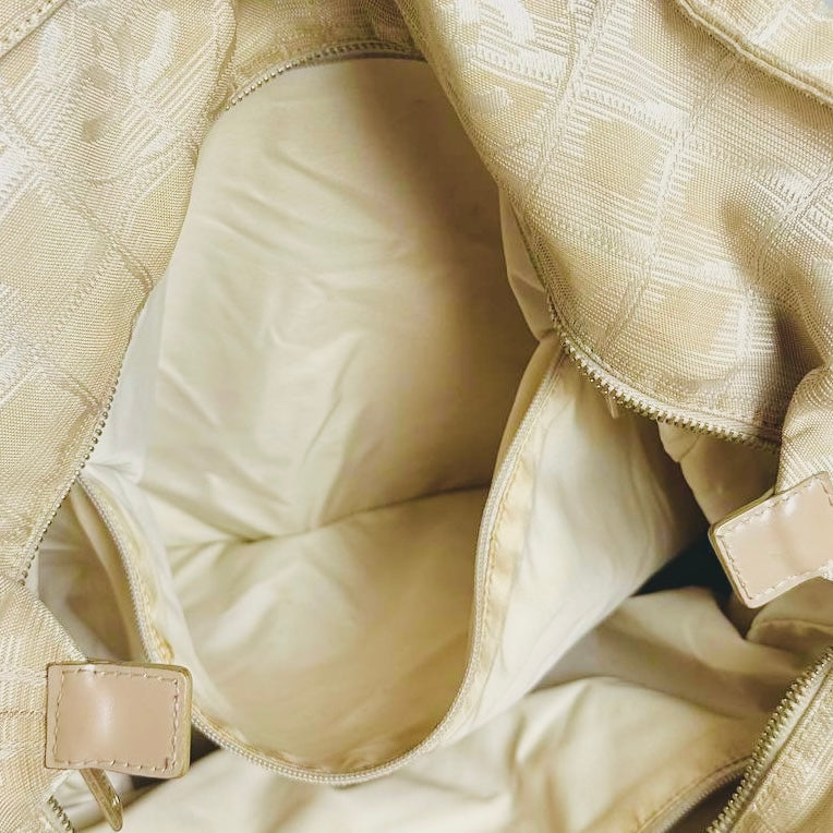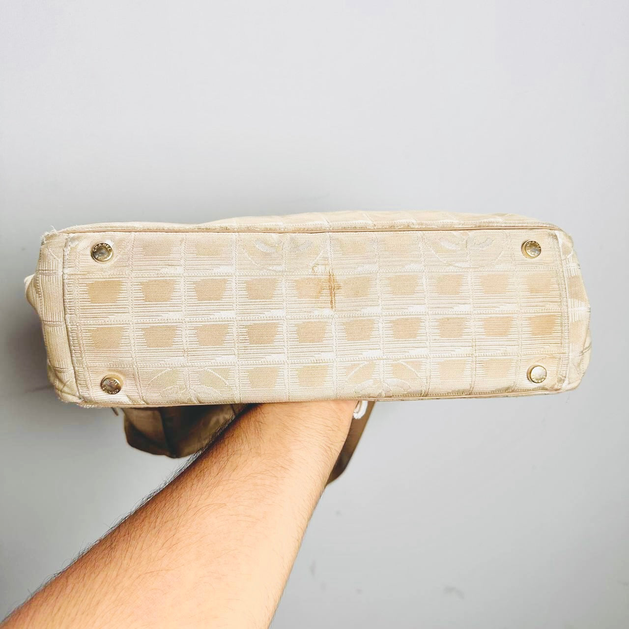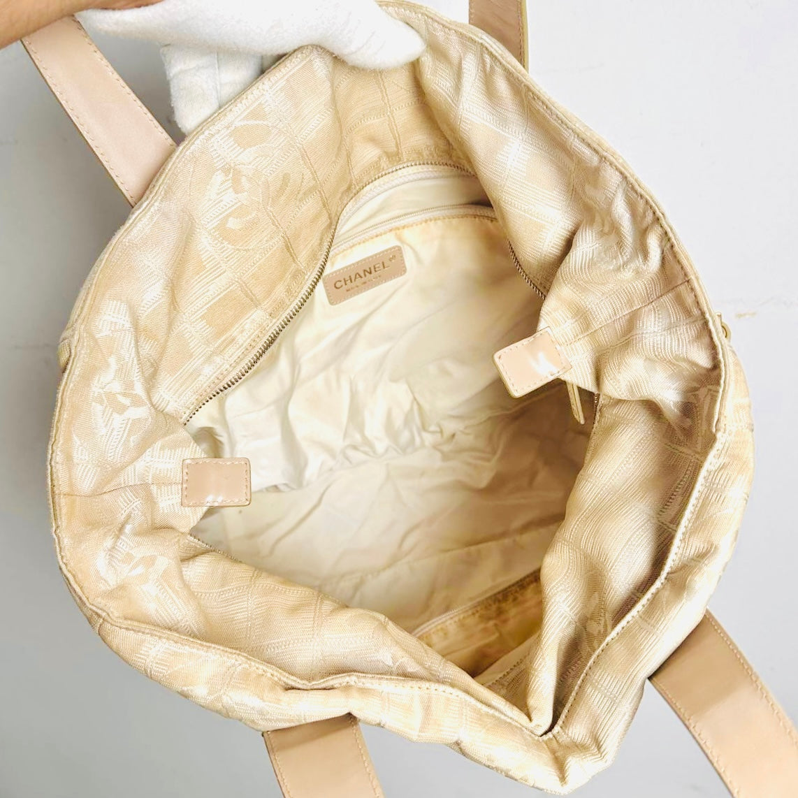 Chanel Beige GHW Travel Line Quilted Jacquard CC Monogram Logo Shopper Shoulder Tote Bag 10s