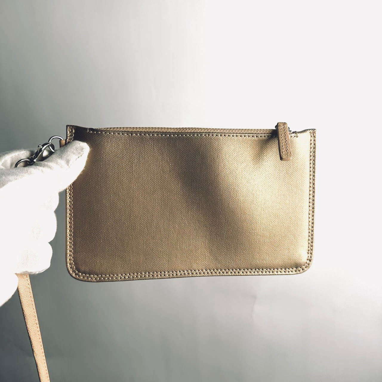 Preloved 9.4/10. This has a pouch attachment, base feet studs, front zip pocket, side pockets, zip closure, central compartment, slip pockets and zip pocket. This measures 40x29x16cm.