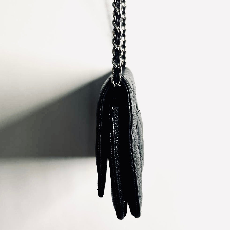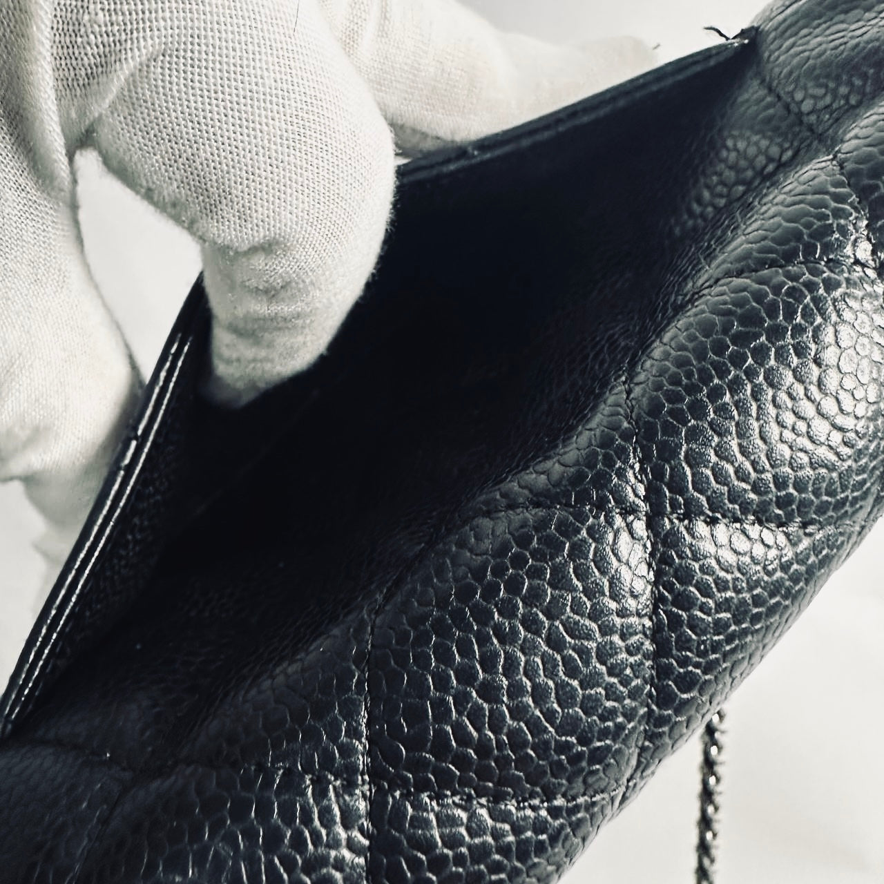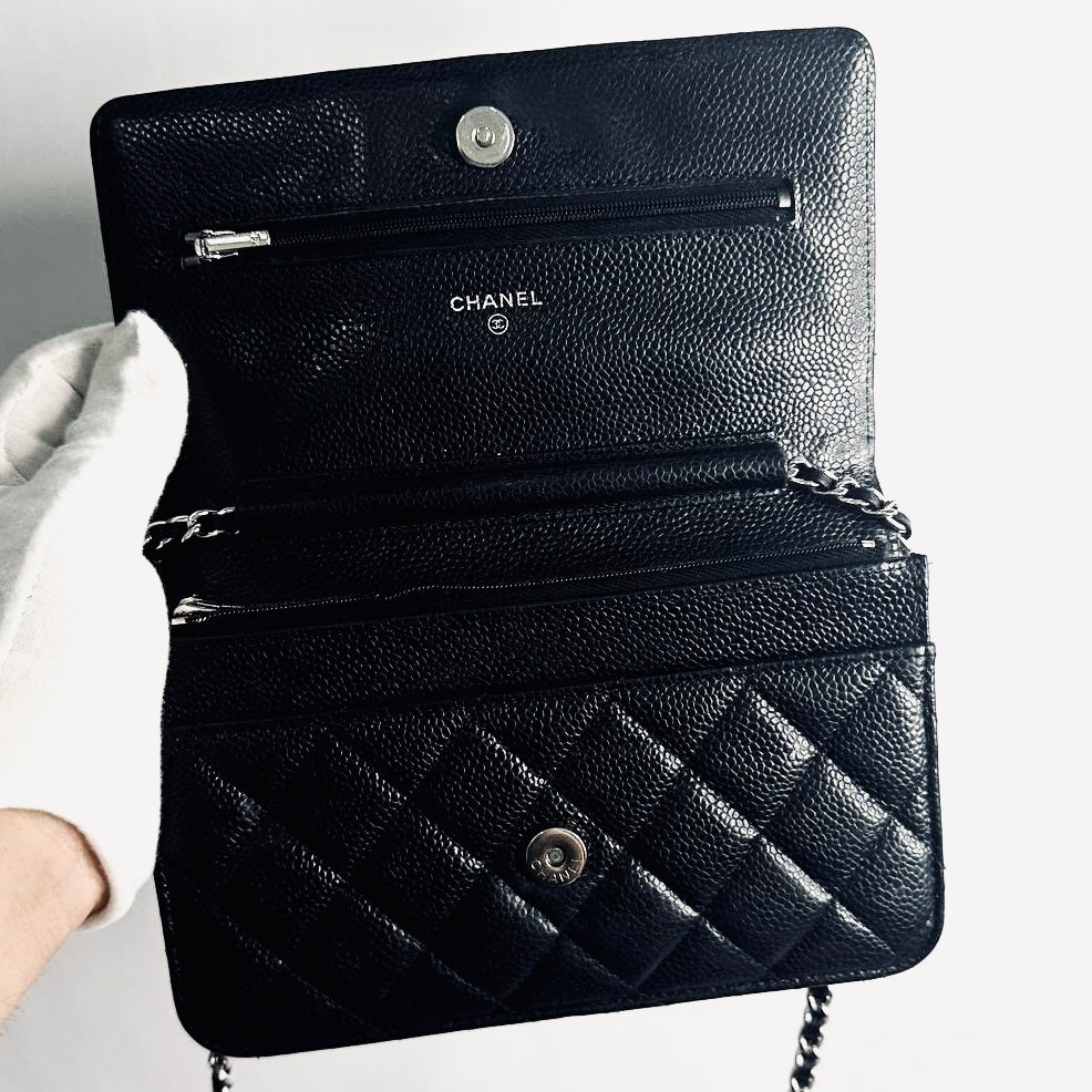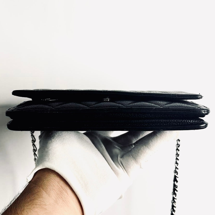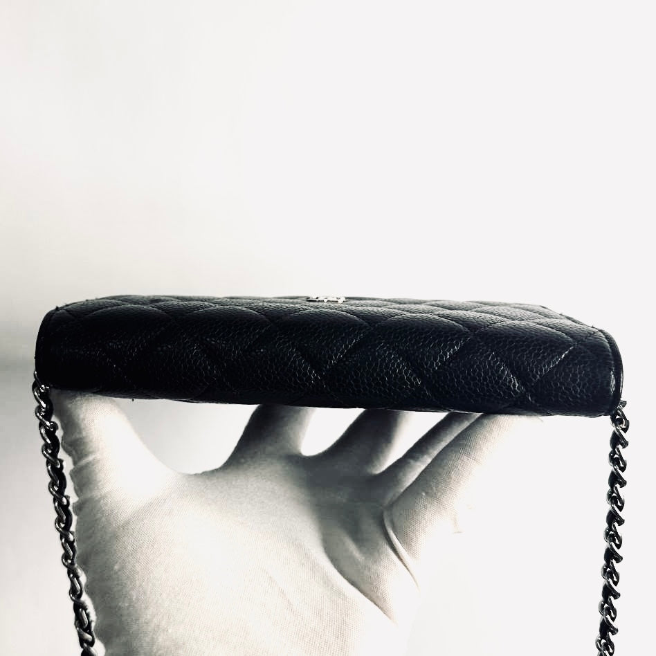Chanel Black CC Logo Classic WOC Quilted Caviar Leather Wallet On Chain Shoulder Sling Flap Bag 28s