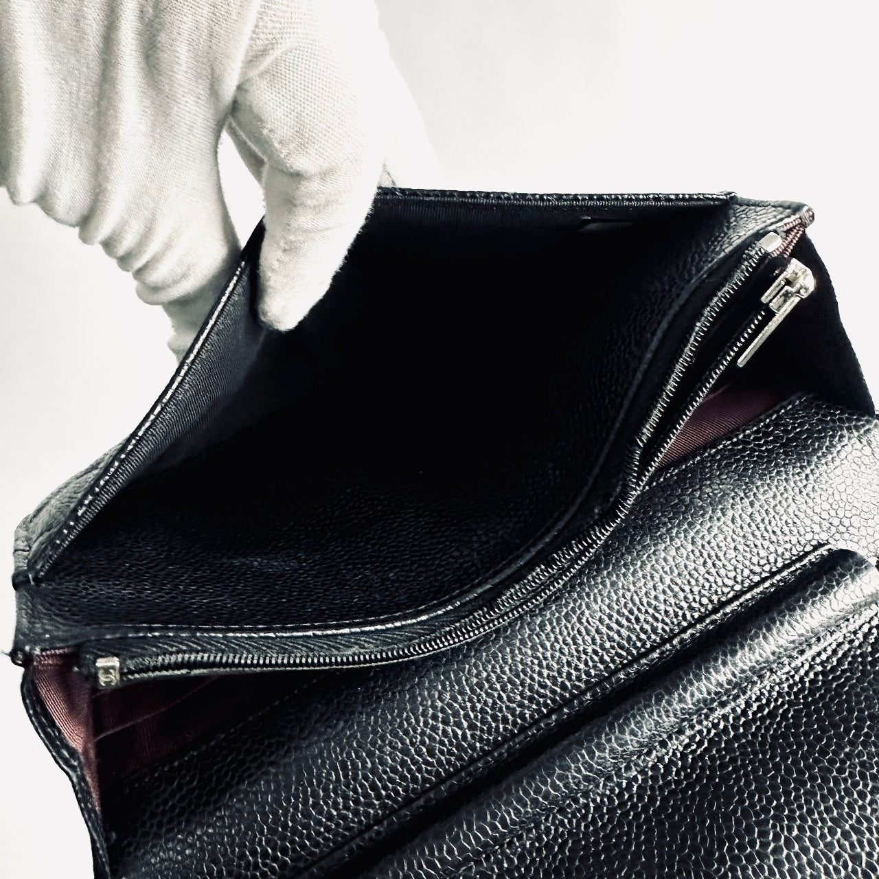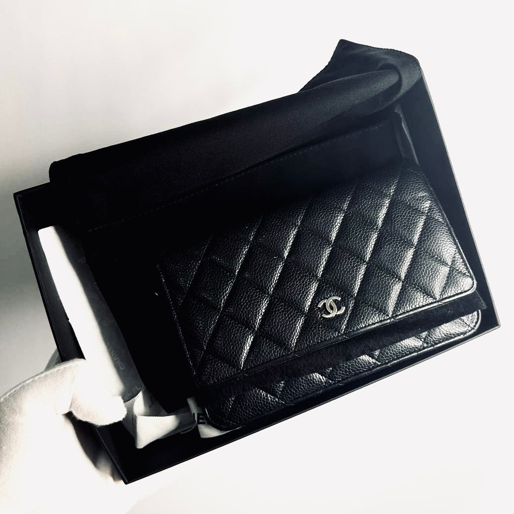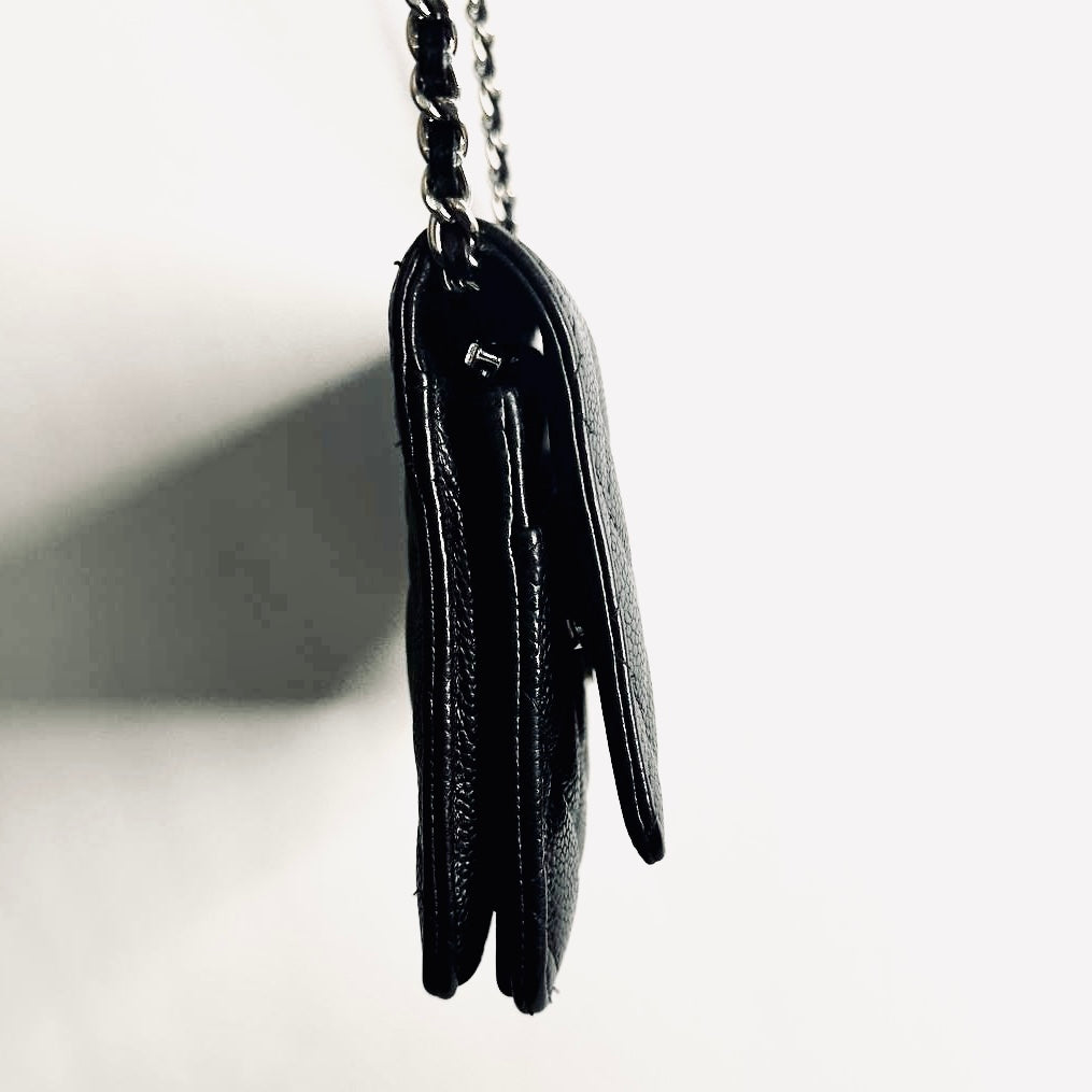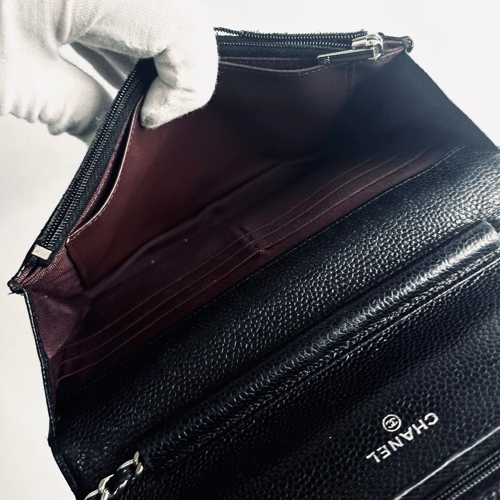 Chanel Black CC Logo Classic WOC Quilted Caviar Leather Wallet On Chain Shoulder Sling Flap Bag 28s