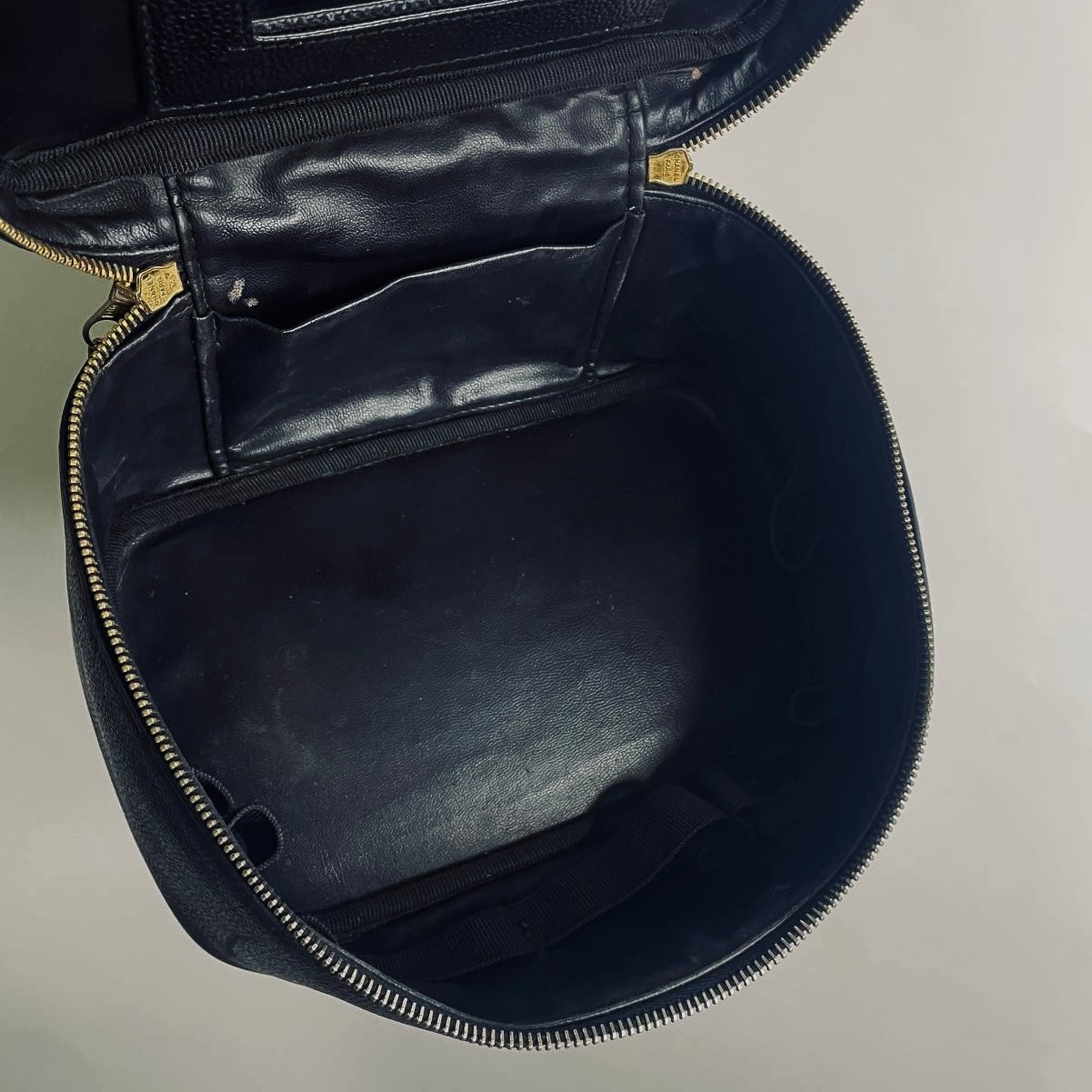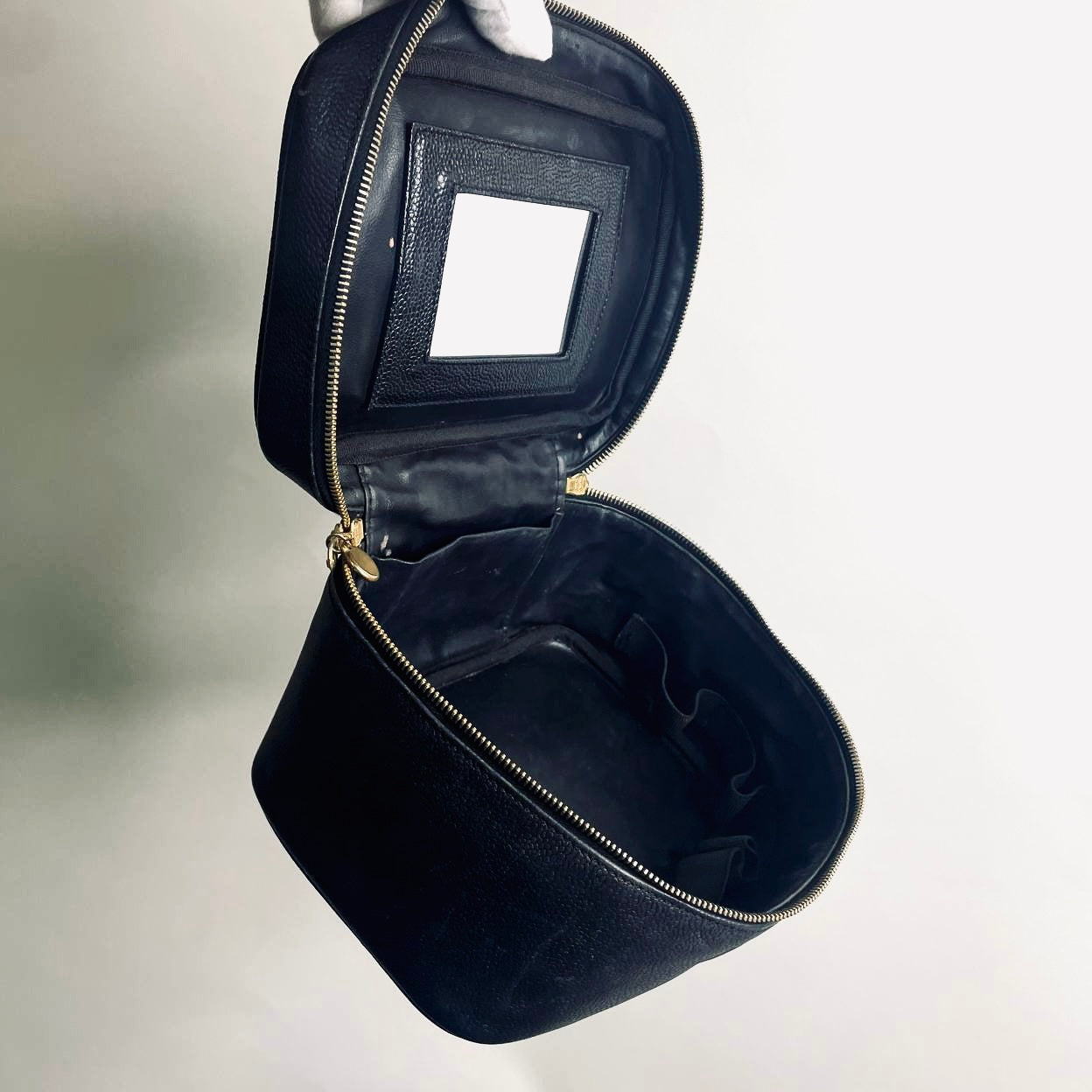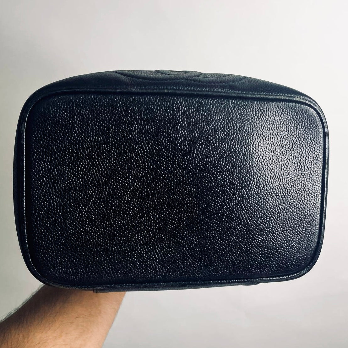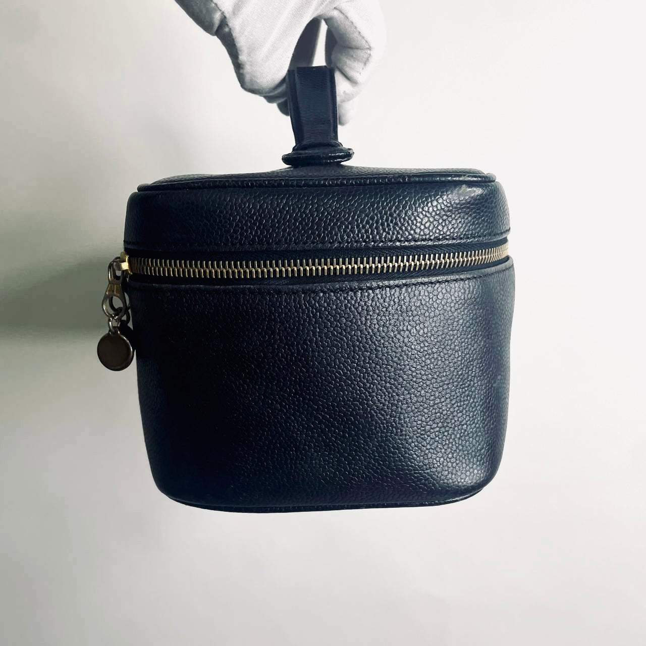 Chanel Black GHW Caviar Giant CC Logo Wide Horizontal Vanity Case Vintage Top Handle Bag 4s