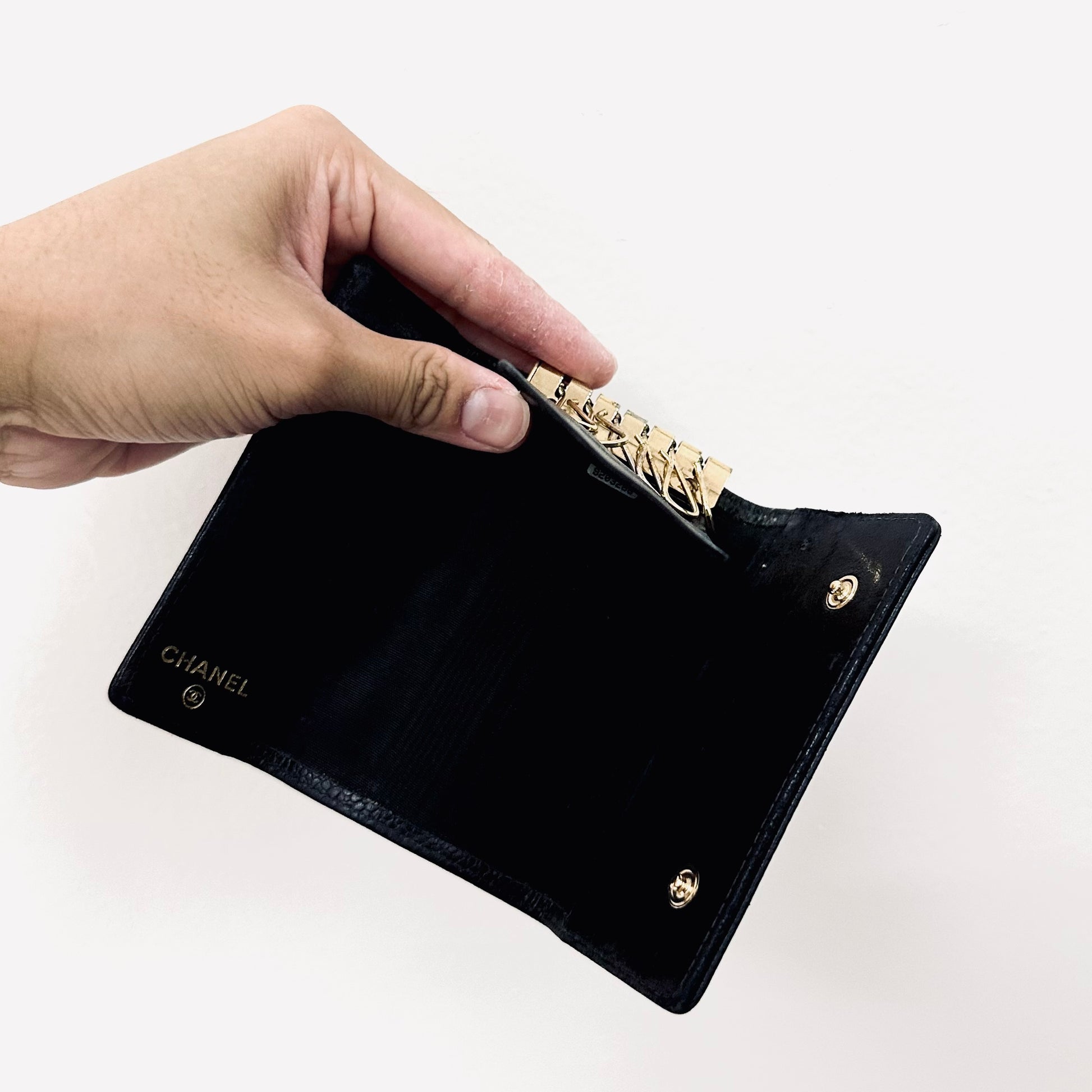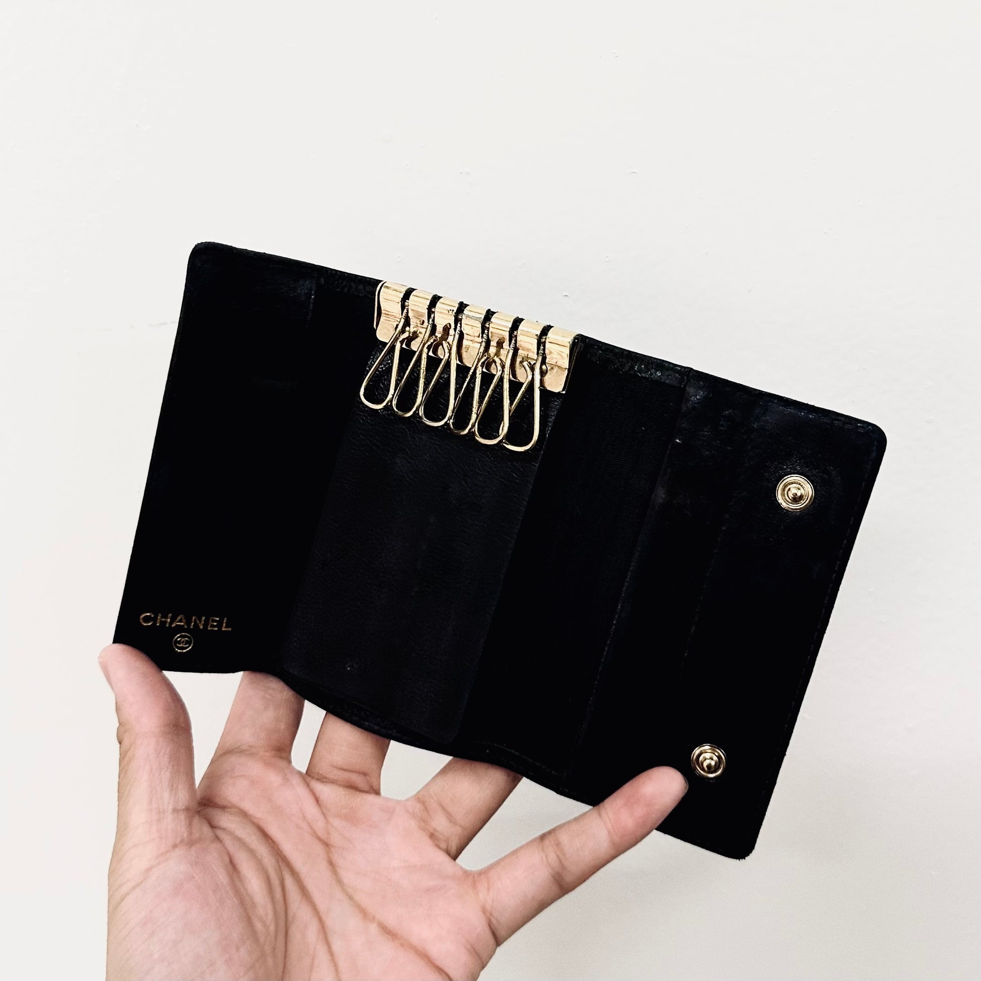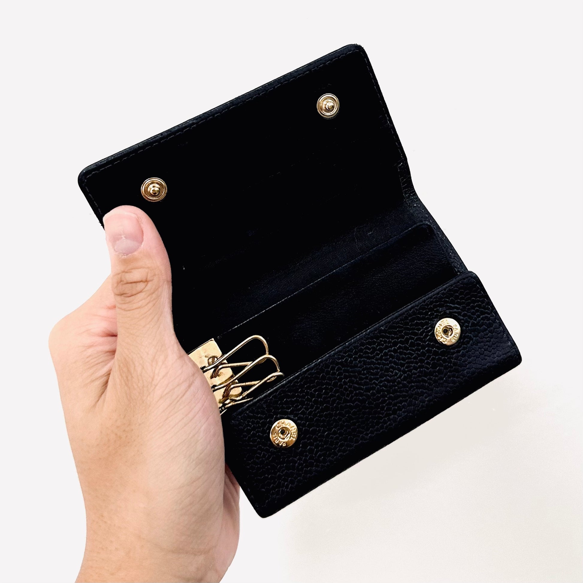 Chanel Black GHW Caviar Giant CC Monogram Logo 6 Key Cles Flap Pouch Case 9s