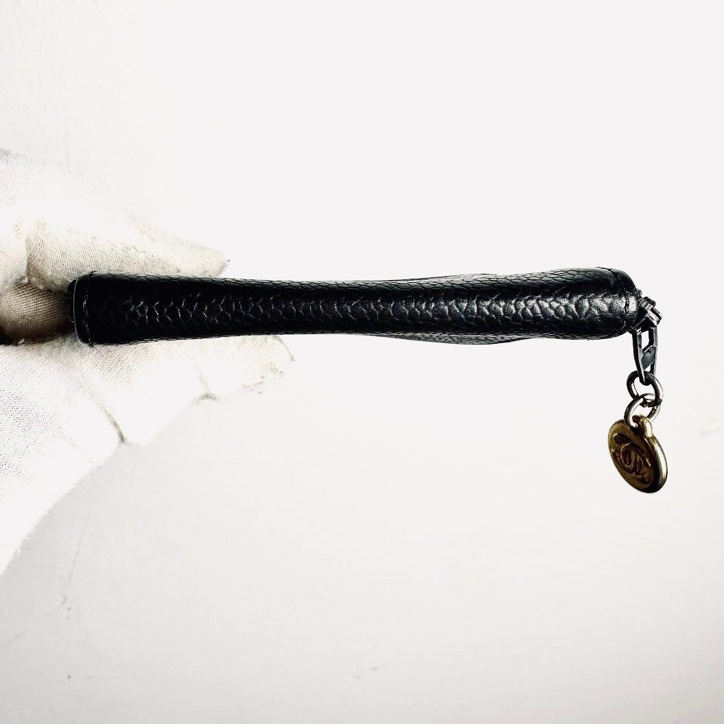 Chanel Black GHW CC Giant Monogram Logo Caviar Vintage Compact Zippy Zip Around Coin Purse Pouch Wallet 4s