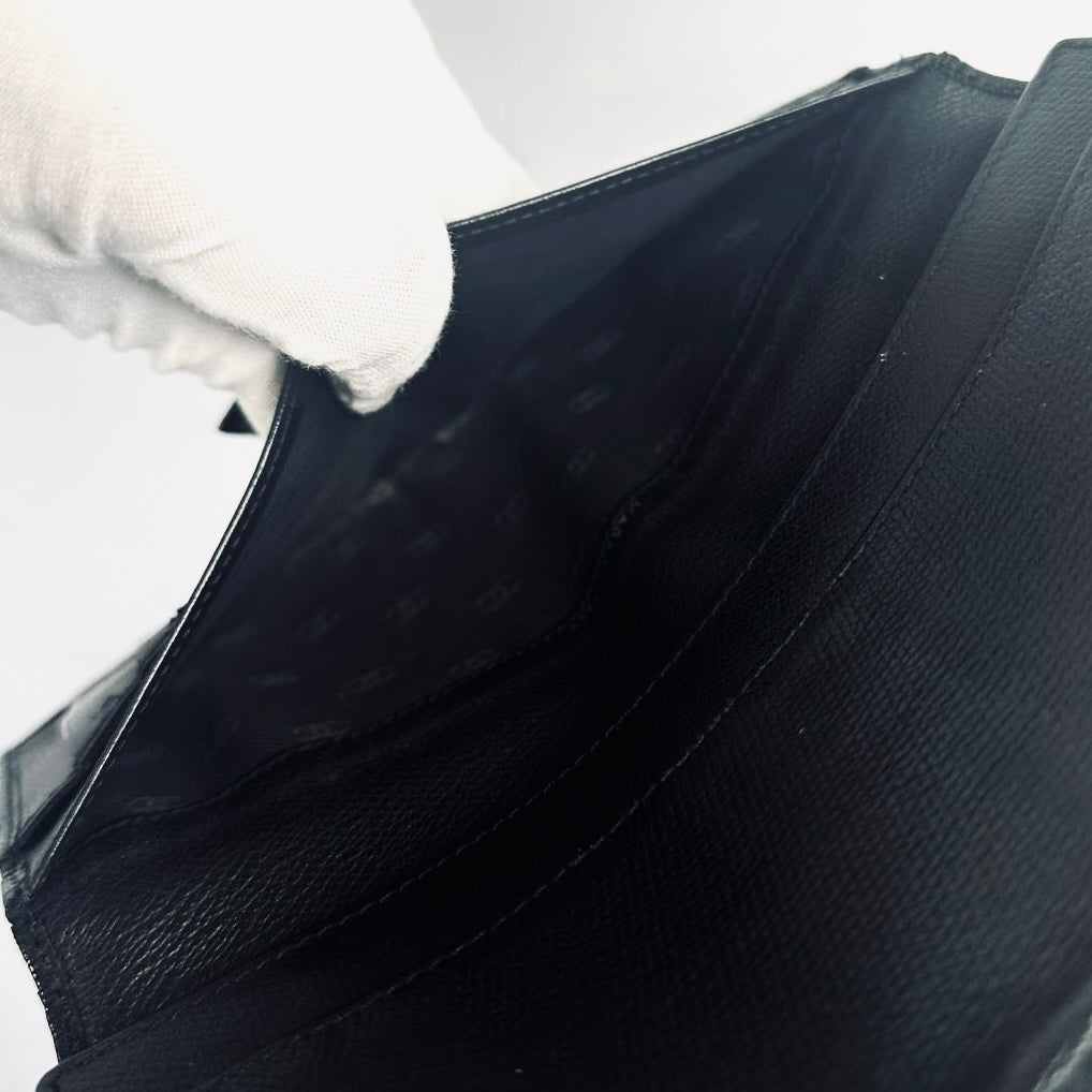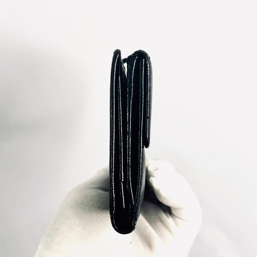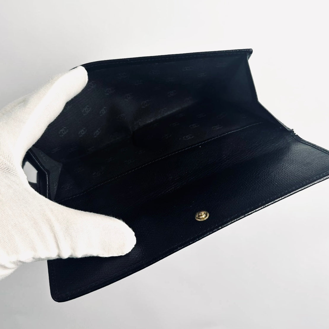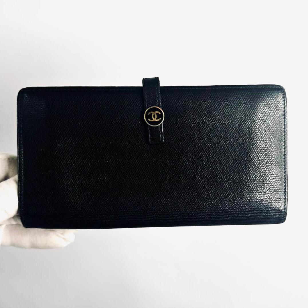 Chanel Black GHW CC Logo Grained Calfskin Leather Vintage Bifold Flap Long Wallet 8s