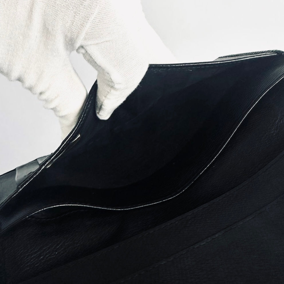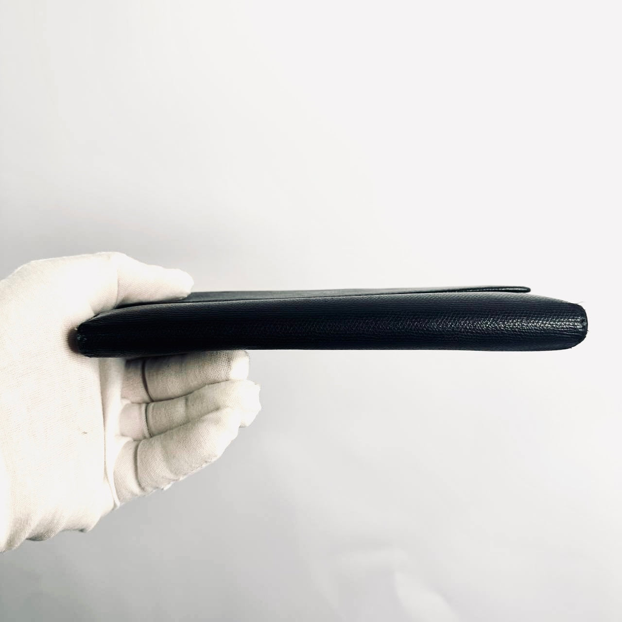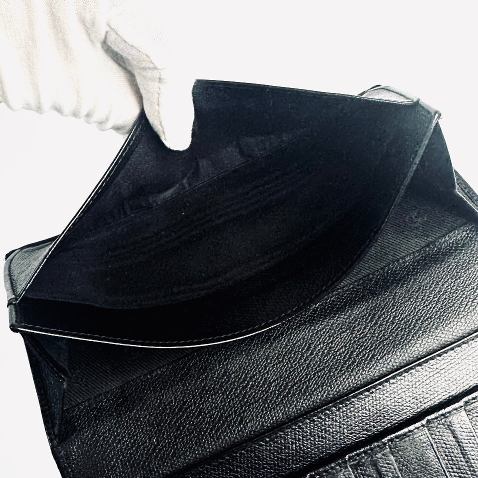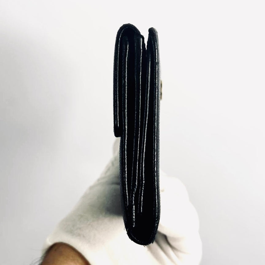 Chanel Black GHW CC Logo Grained Calfskin Leather Vintage Bifold Flap Long Wallet 8s