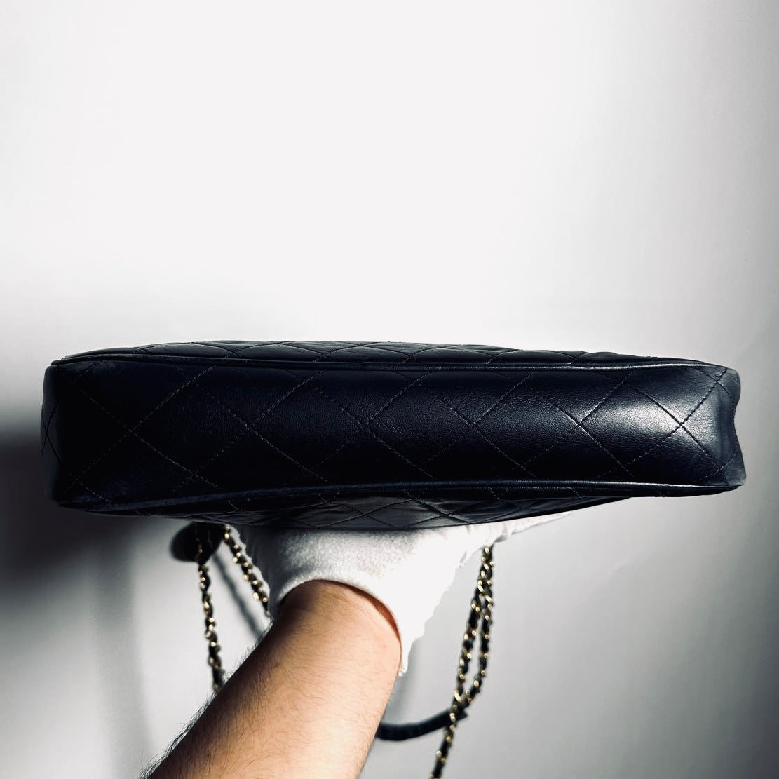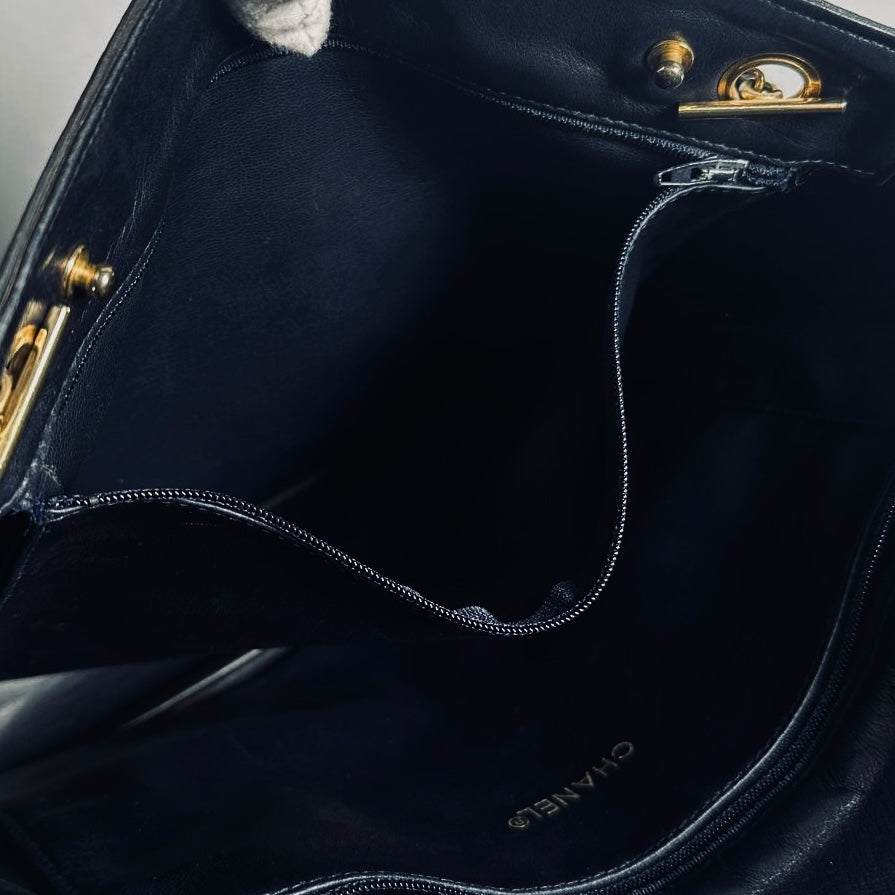 Chanel Black GHW CC Monogram Logo Quilted Leather & Fabric Vintage Shoulder Shopper Chain Tote Bag