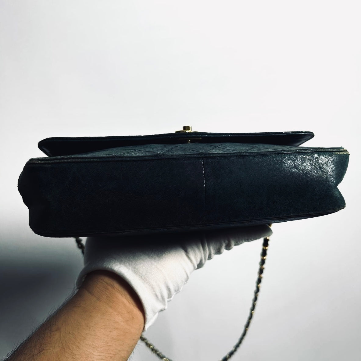 Chanel Black GHW CC Monogram Logo Turnlock Single Flap Quilted Lambskin Vintage Shoulder Sling Bag Pre Series