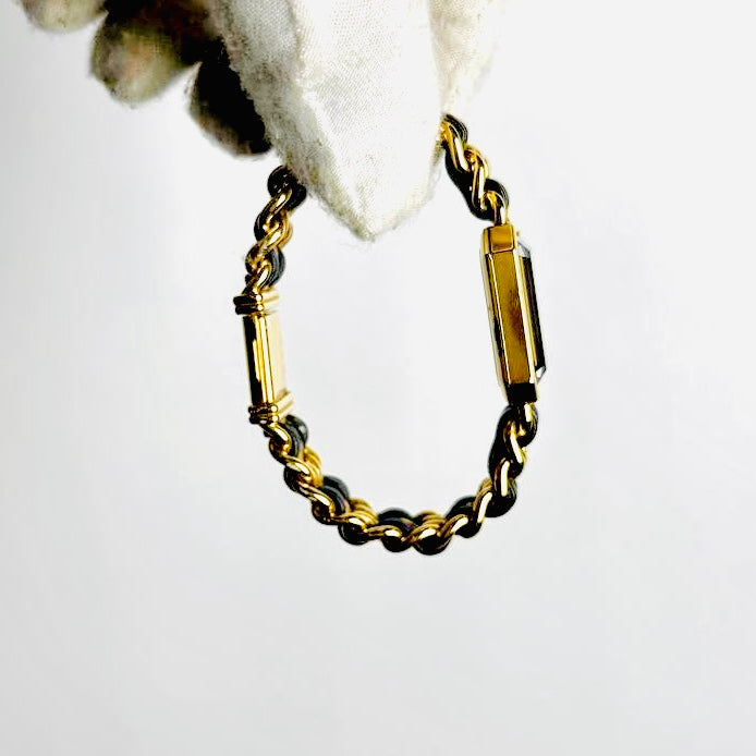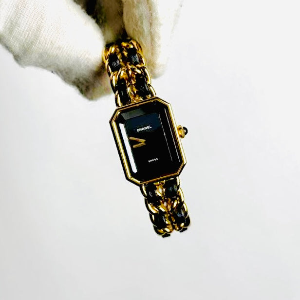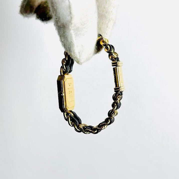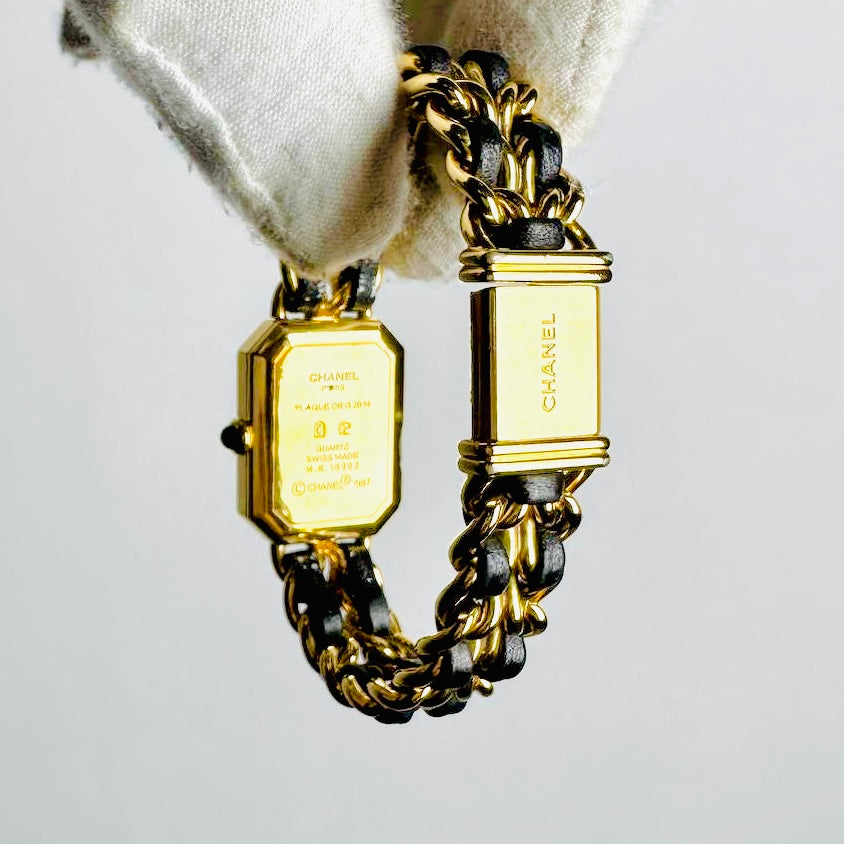 Chanel Black GHW CC Premiere Monogram Logo Black Rectangle Dial Quilted Matelasse Stainless Steel Chain Bracelet 20MM Quartz Watch Size M