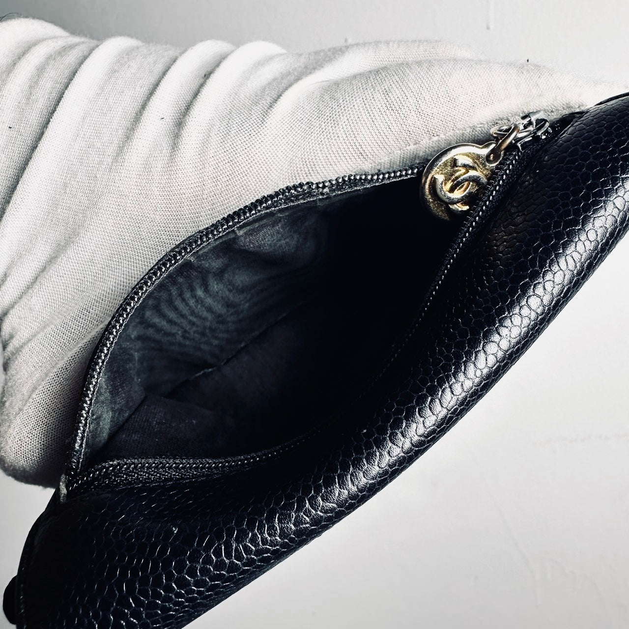 Chanel Black GHW Giant CC Logo Caviar Leather Vintage Flap Compact Wallet 4s