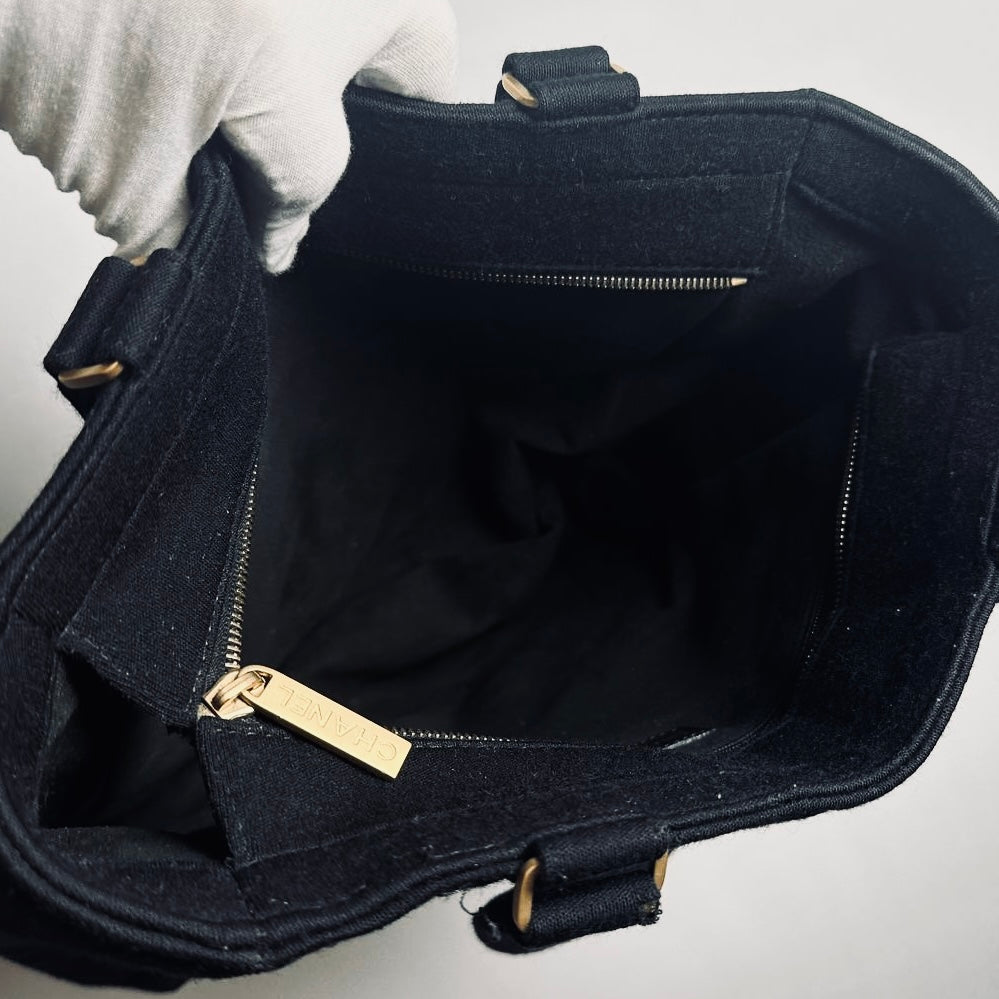Chanel Black GHW Giant CC Monogram Logo Chocolate Bar Quilted Jersey Fabric Vintage Shopper Shoulder Tote Bag 7s