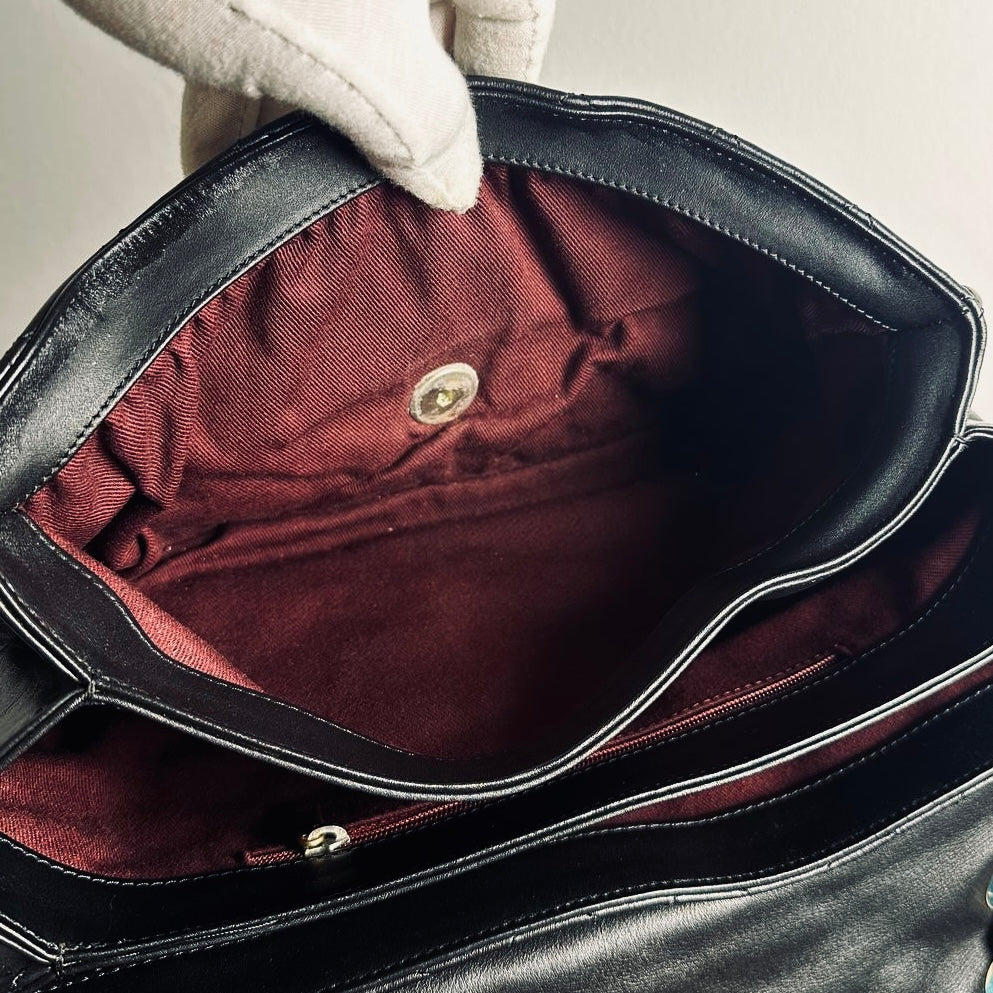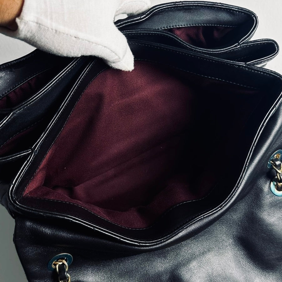 Chanel Black GHW Soft Elegance Jumbo Classic Quilted Lambskin Single Flap Turnlock CC Monogram Logo Chain Shoulder Sling Bag 20s