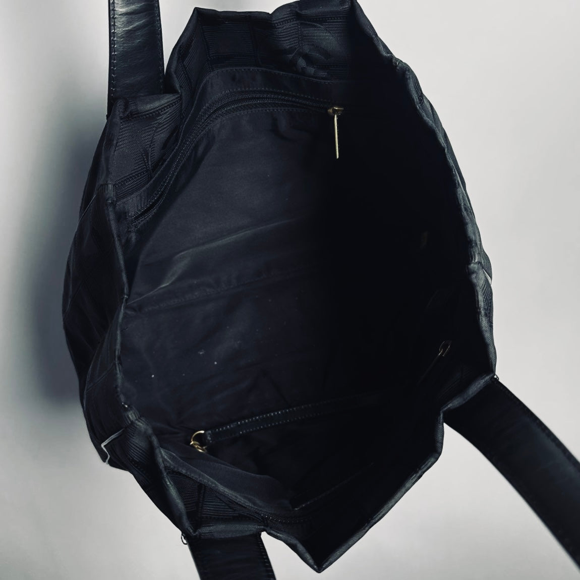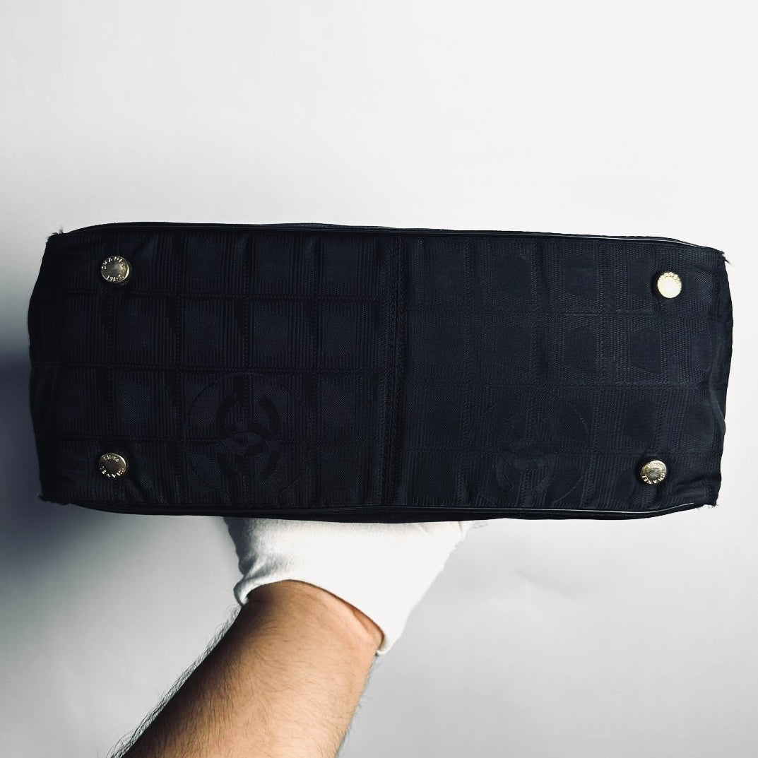 Chanel Black GHW Travel Line Quilted Jacquard CC Monogram Logo Shoulder Shopper Tote Bag 8s