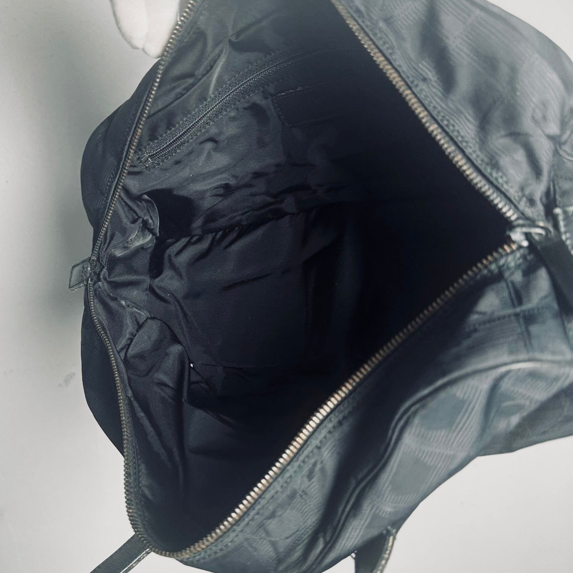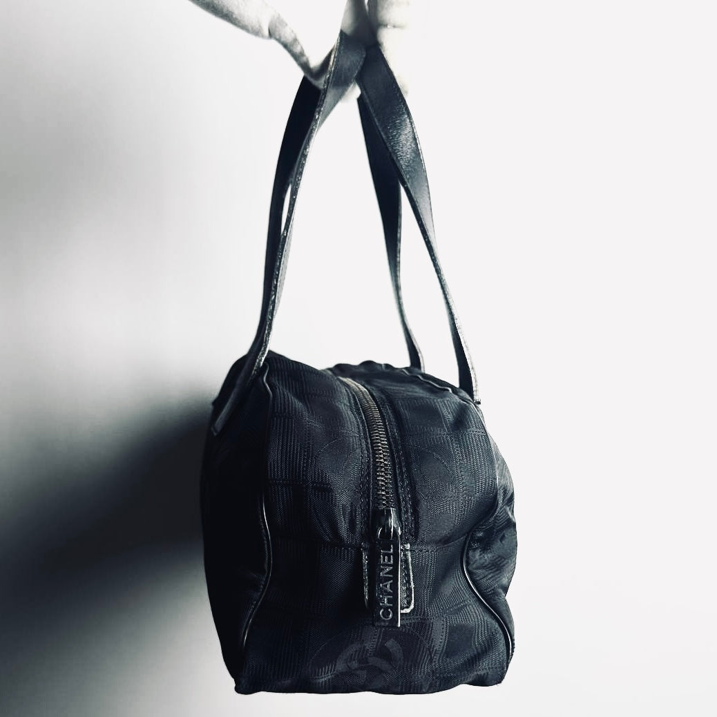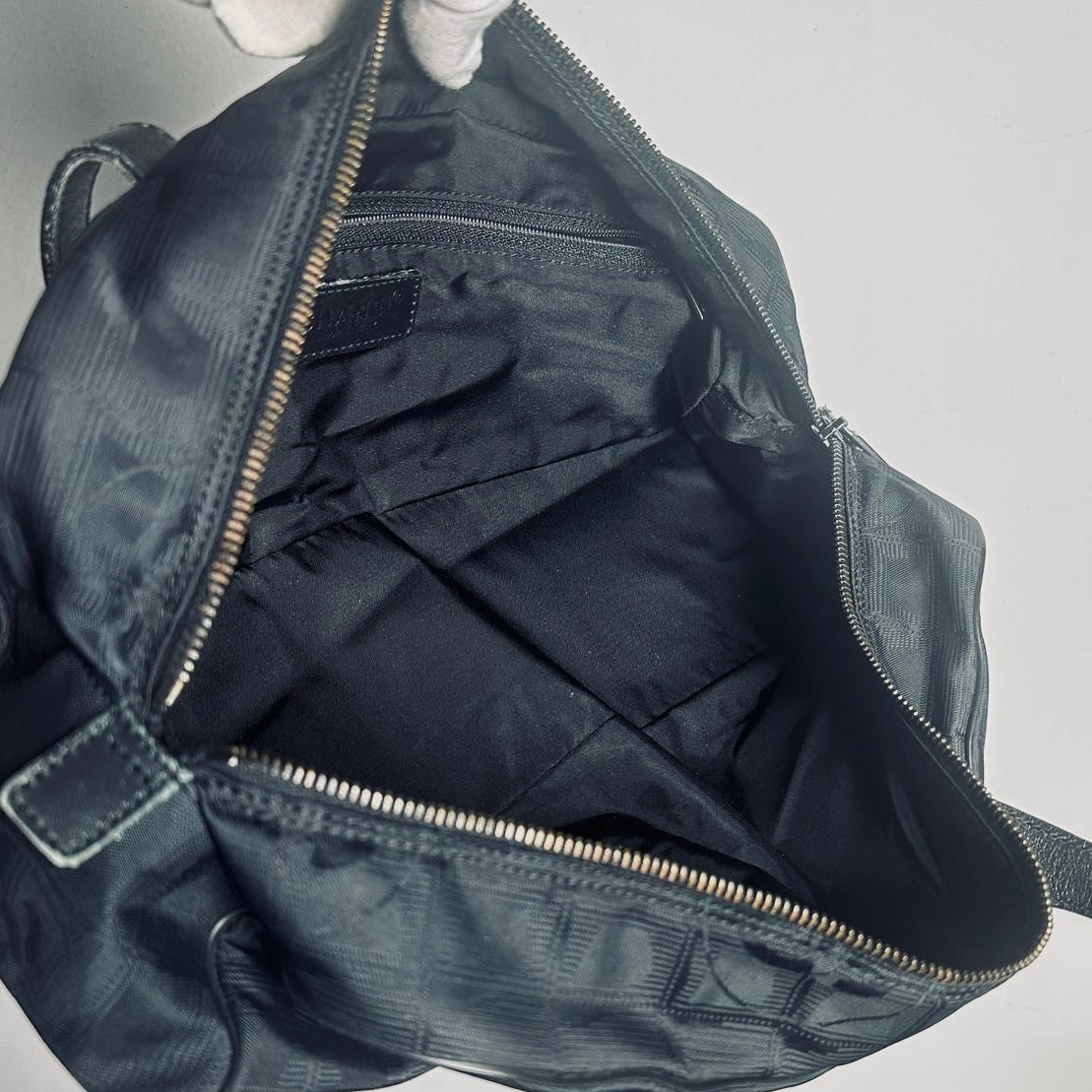 Chanel Black Travel Line East West Quilted Jacquard CC Monogram Logo Shoulder Shopper Boston Tote Bag 7s