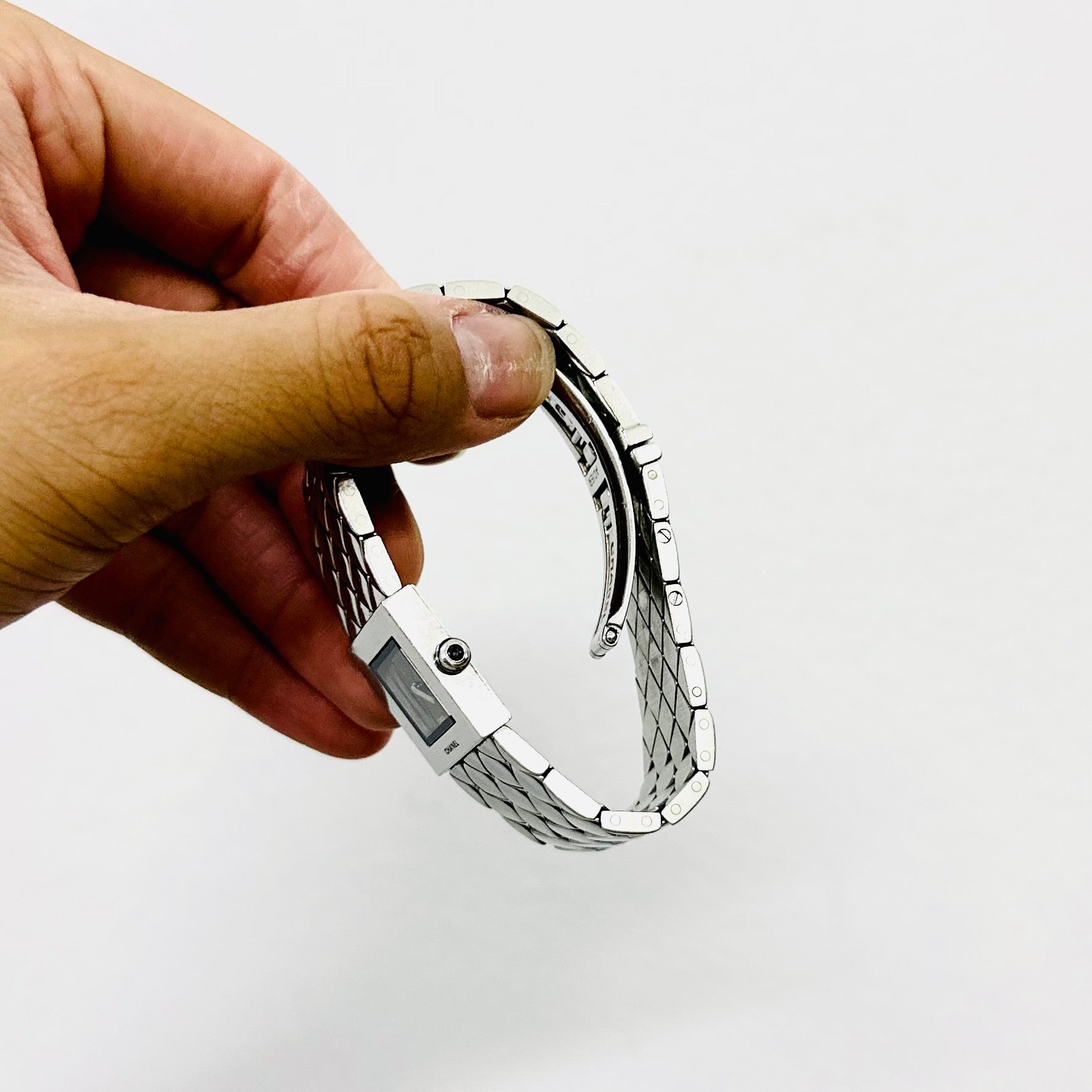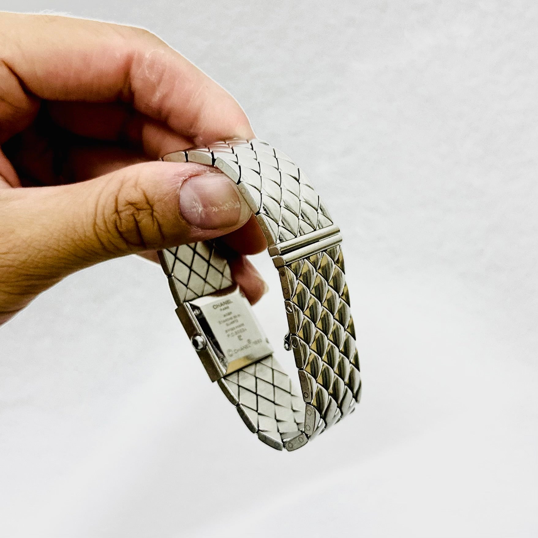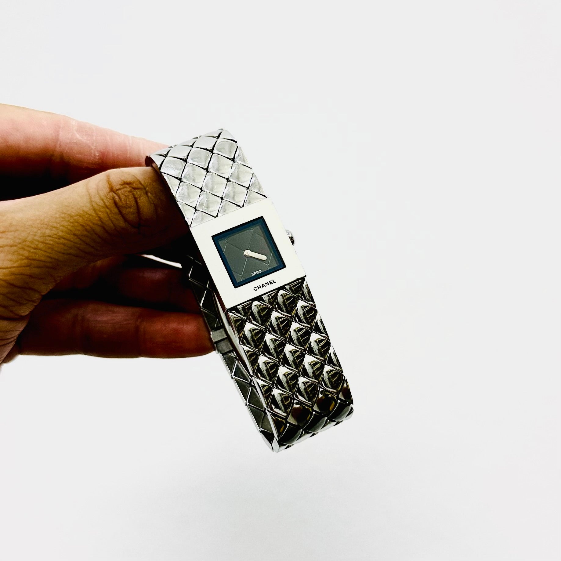 Chanel CC Monogram Logo Black Square Dial Quilted Matelasse Stainless Steel 19MM Quartz Watch