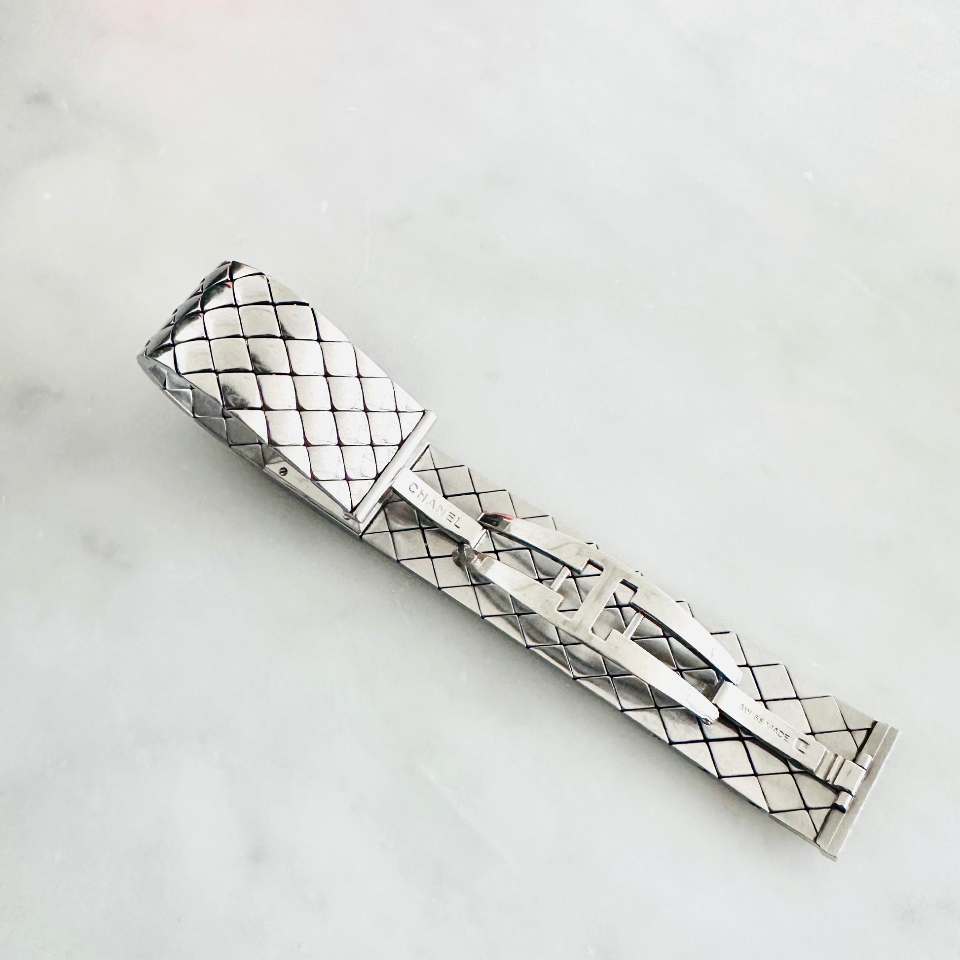 Chanel CC Monogram Logo Black Square Dial Stainless Steel Matelasse Quilted 19MM Quartz Watch