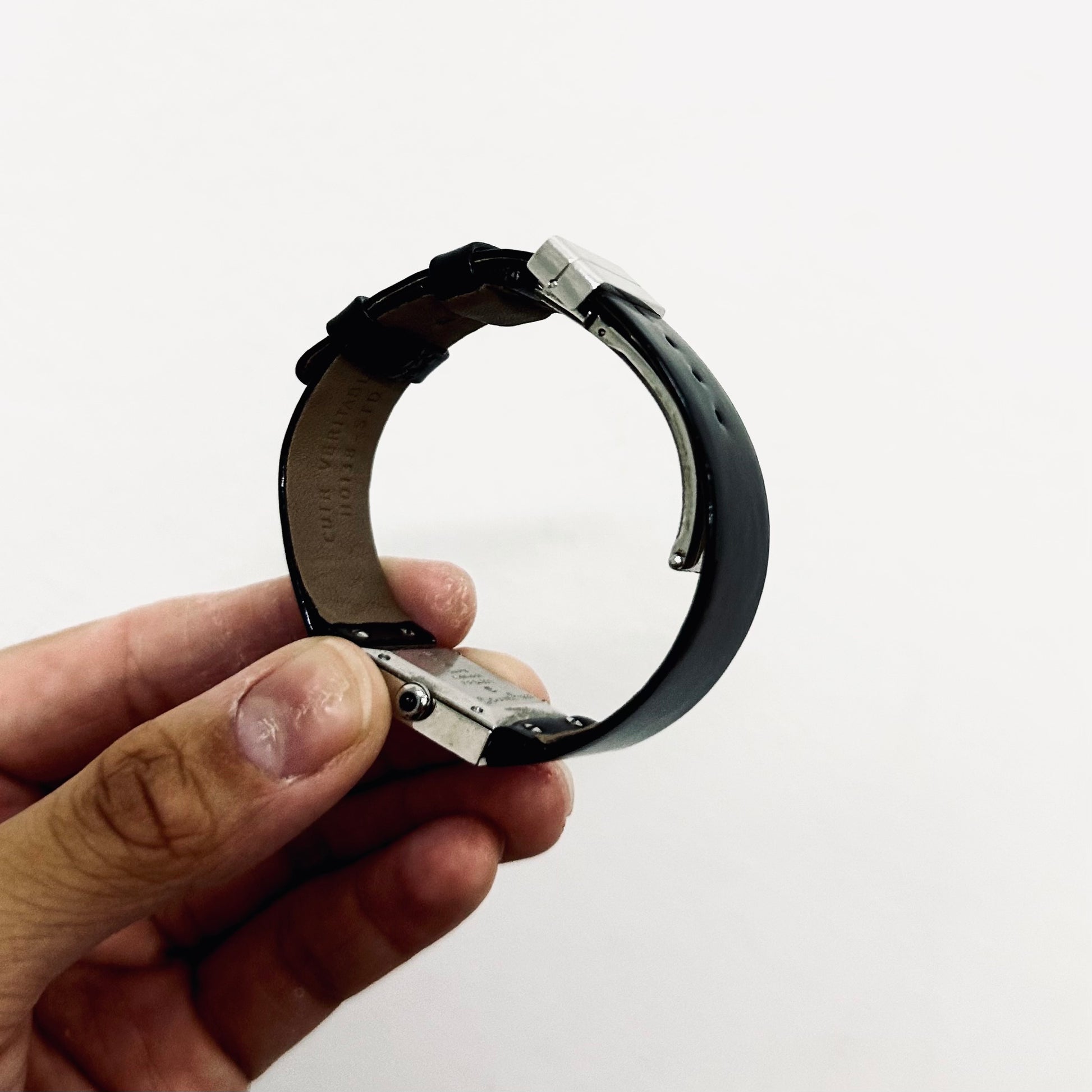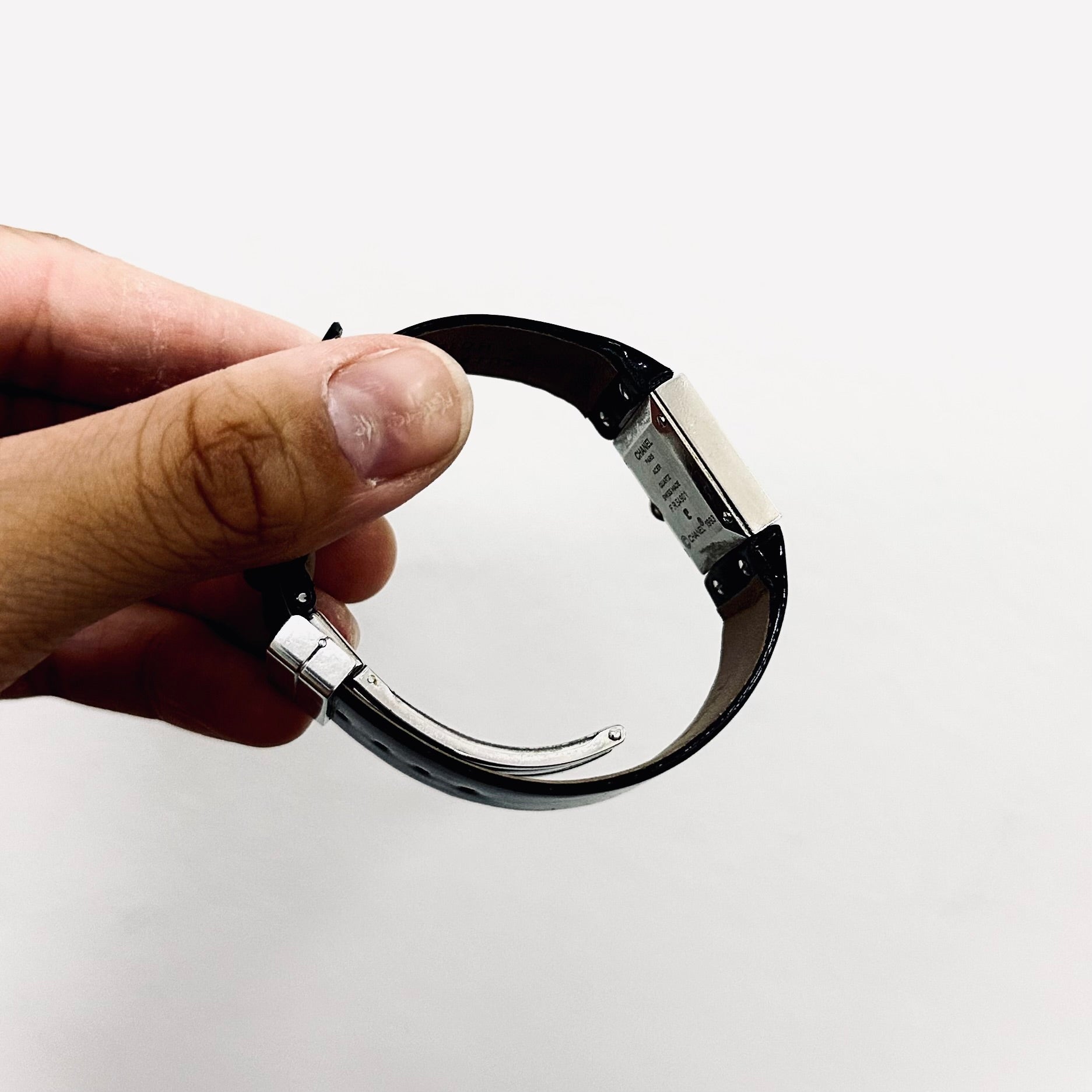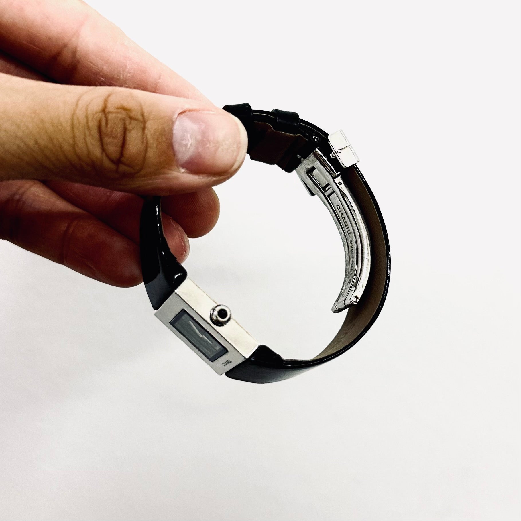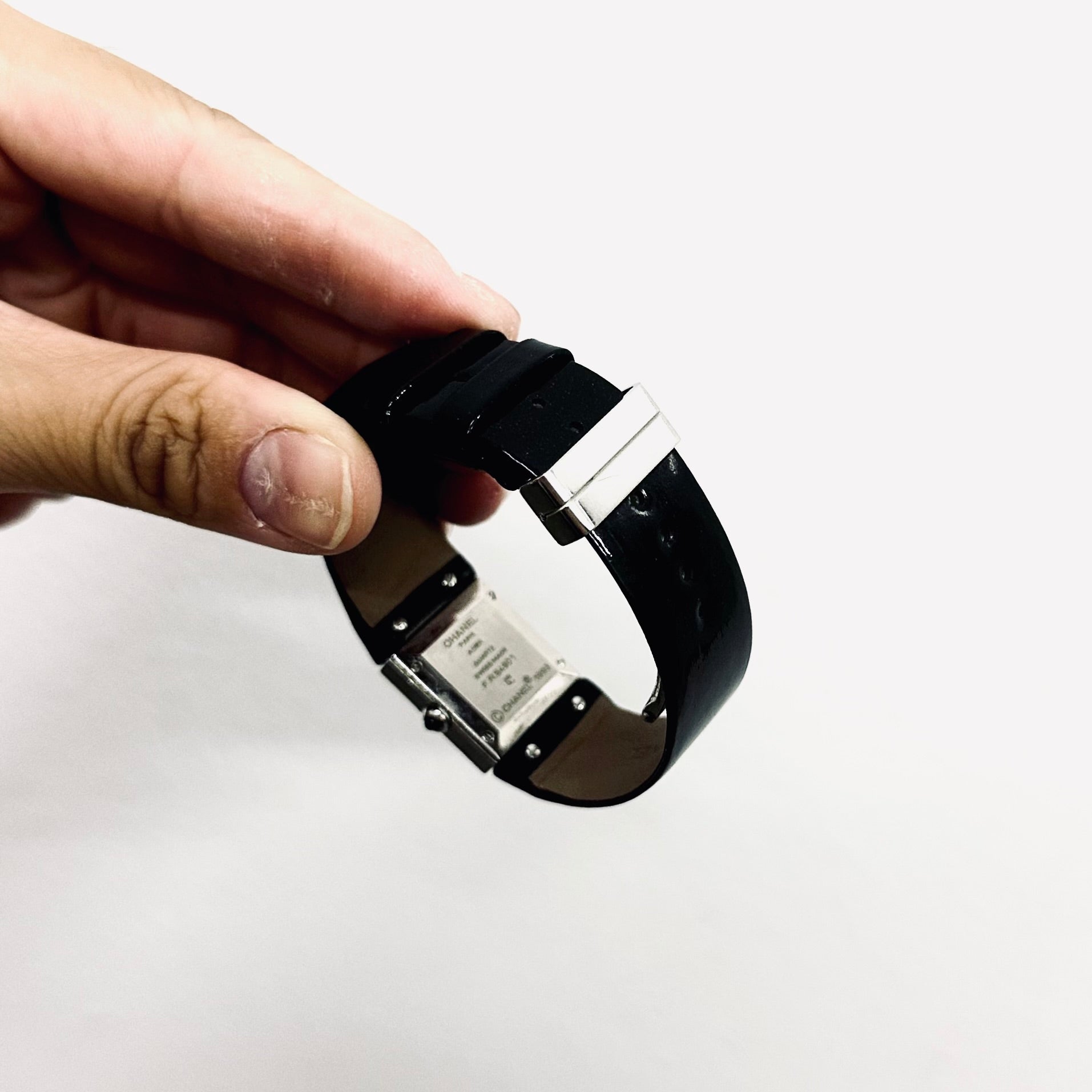 Chanel CC Monogram Logo Square Dial Stainless Steel Matelasse Black Leather Strap 22MM Quartz Watch