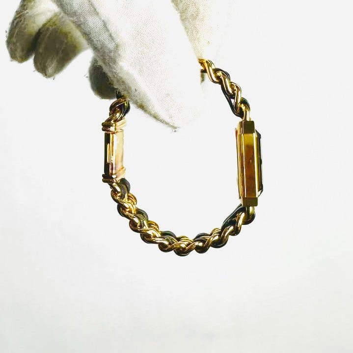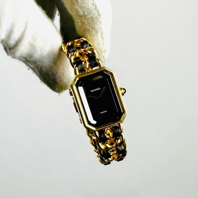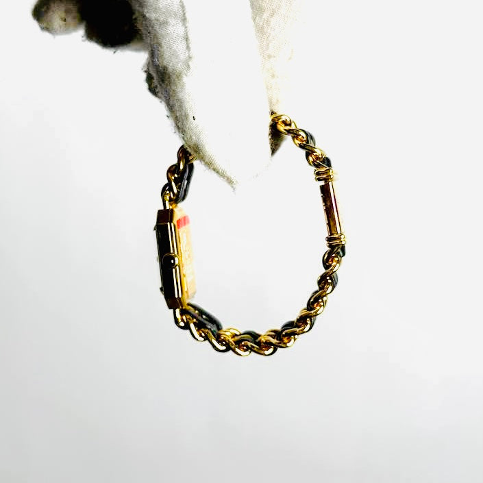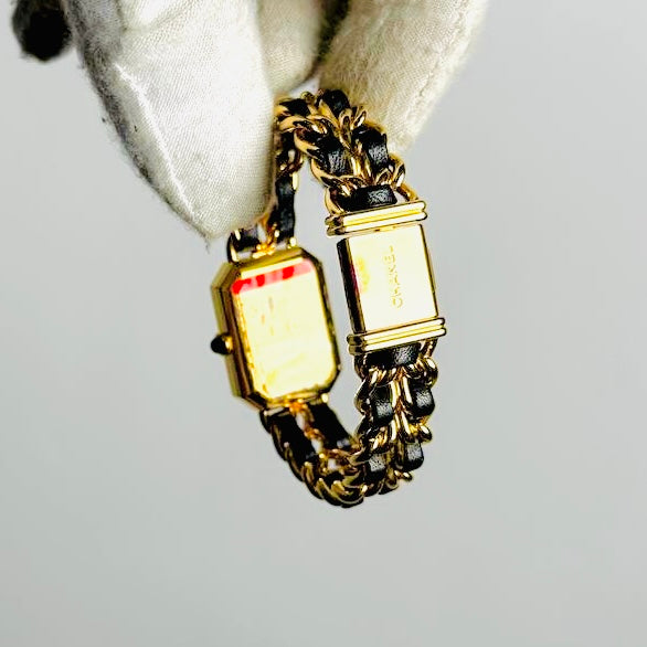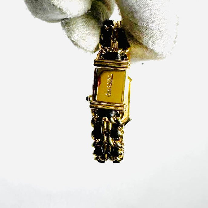 Chanel CC Premiere Black GHW Monogram Logo Black Rectangle Dial Quilted Matelasse Stainless Steel Chain Bracelet 20MM Quartz Watch