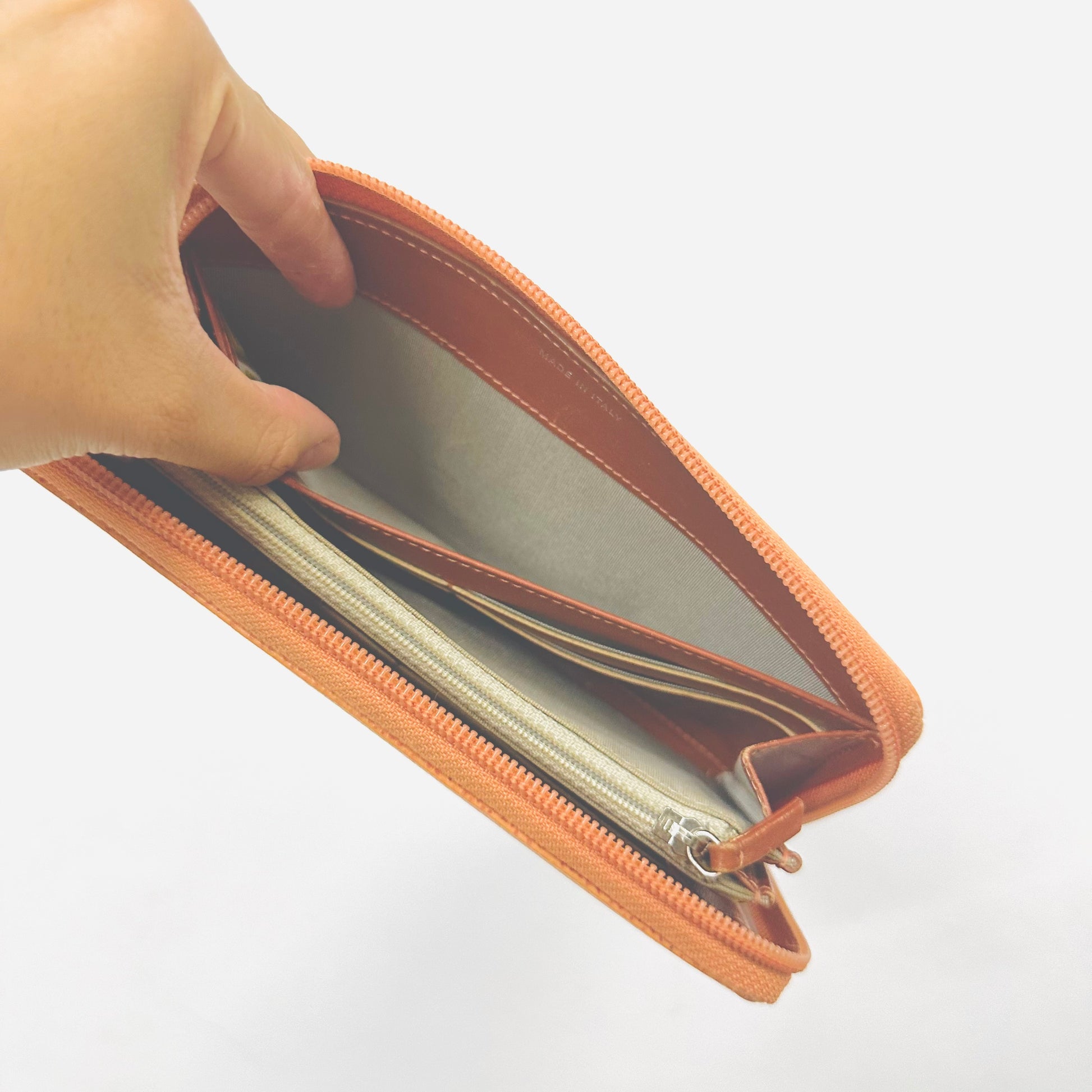 This has a zip around closure, card slots, notes compartment, zip pocket and slip pockets. This measures 19.5x10.5x2cm. This comes with clearly engraved hardware, front logo, interior stamping, holo and gold japan boutique sticker.