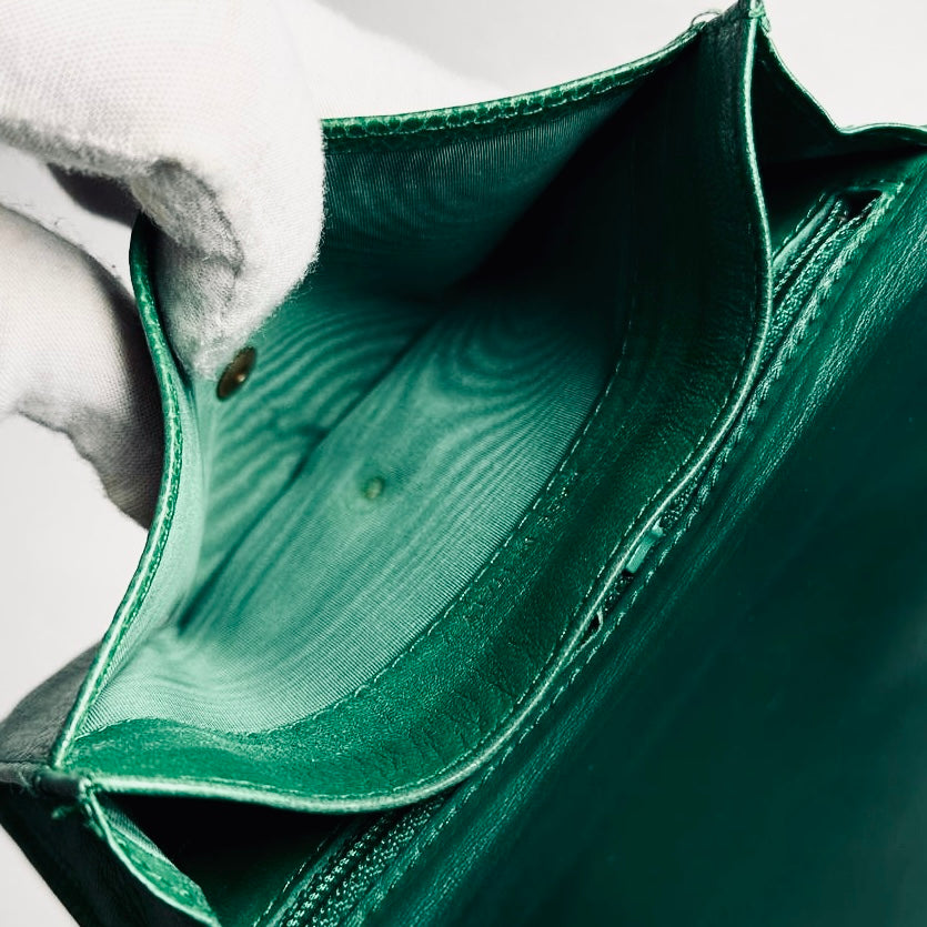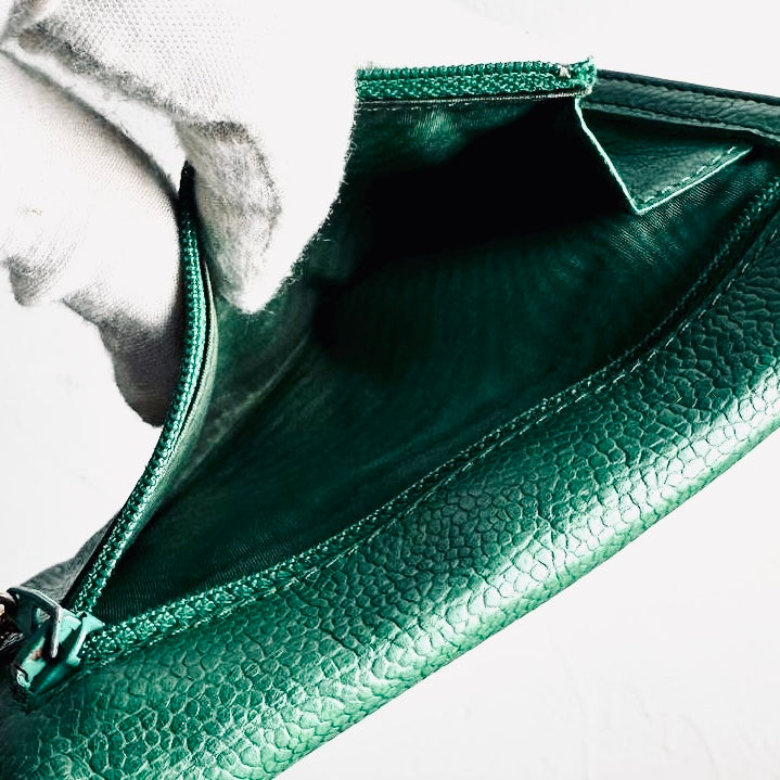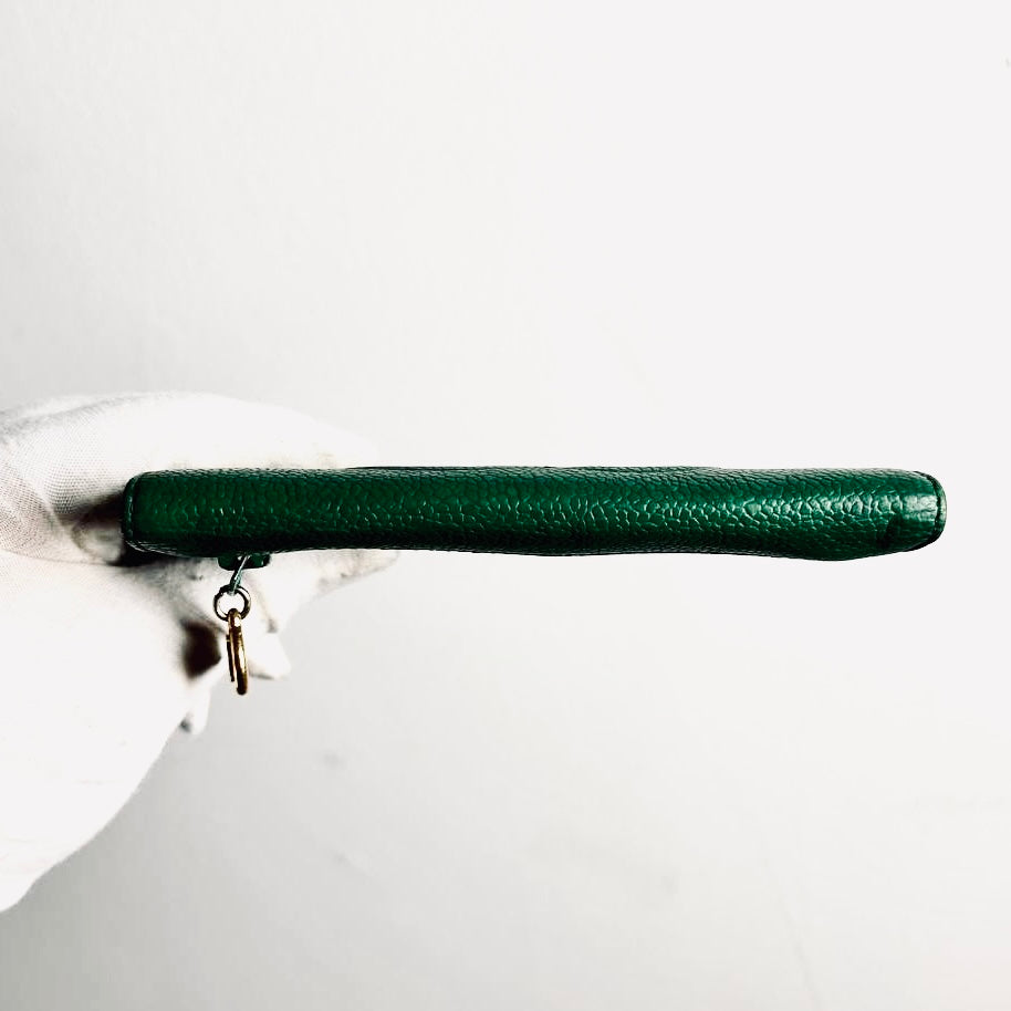 Chanel Jade Green GHW Caviar Giant CC Monogram Logo Vintage Flap Compact Wallet 4s
