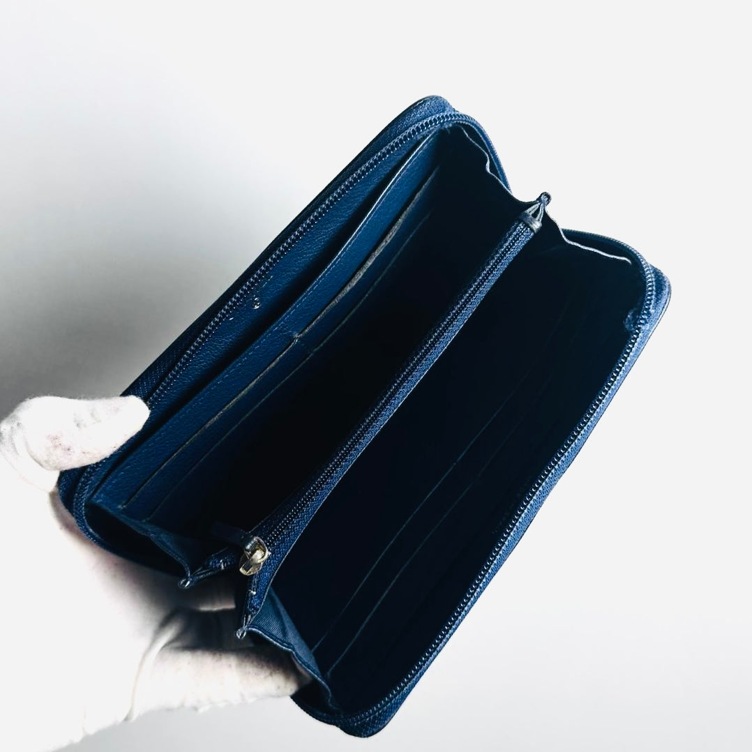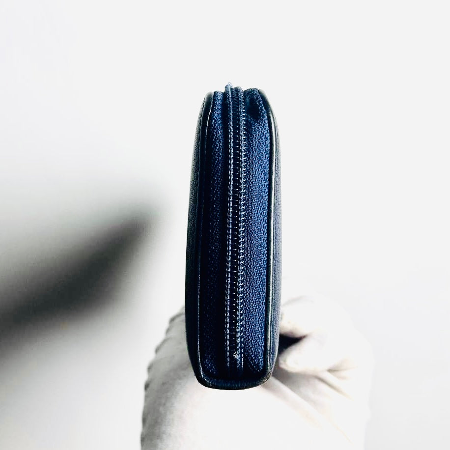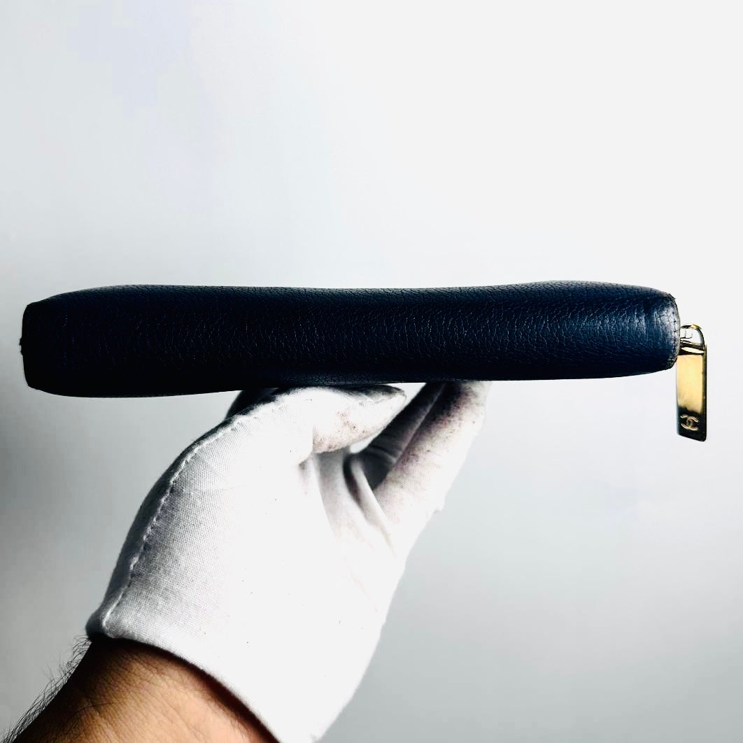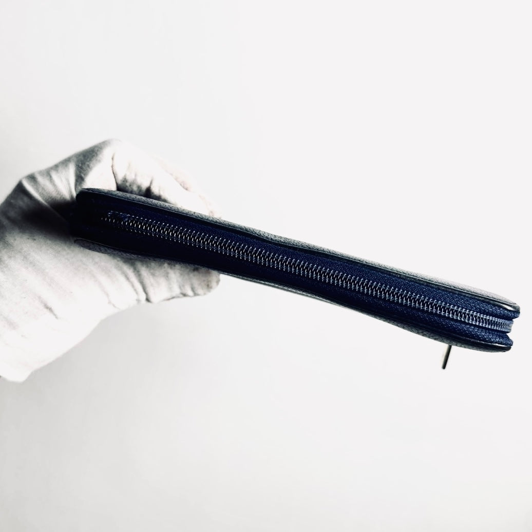Chanel Navy Blue GHW Giant CC Monogram Logo Chevre Leather Zippy Zip Around Long Wallet 22s