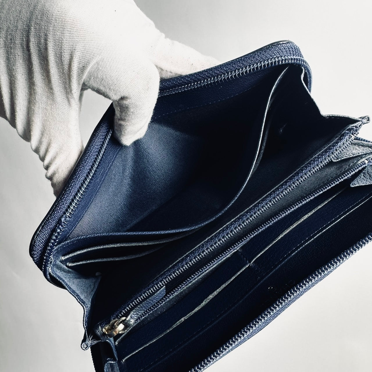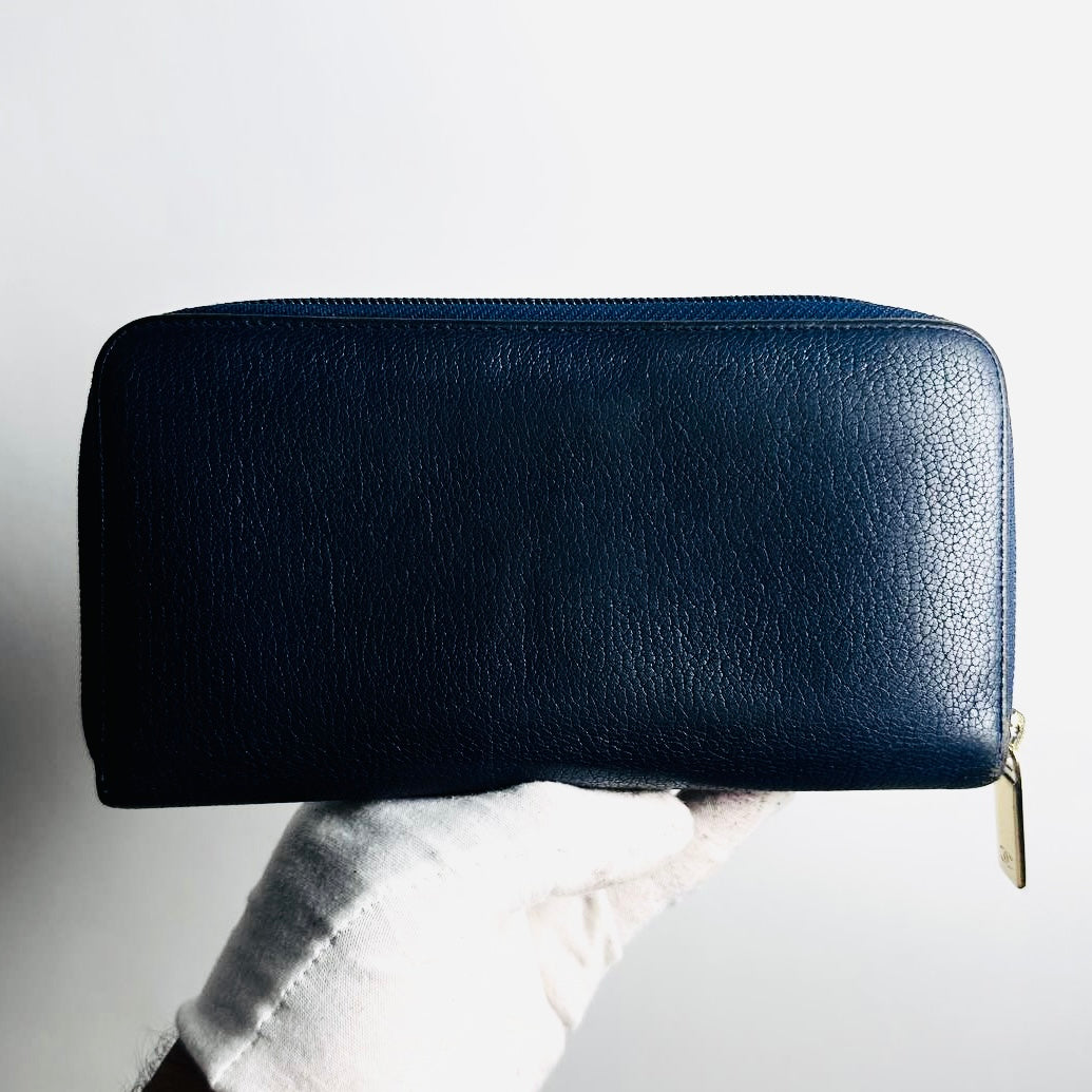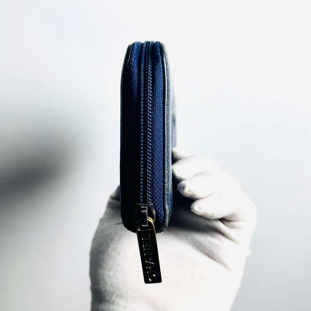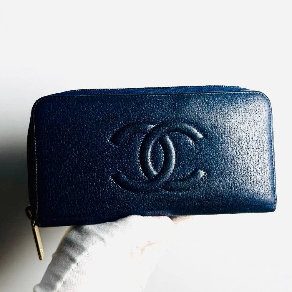Chanel Navy Blue GHW Giant CC Monogram Logo Chevre Leather Zippy Zip Around Long Wallet 22s