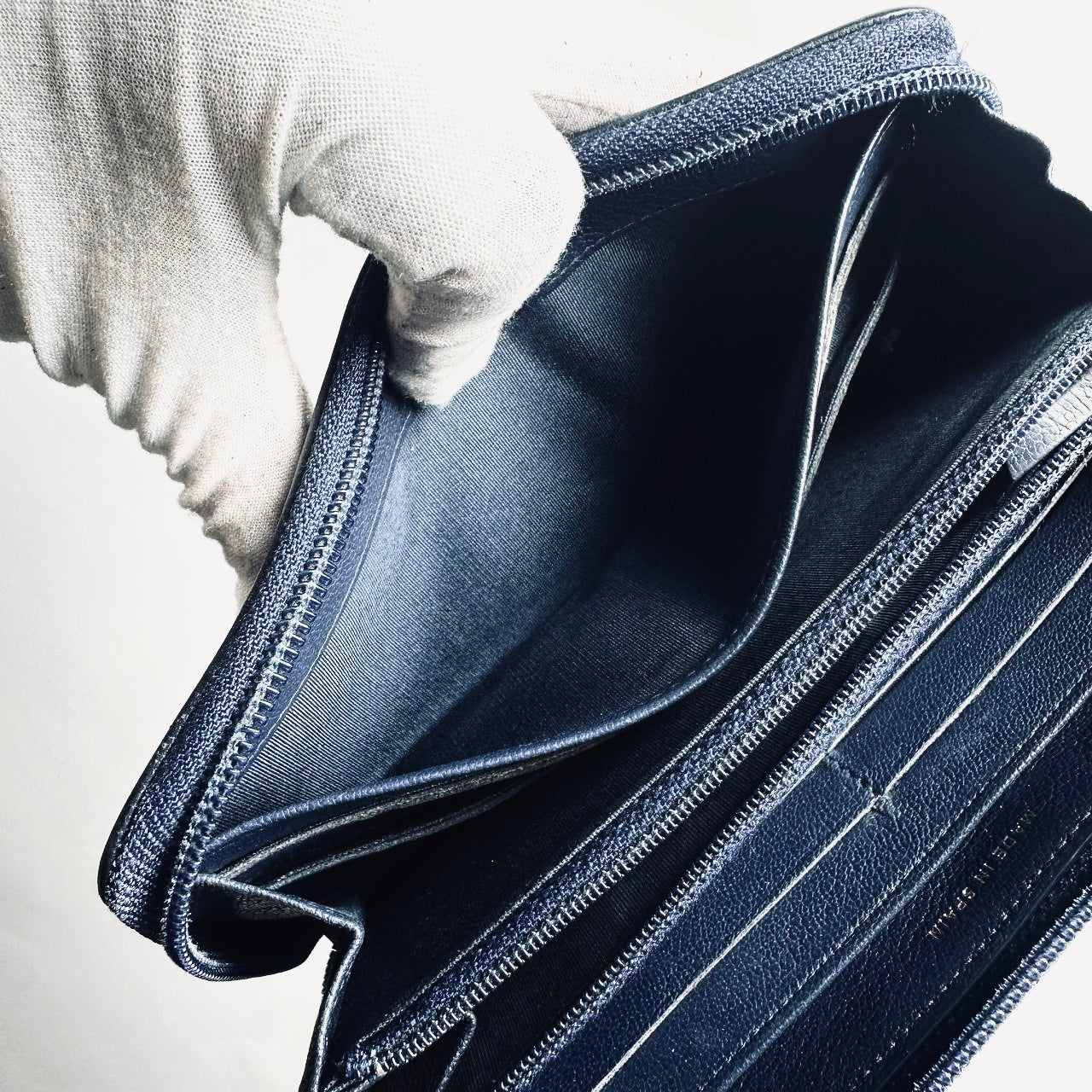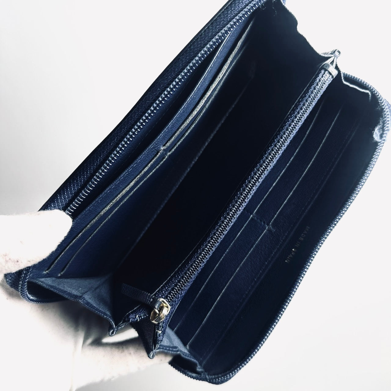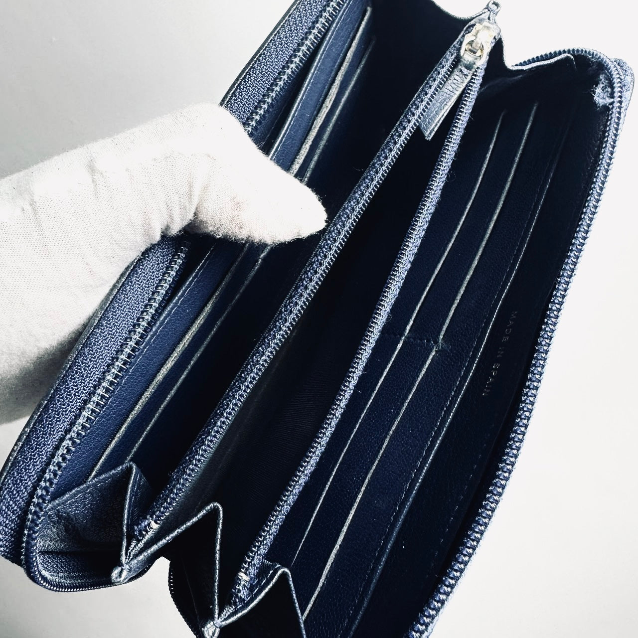 Preloved 9.4/10. This has a zip around closure, card slots, notes compartments, zip pocket and slip pockets. This measures 19.5x10.5x2cm.