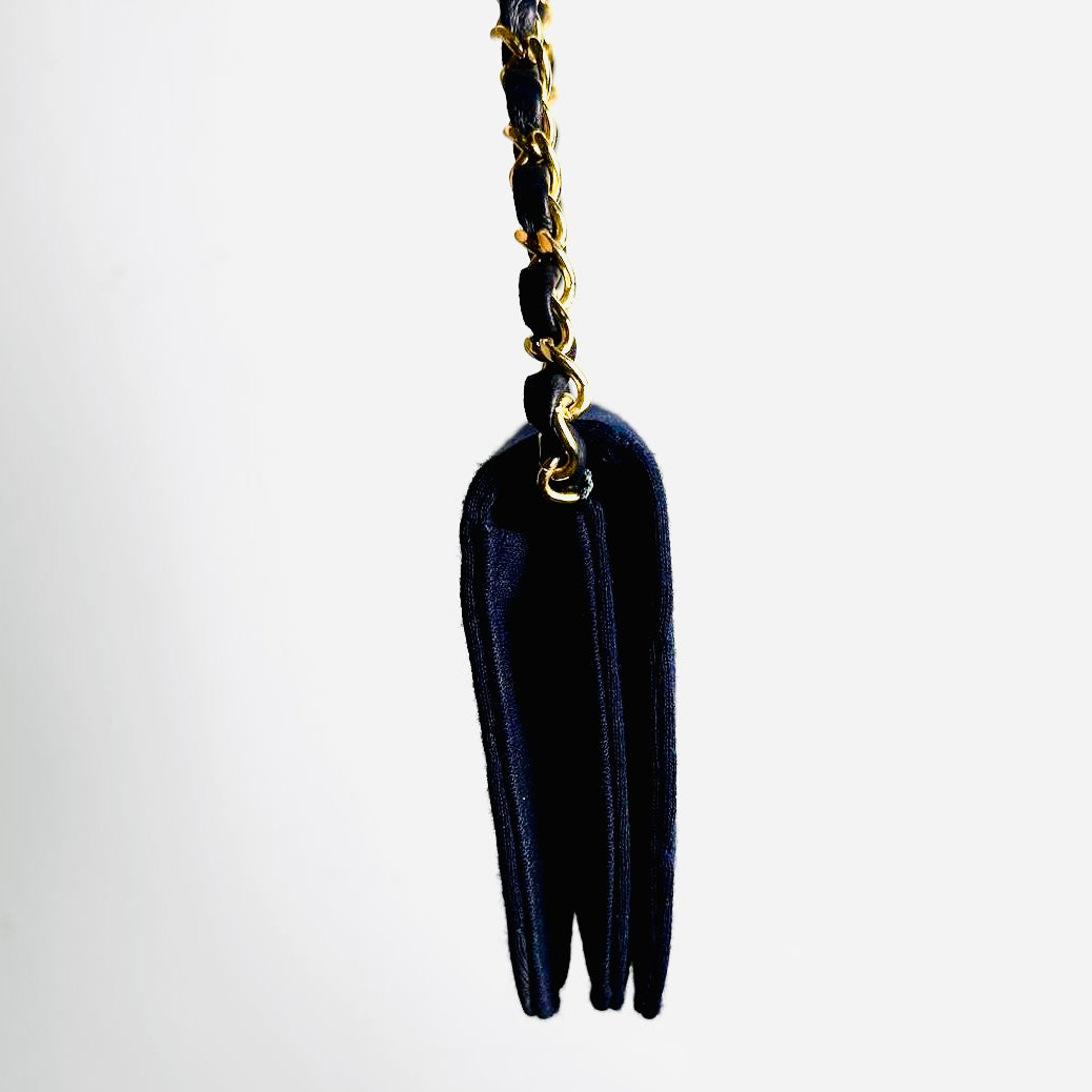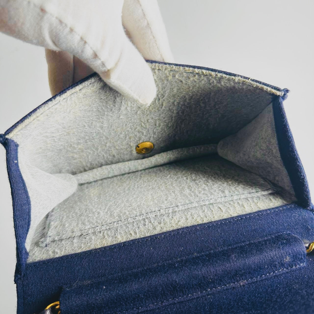 Chanel Navy Blue GHW Quilted Jersey Fabric CC Logo Vintage Full Flap Mini Shoulder Sling Bag