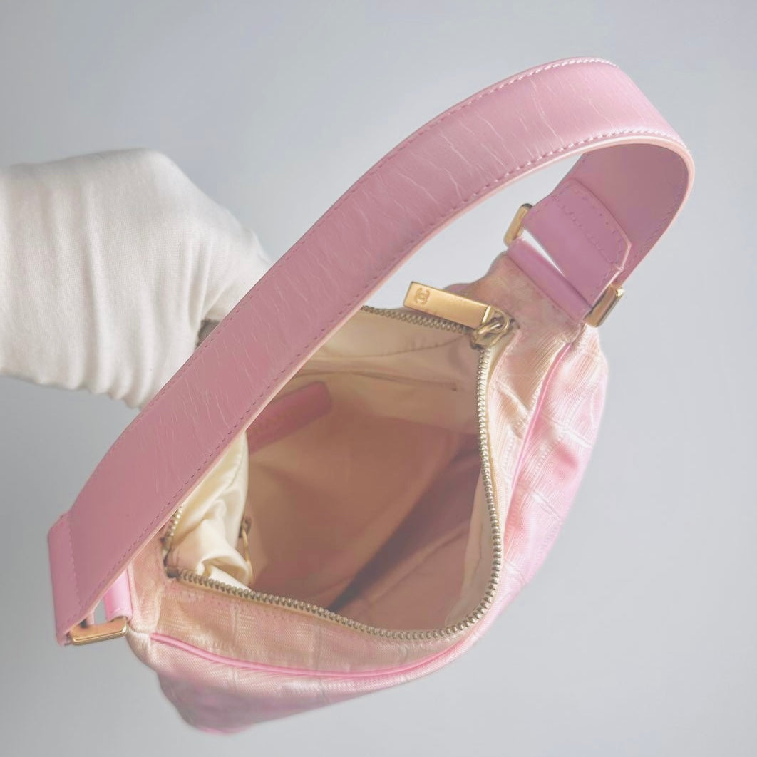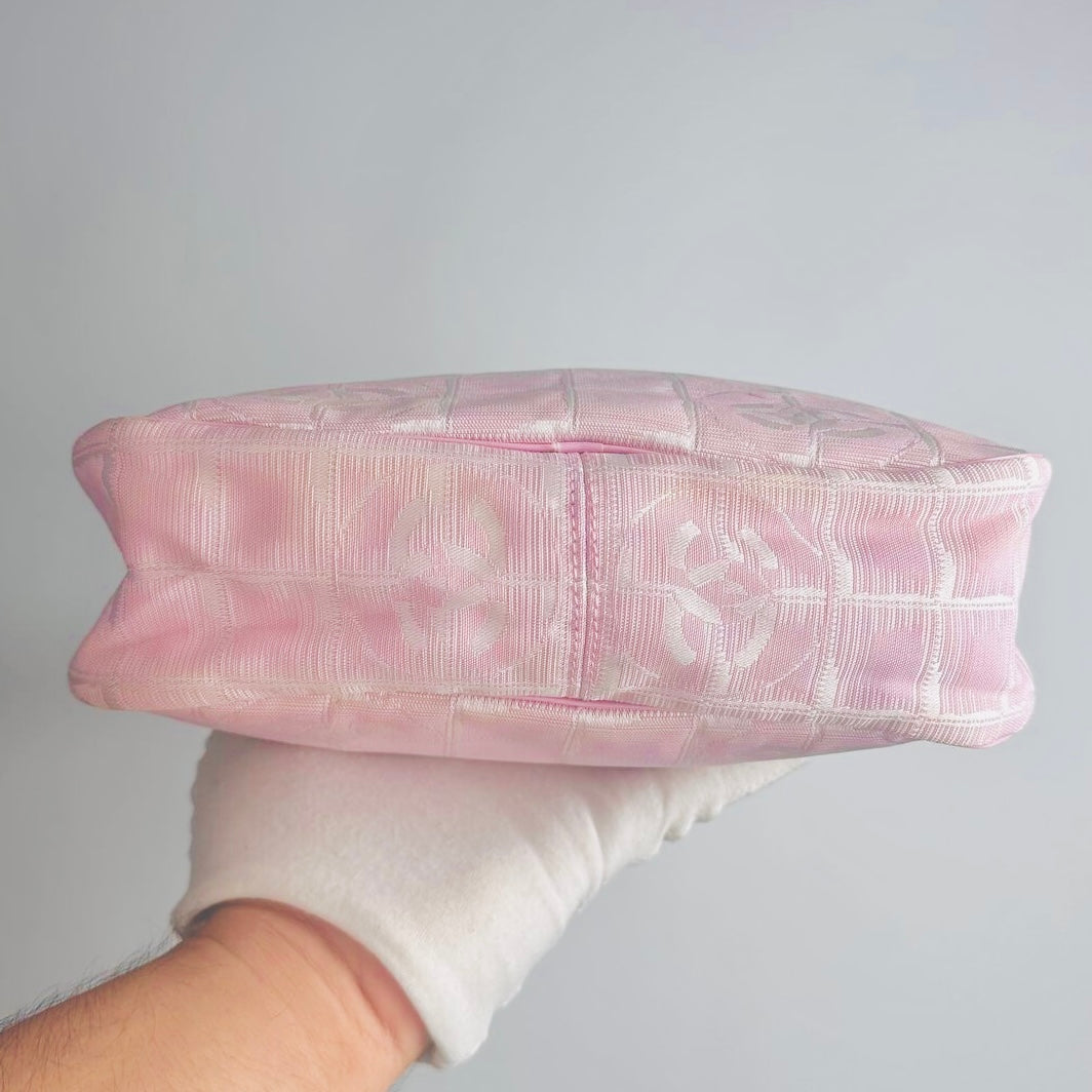 Chanel Pink GHW Travel Line Giant CC Monogram Logo Hobo Baguette Shoulder Bag 8s
