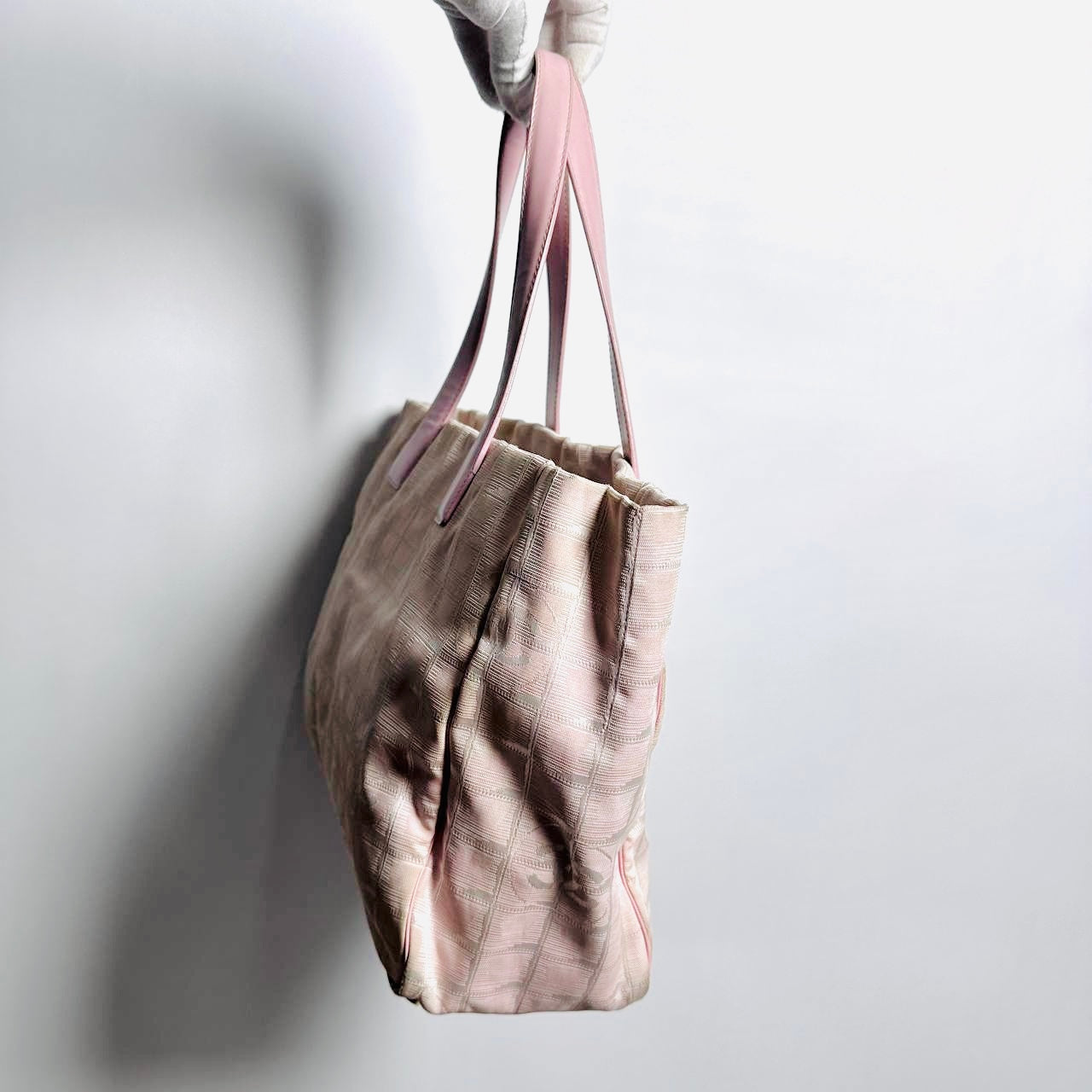 Chanel Pink GHW Travel Line Quilted Jacquard CC Monogram Logo Shopper Shoulder Tote Bag 8s