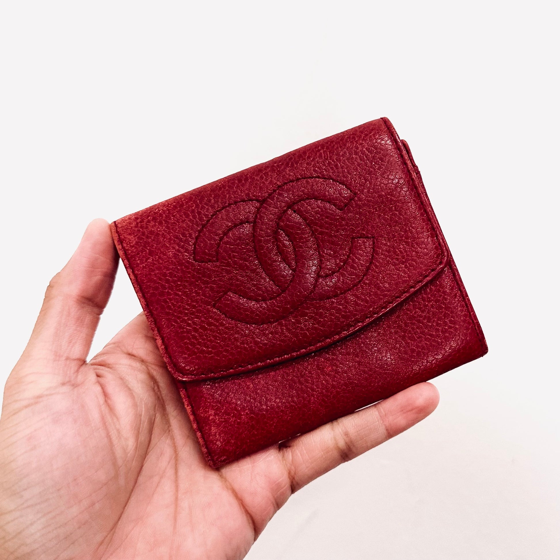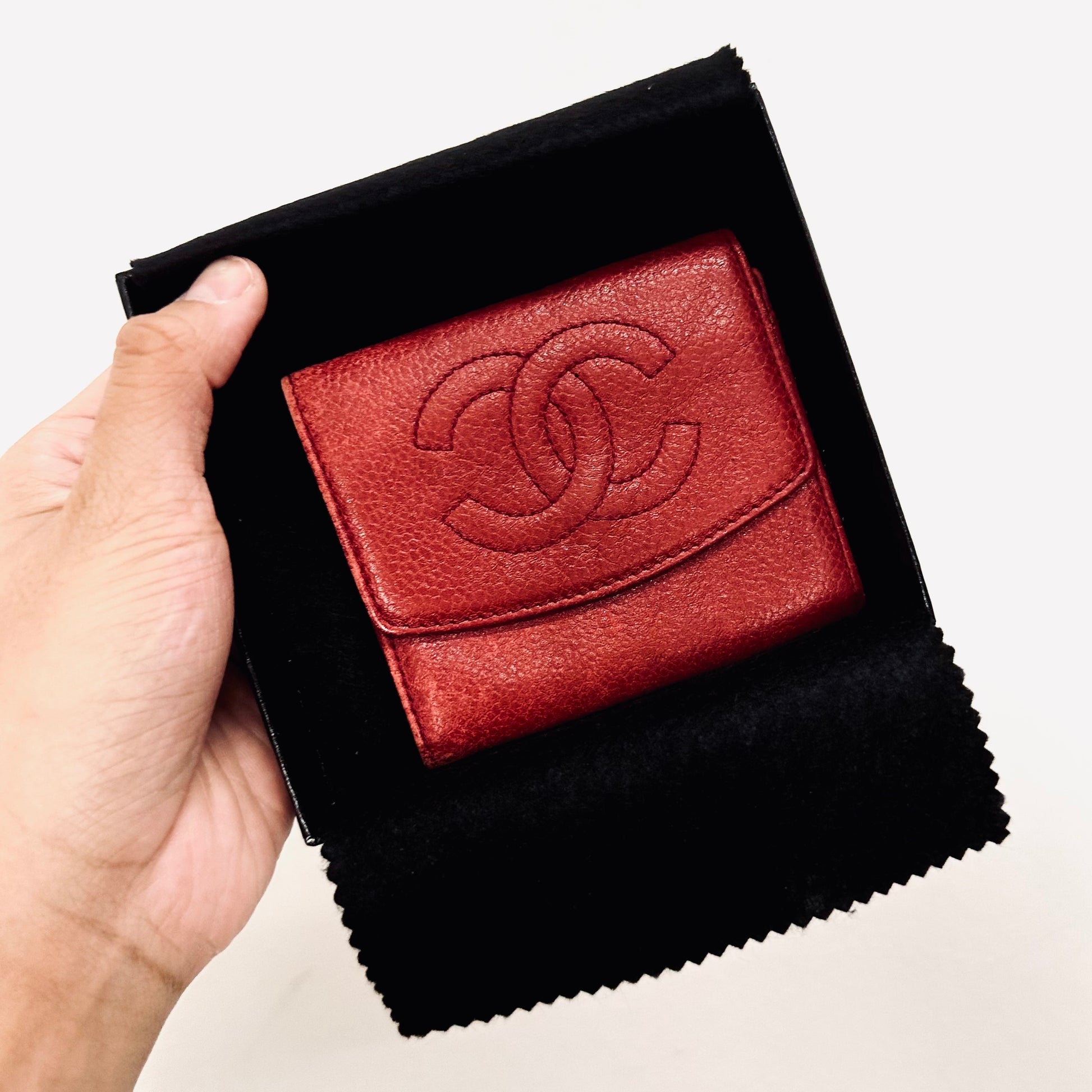 Chanel Red GHW Giant CC Logo Caviar Leather Flap Compact Wallet 3s