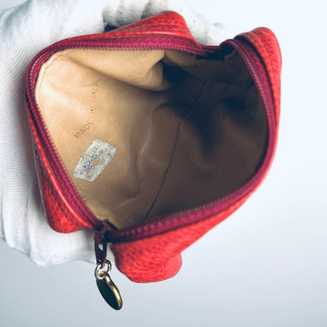 Chanel Red GHW Giant CC Monogram Logo Caviar Leather Small Zip Pouch Clutch Case