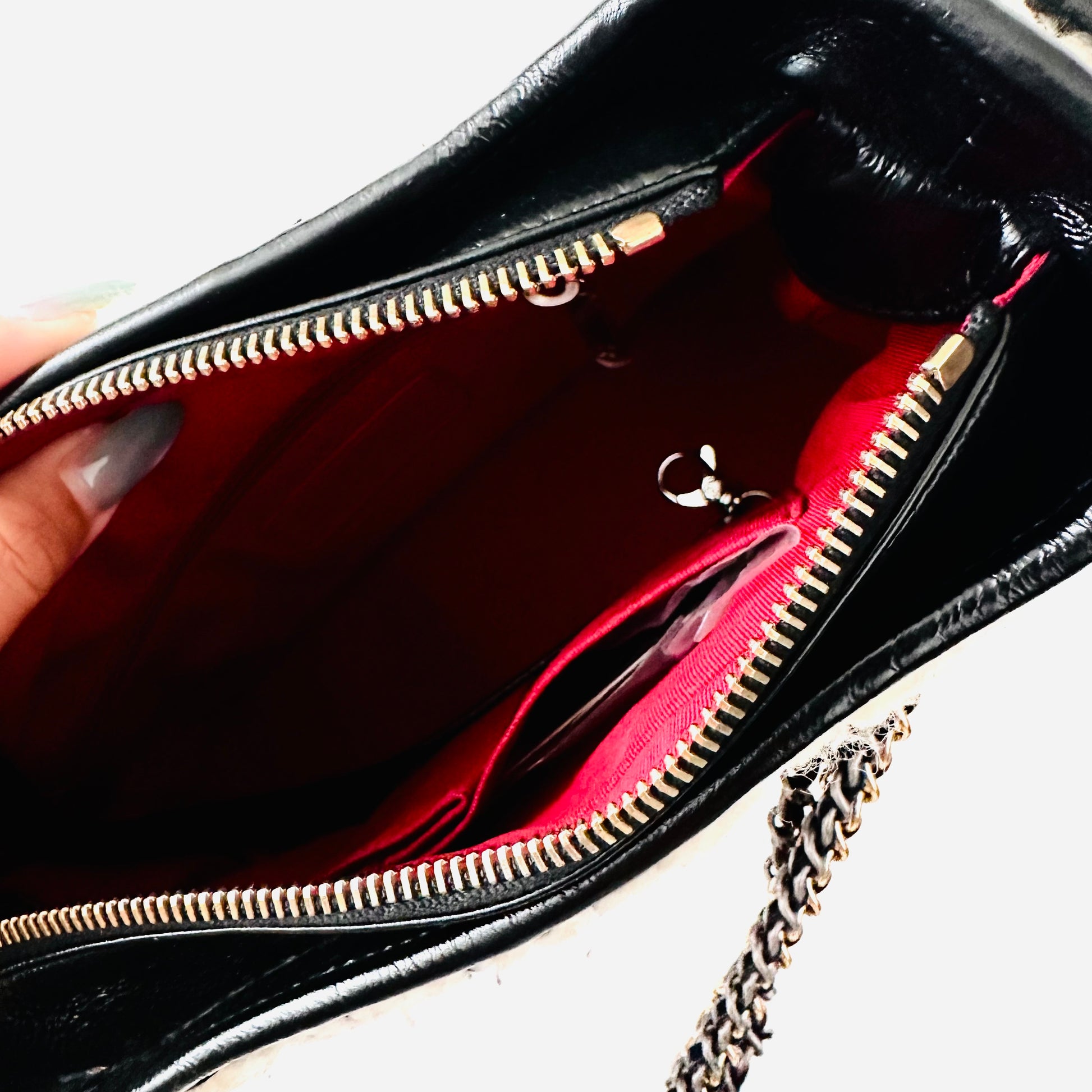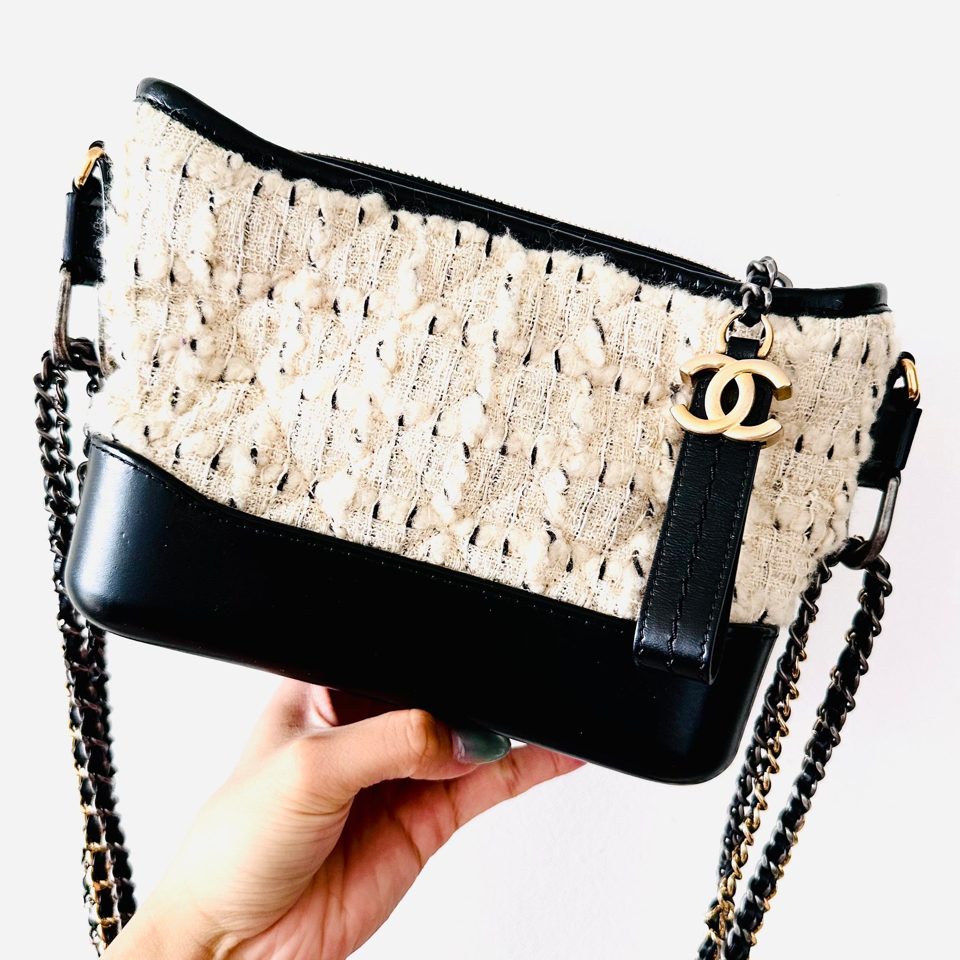 Chanel White / Black GHW Tweed Small Gabrielle CC Monogram Logo Chain Shoulder Sling Bag 24s