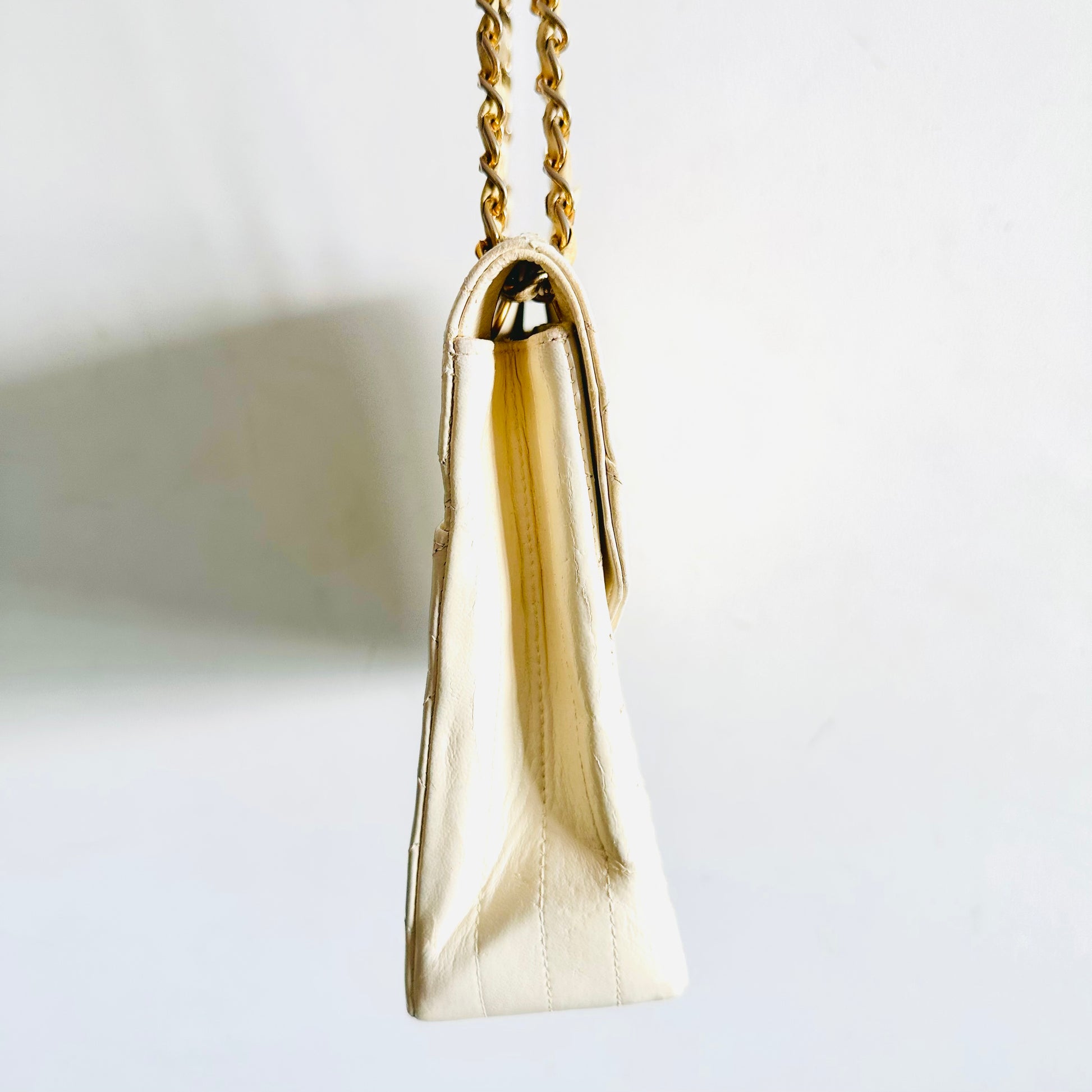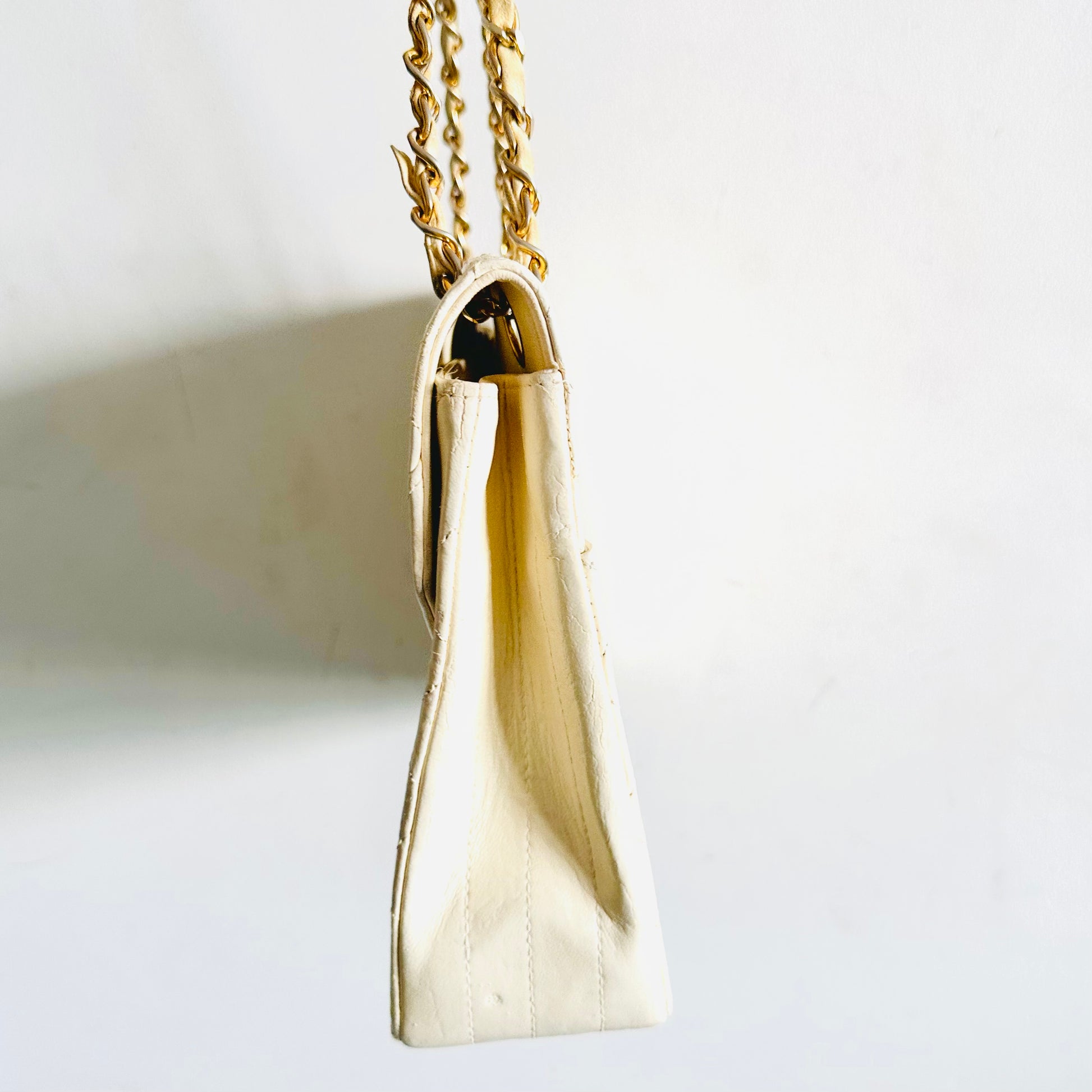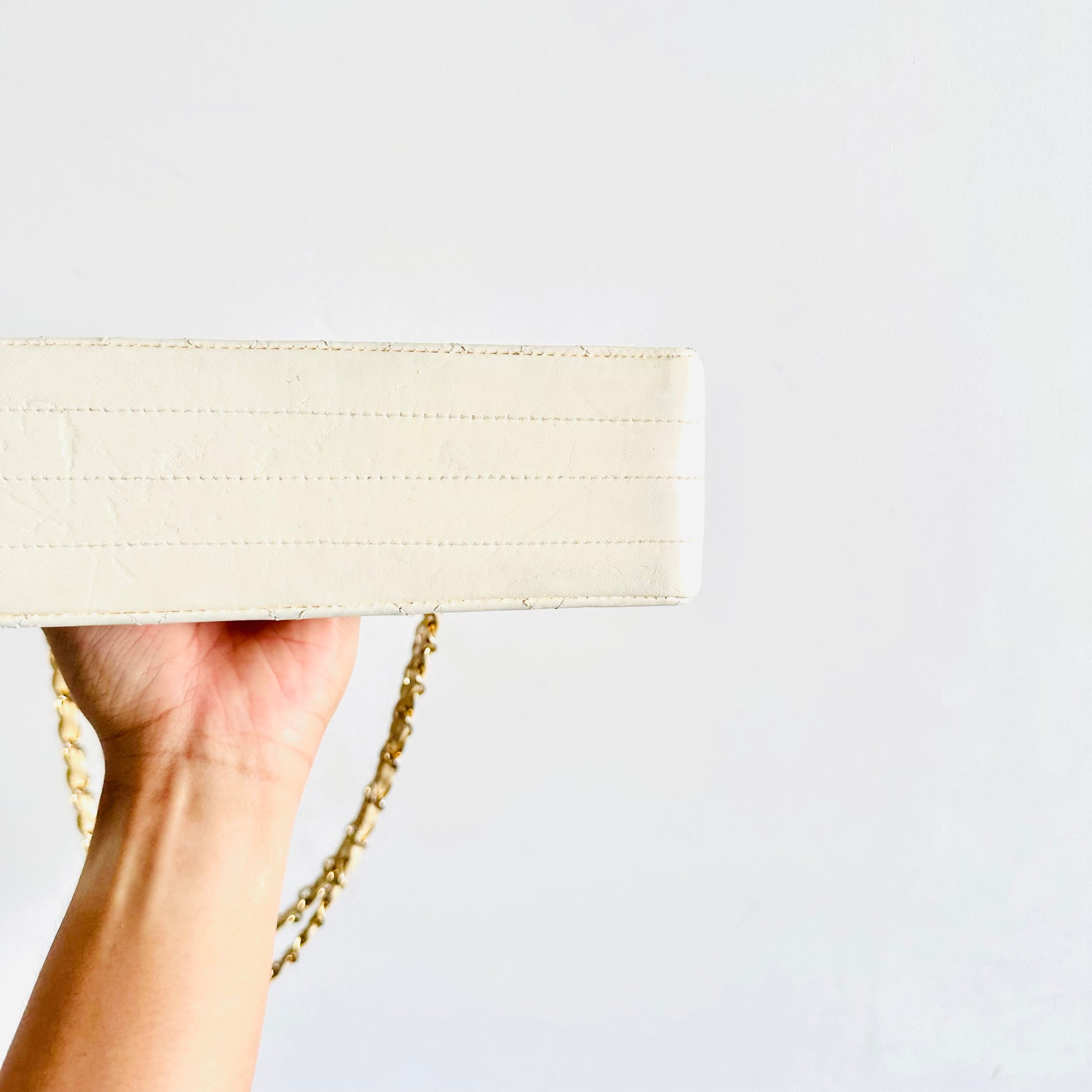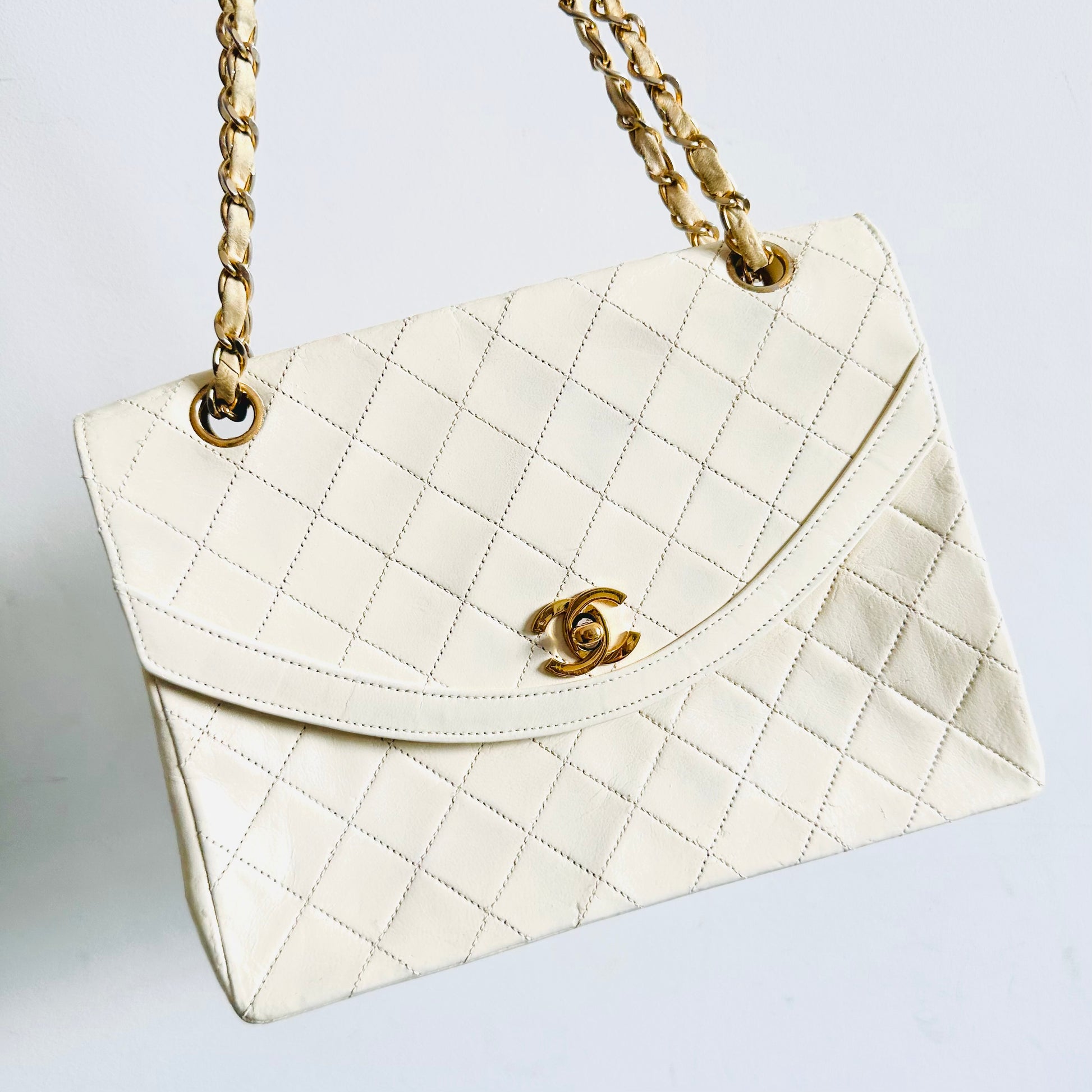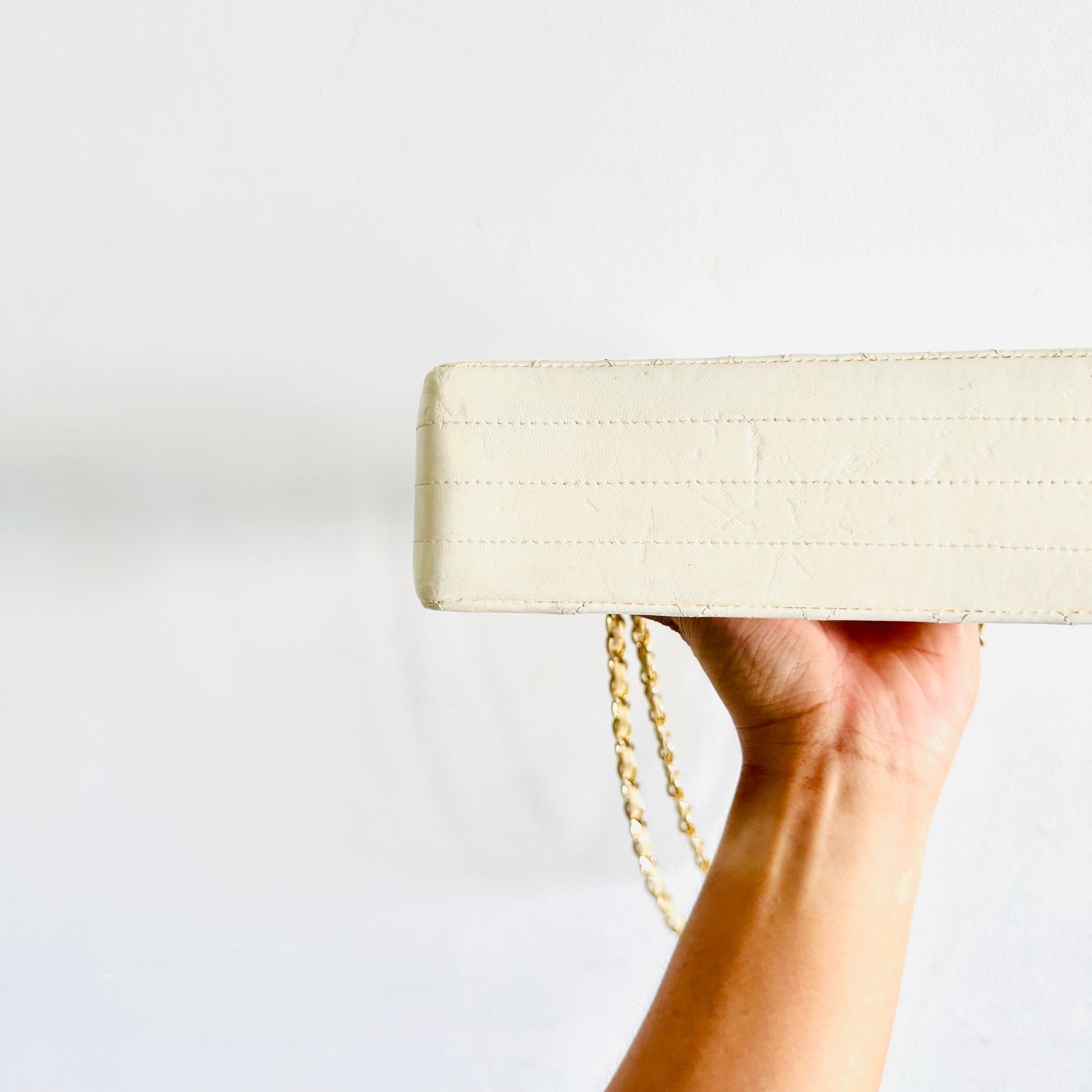 Chanel White GHW Diana Round Medium Classic Single Flap CC Logo Quilted Lambskin 2-Way Vintage Shoulder Sling Bag 0s
