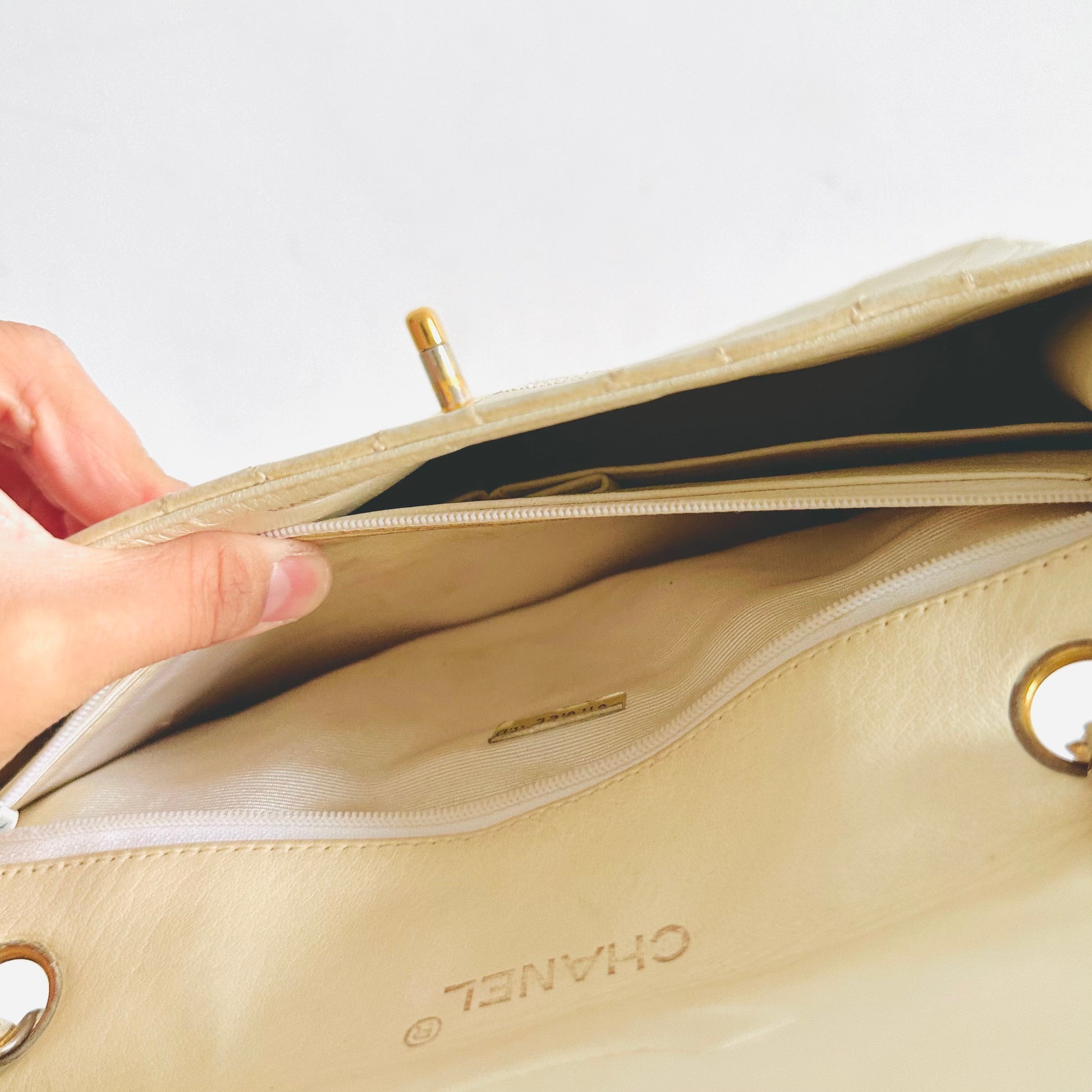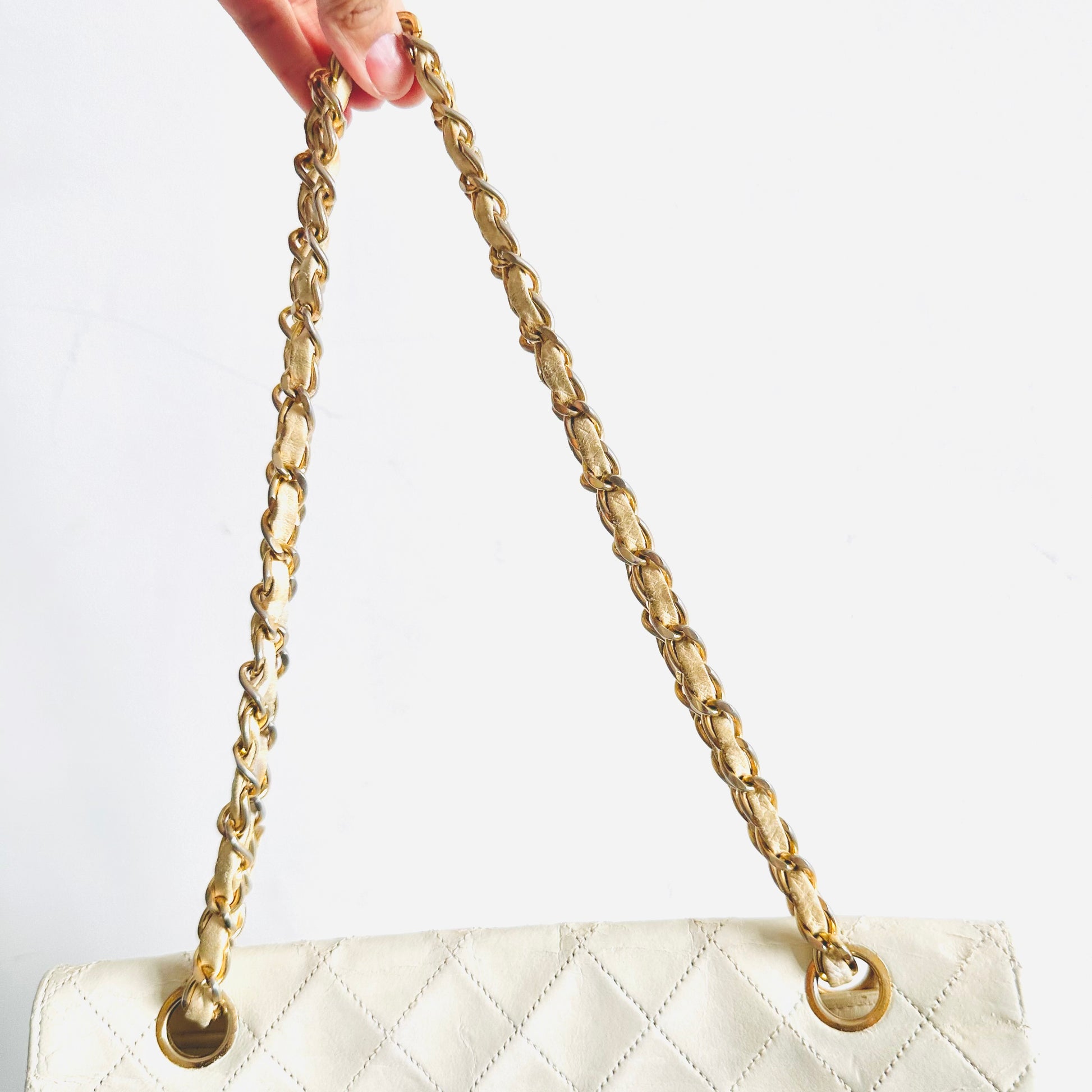 Trivia note: Some vintage Chanels tend to have one chain link without leather linked through like this one as this was before Chanel managed to loop the leather through all the links, it’s a normal occurrence during this era and absolutely not a defect :)