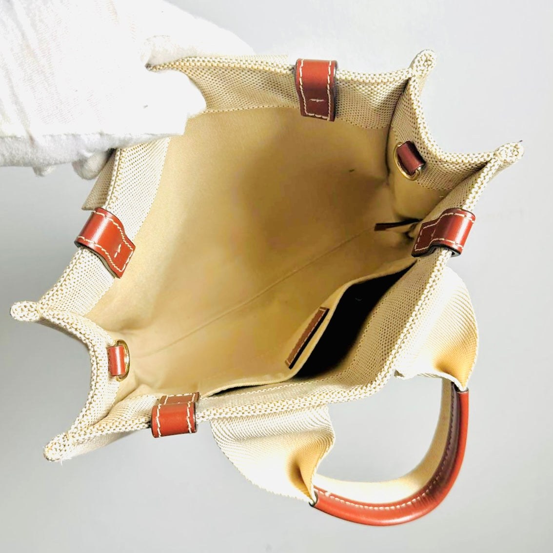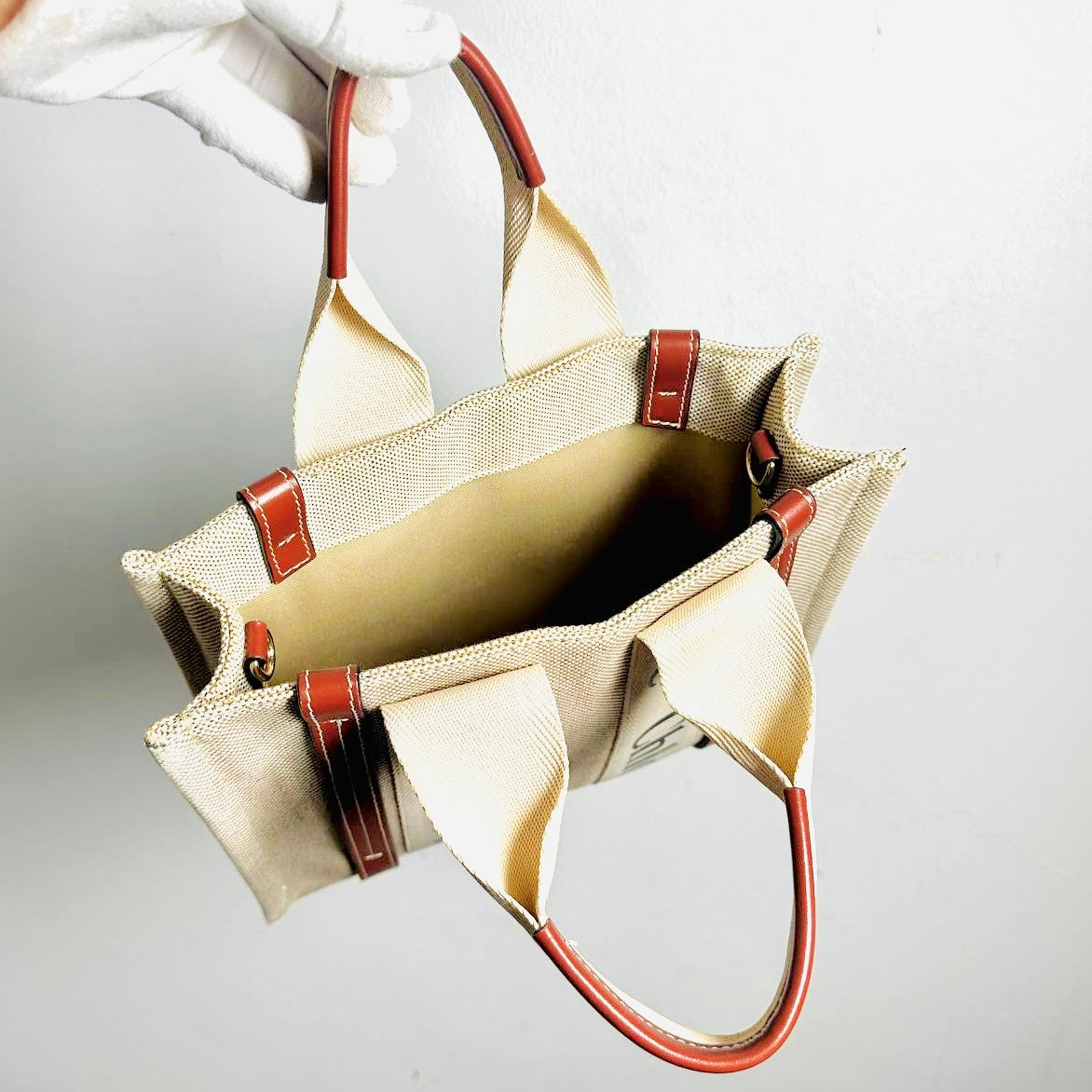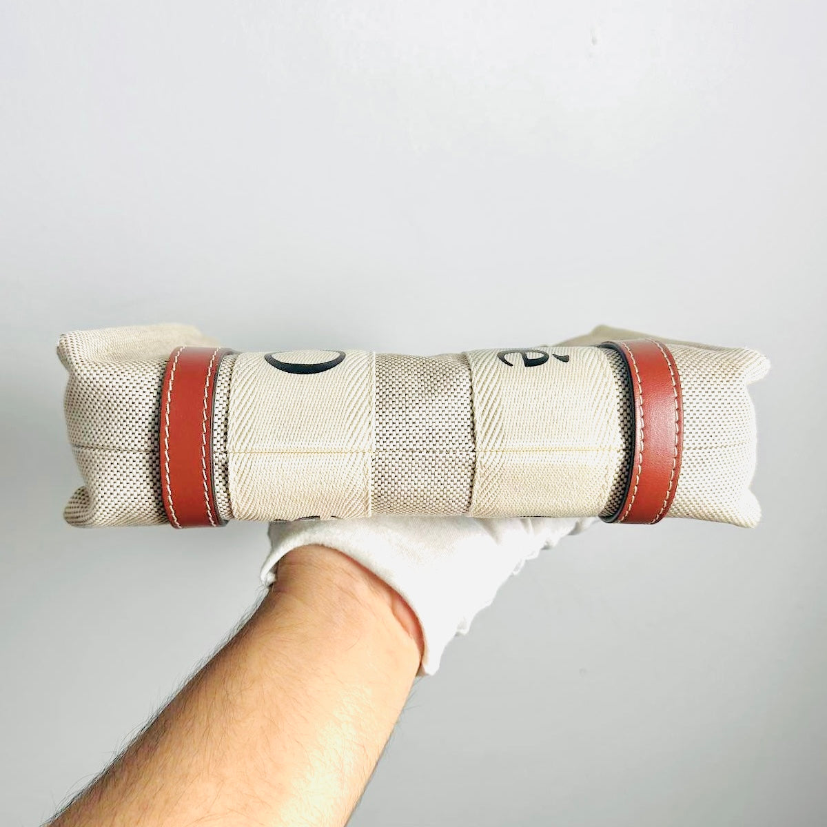 Chloe Woody Beige / Brown Monogram Logo 2-Way Small Shopper Shoulder Sling Tote Bag