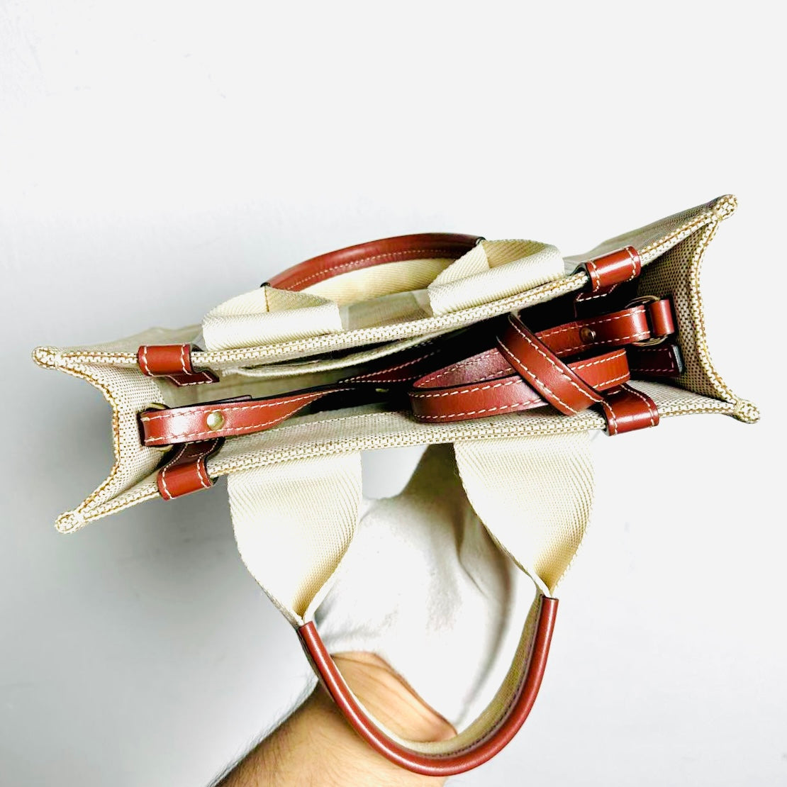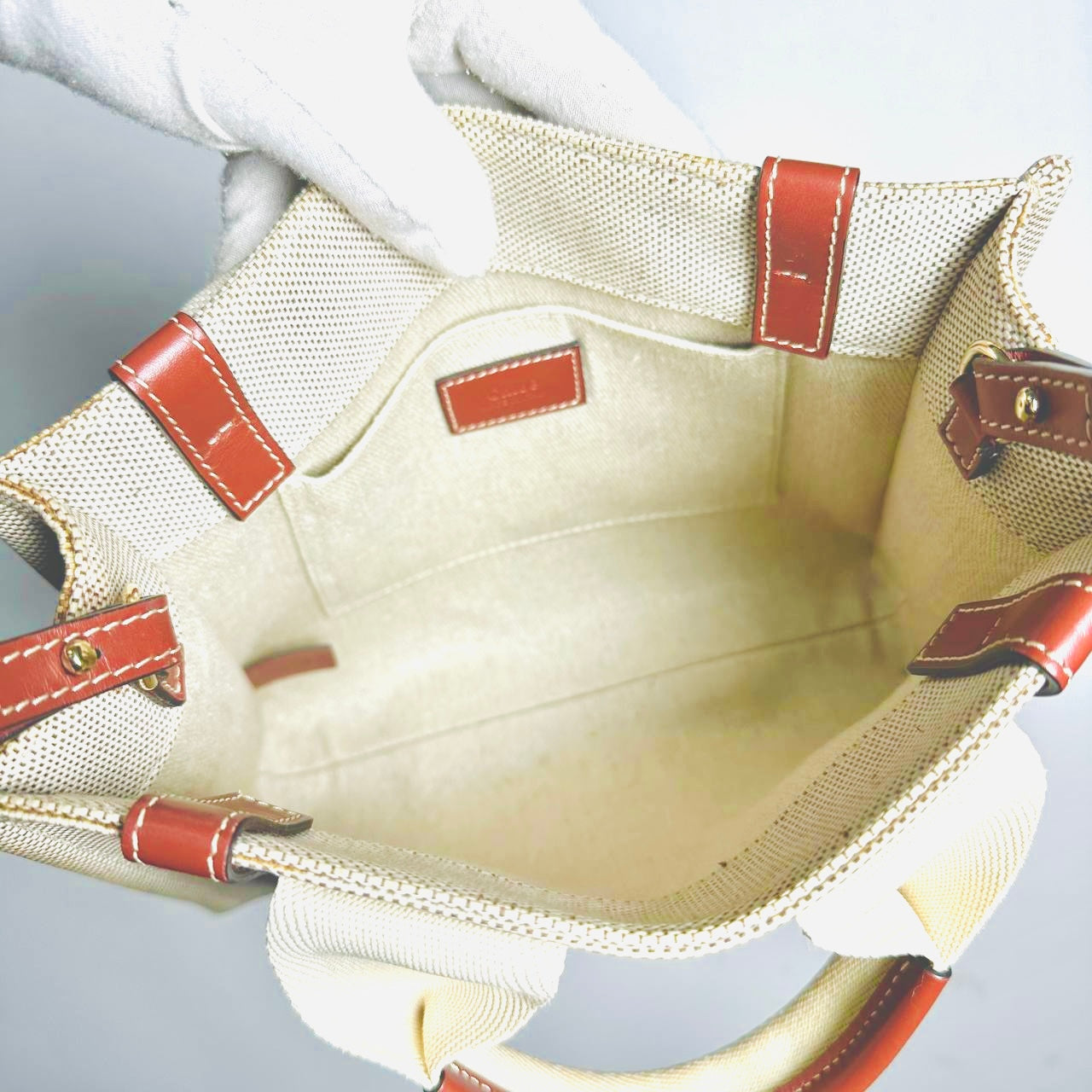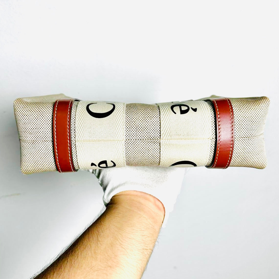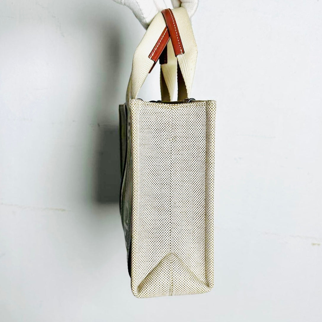 Chloe Woody Beige / Brown Monogram Logo 2-Way Small Shoulder Shopper Sling Tote Bag