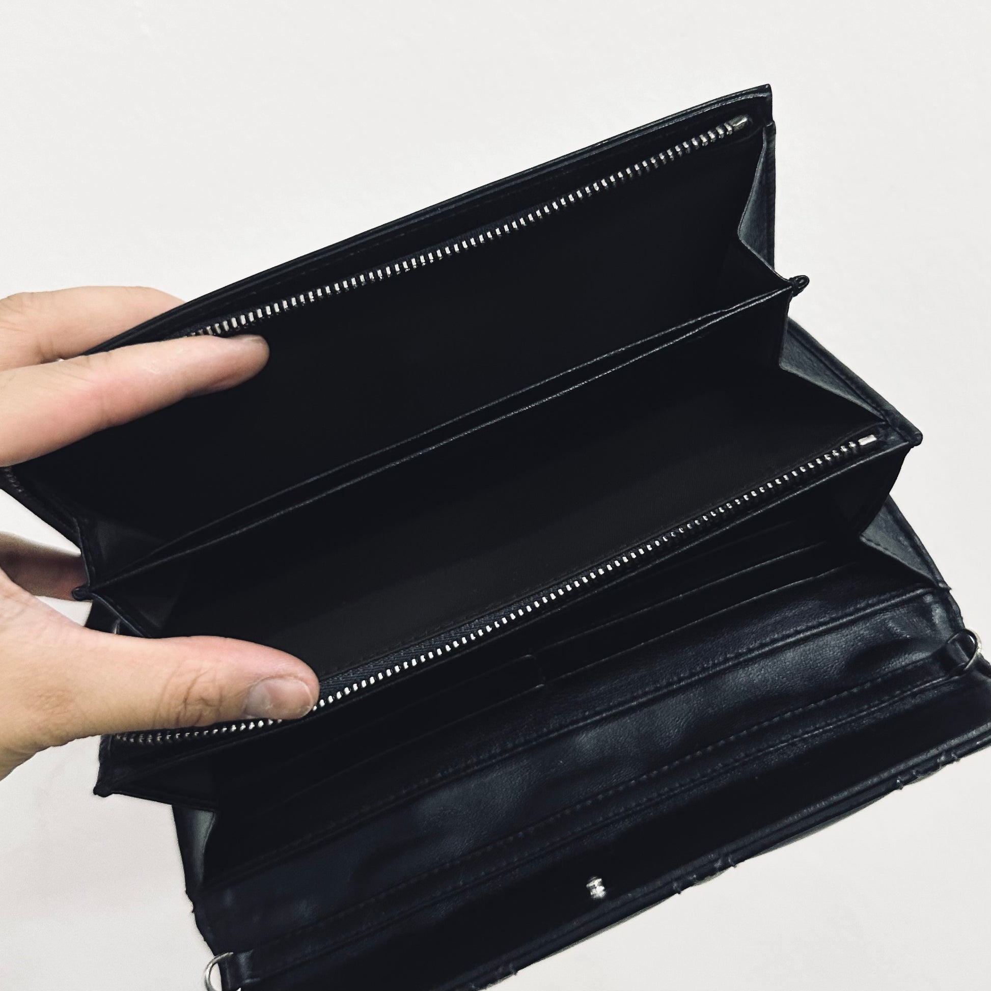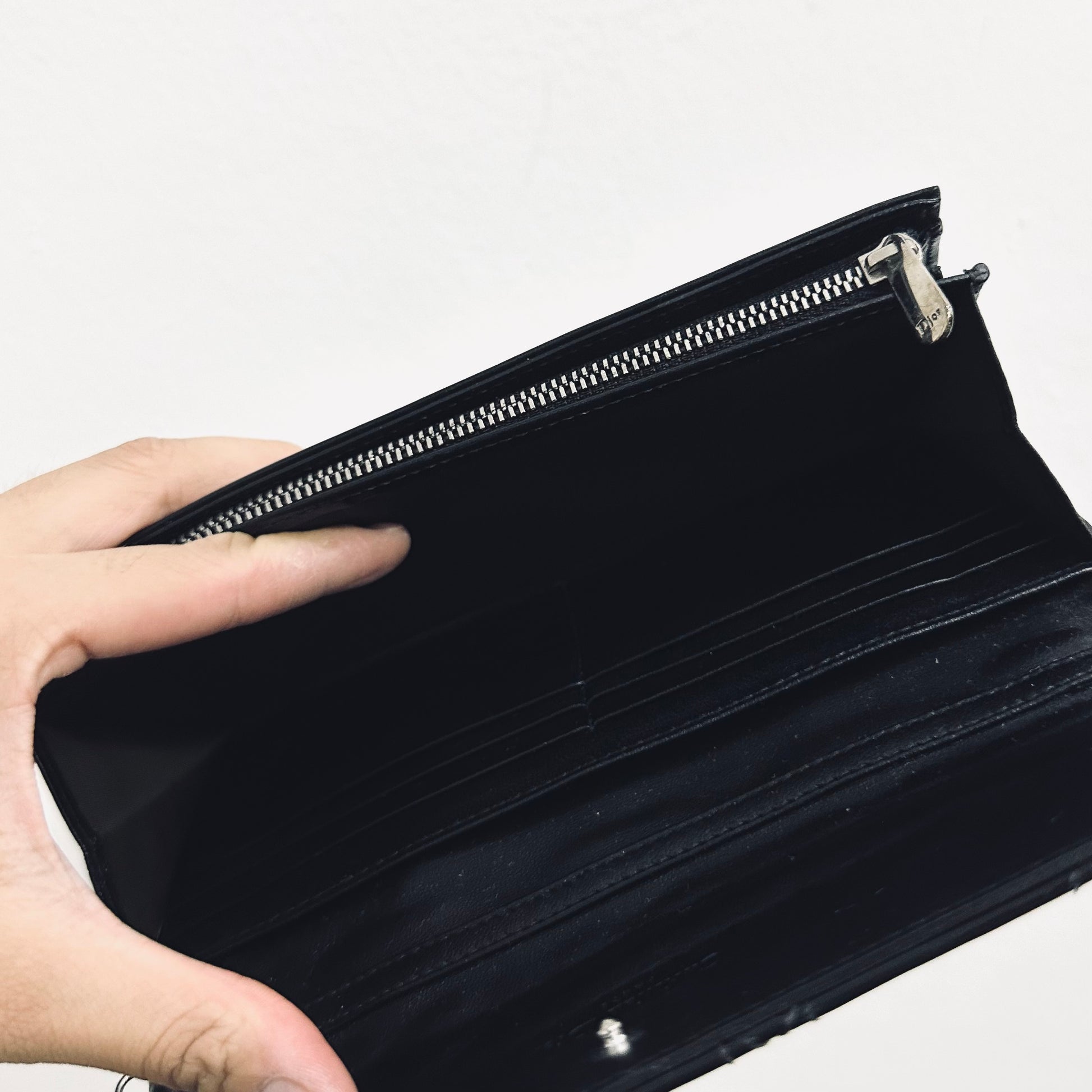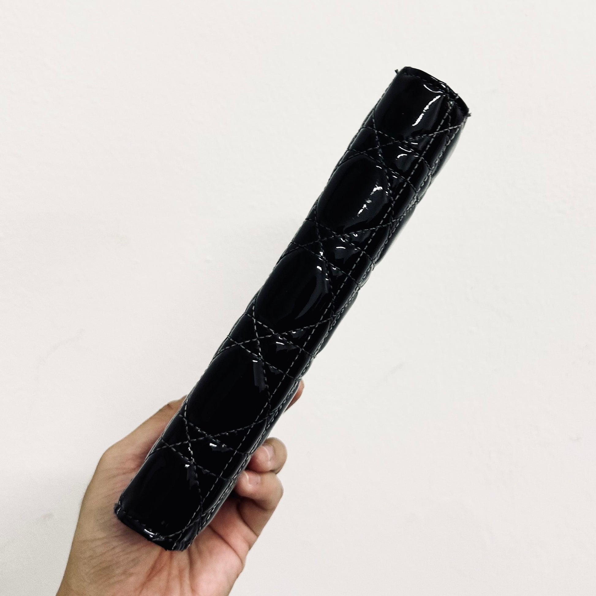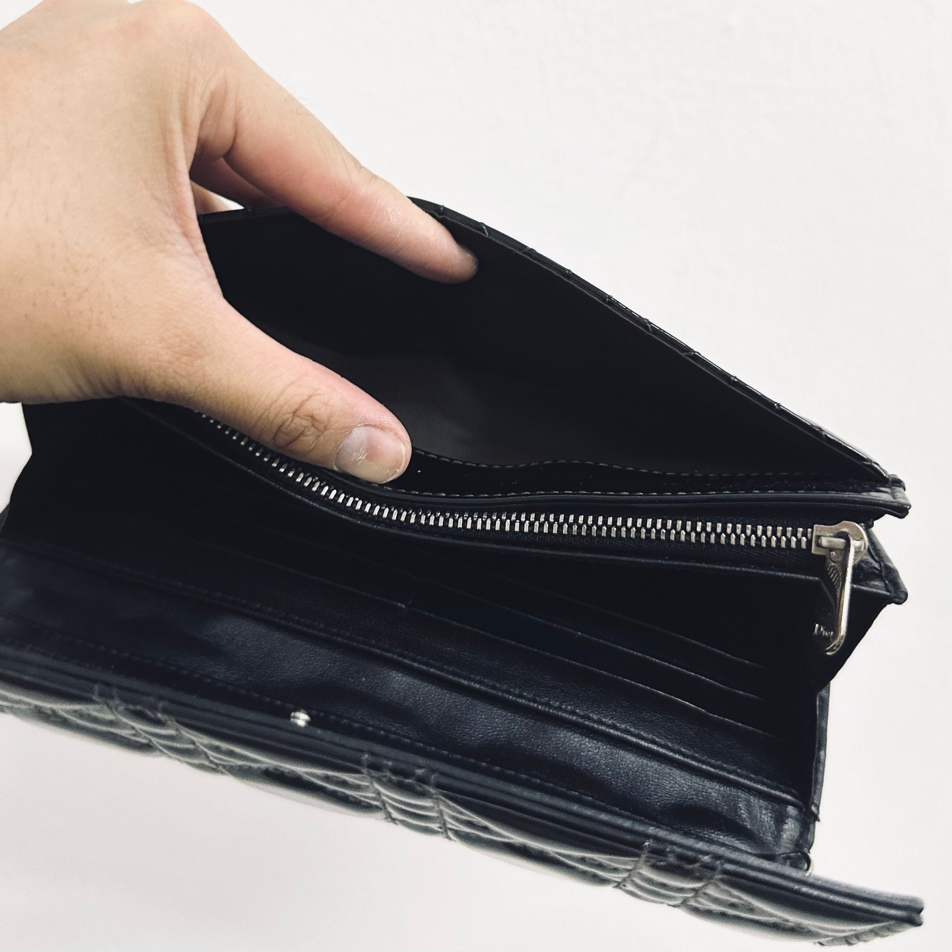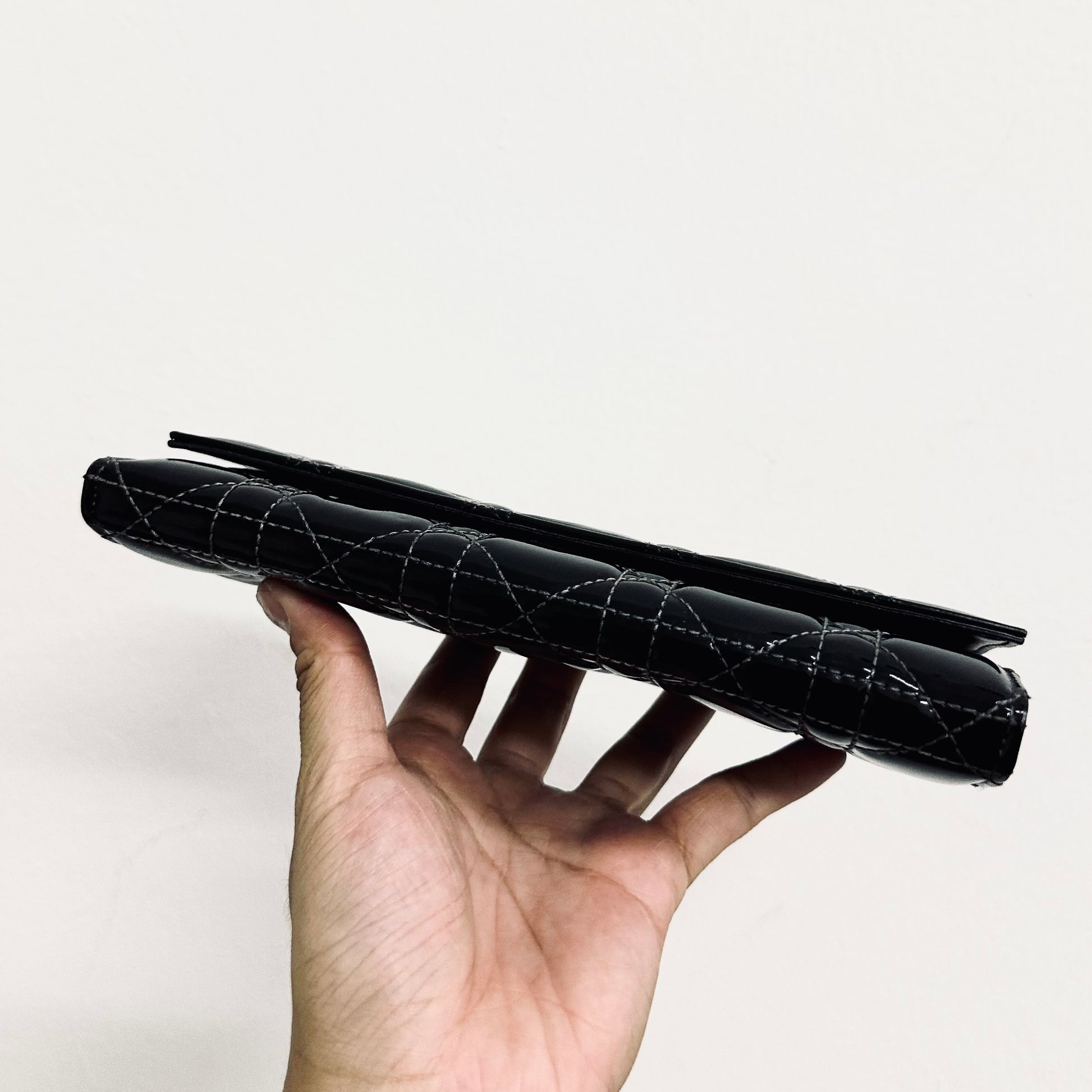 Christian Dior Black Lady Dior Flap CD Monogram Logo Quilted Cannage Patent Leather Long Flap Wallet
