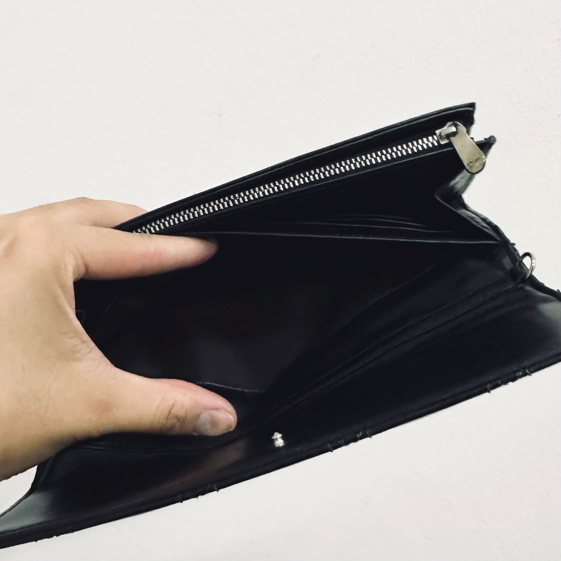 Preloved 9.5/10. This has a flap button closure, slip pockets, zip pocket, card slots and central compartment. This measures 19x10x2cm.