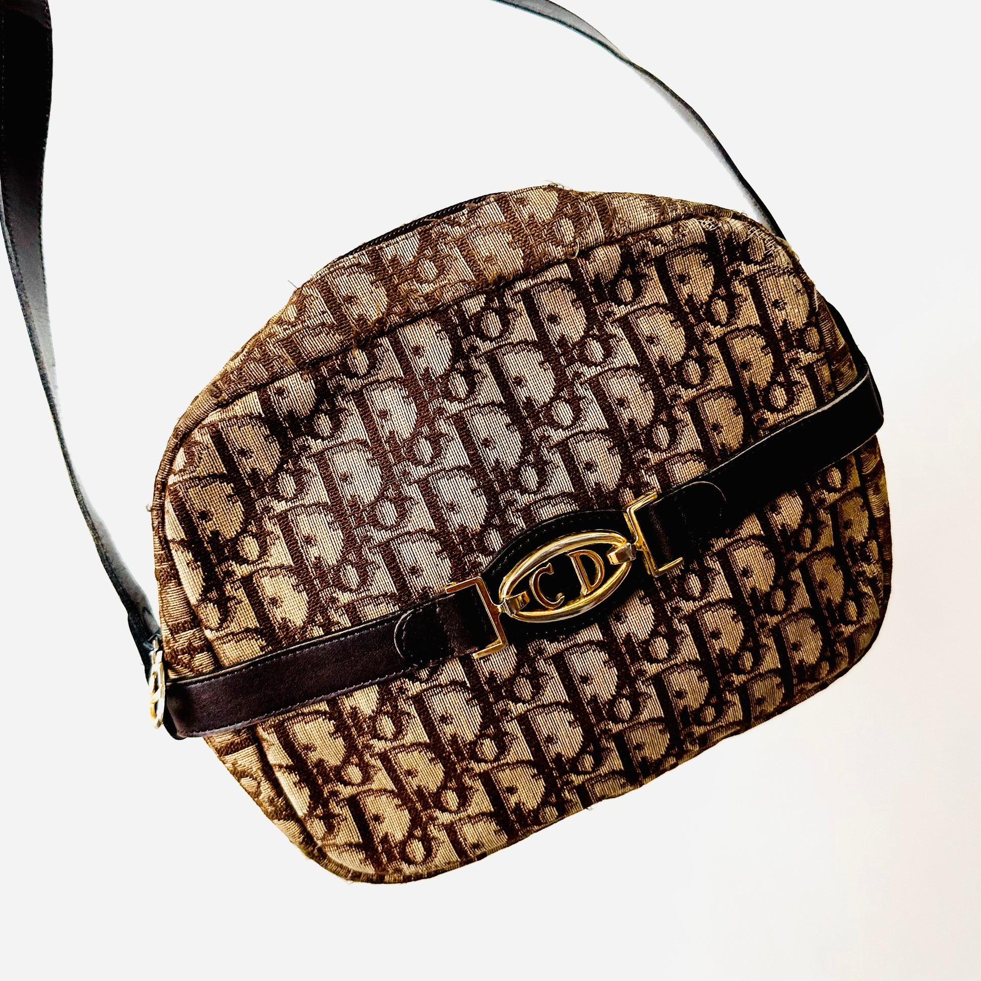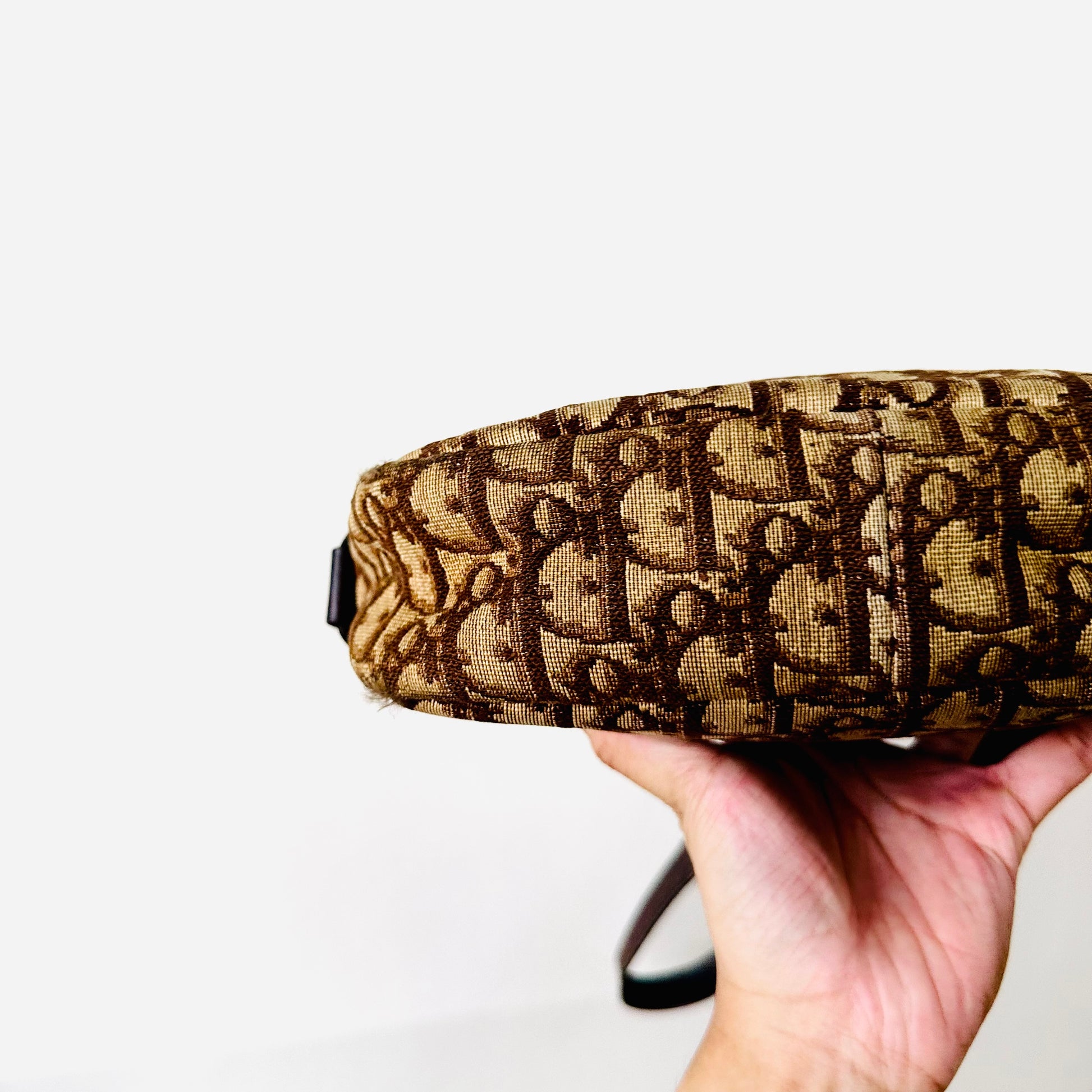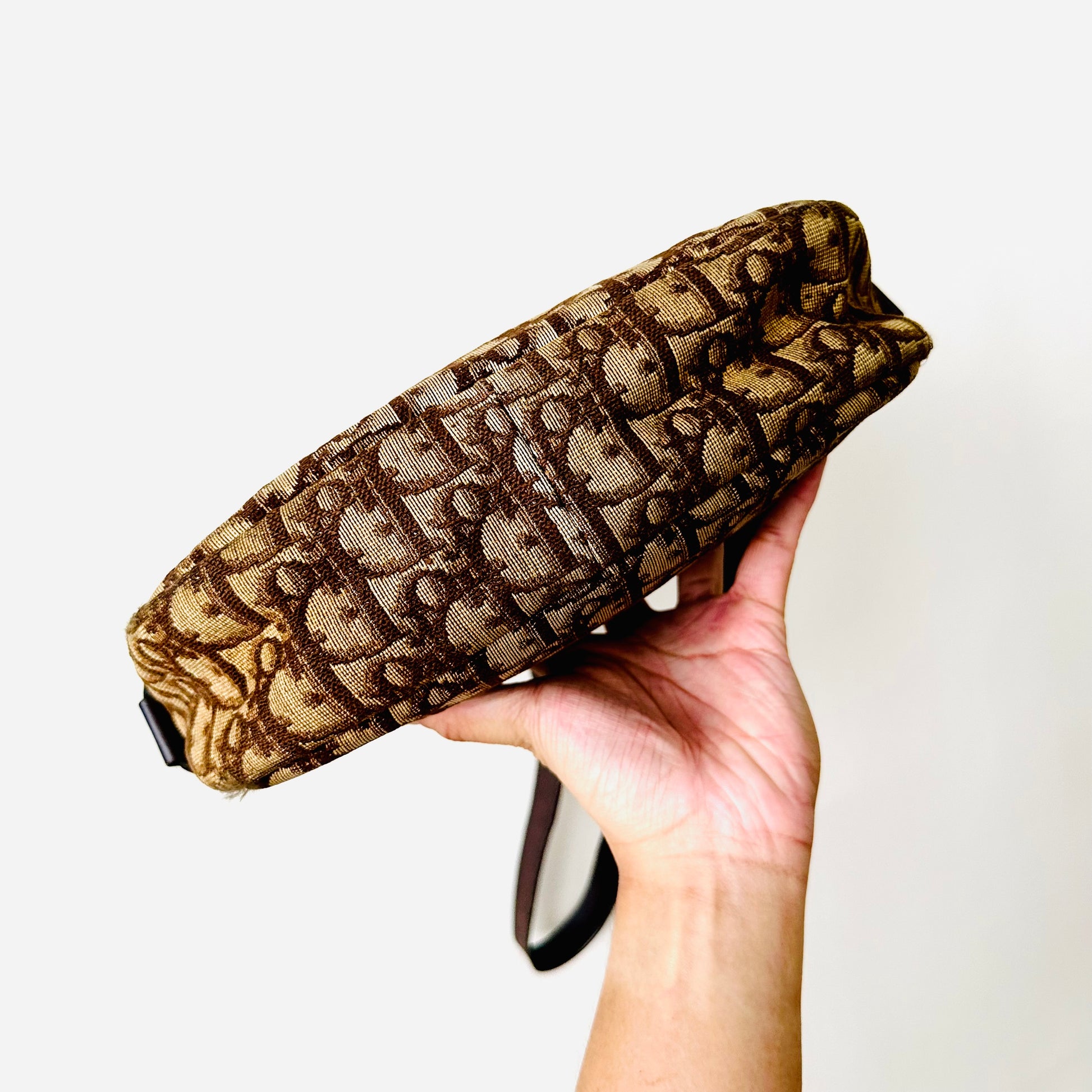 Christian Dior Brown GHW Oblique Monogram CD Logo Zip Shoulder Sling Bag