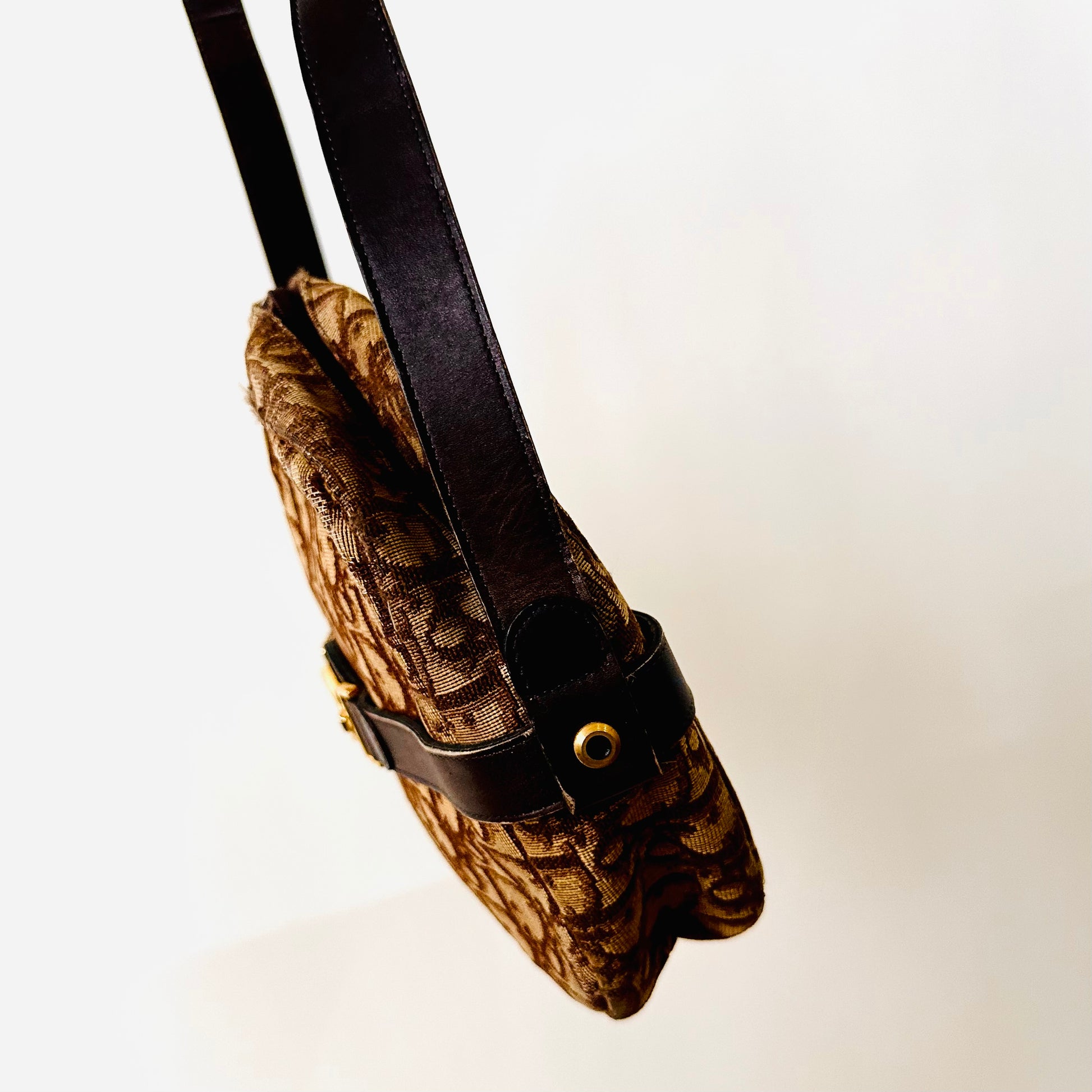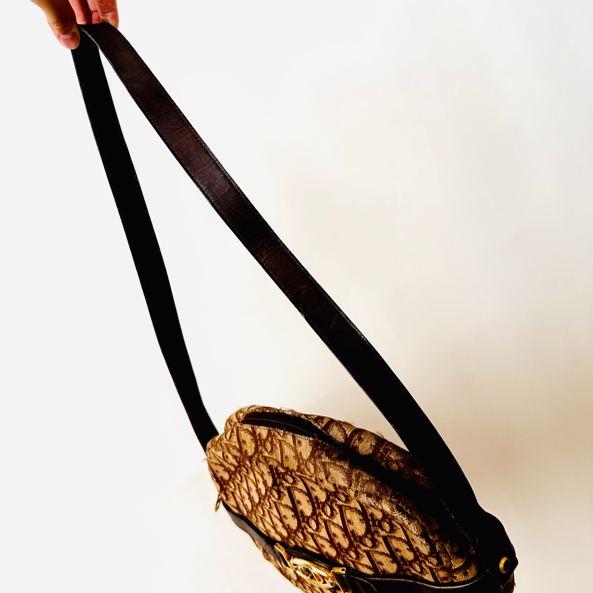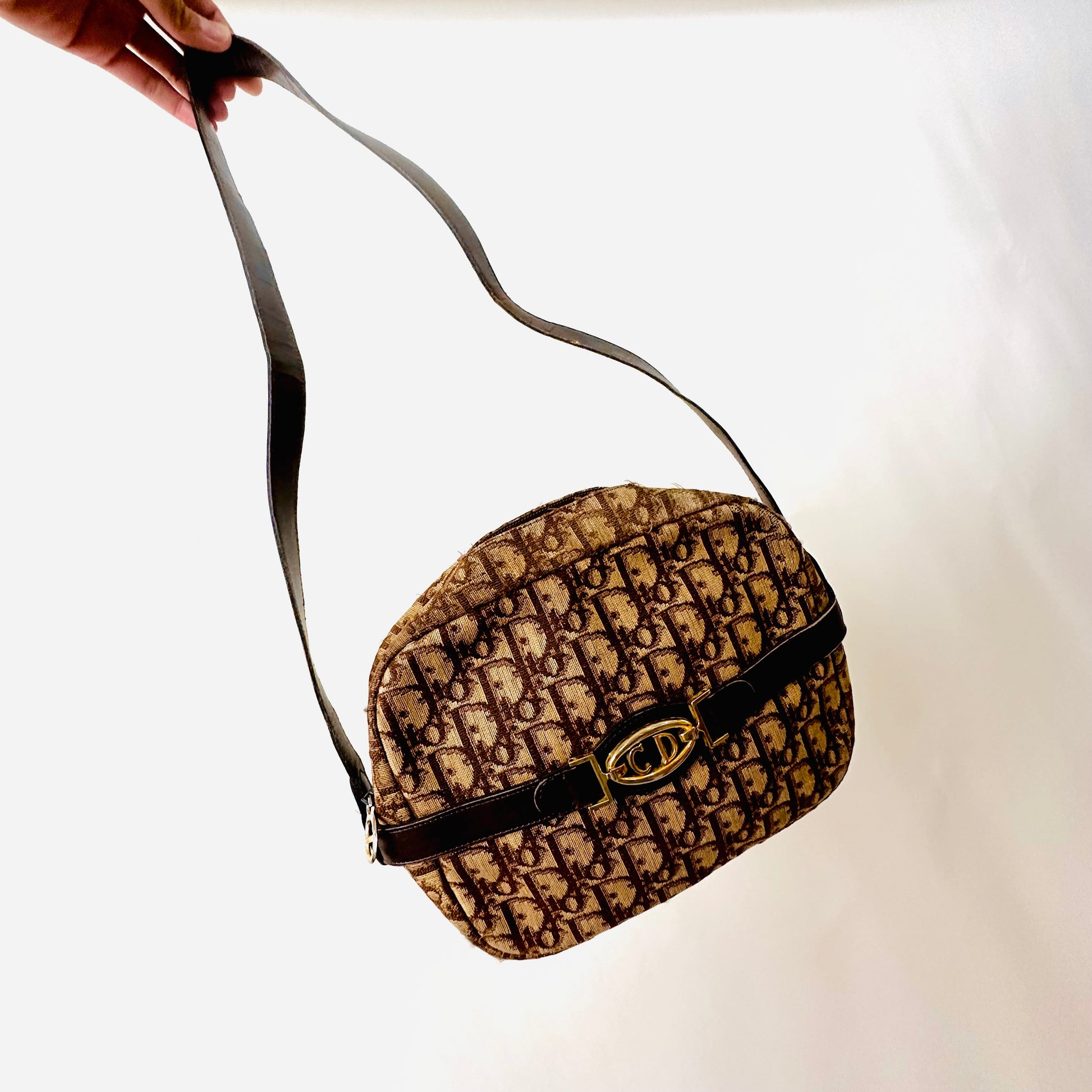 Christian Dior Brown GHW Oblique Monogram CD Logo Zip Shoulder Sling Bag
