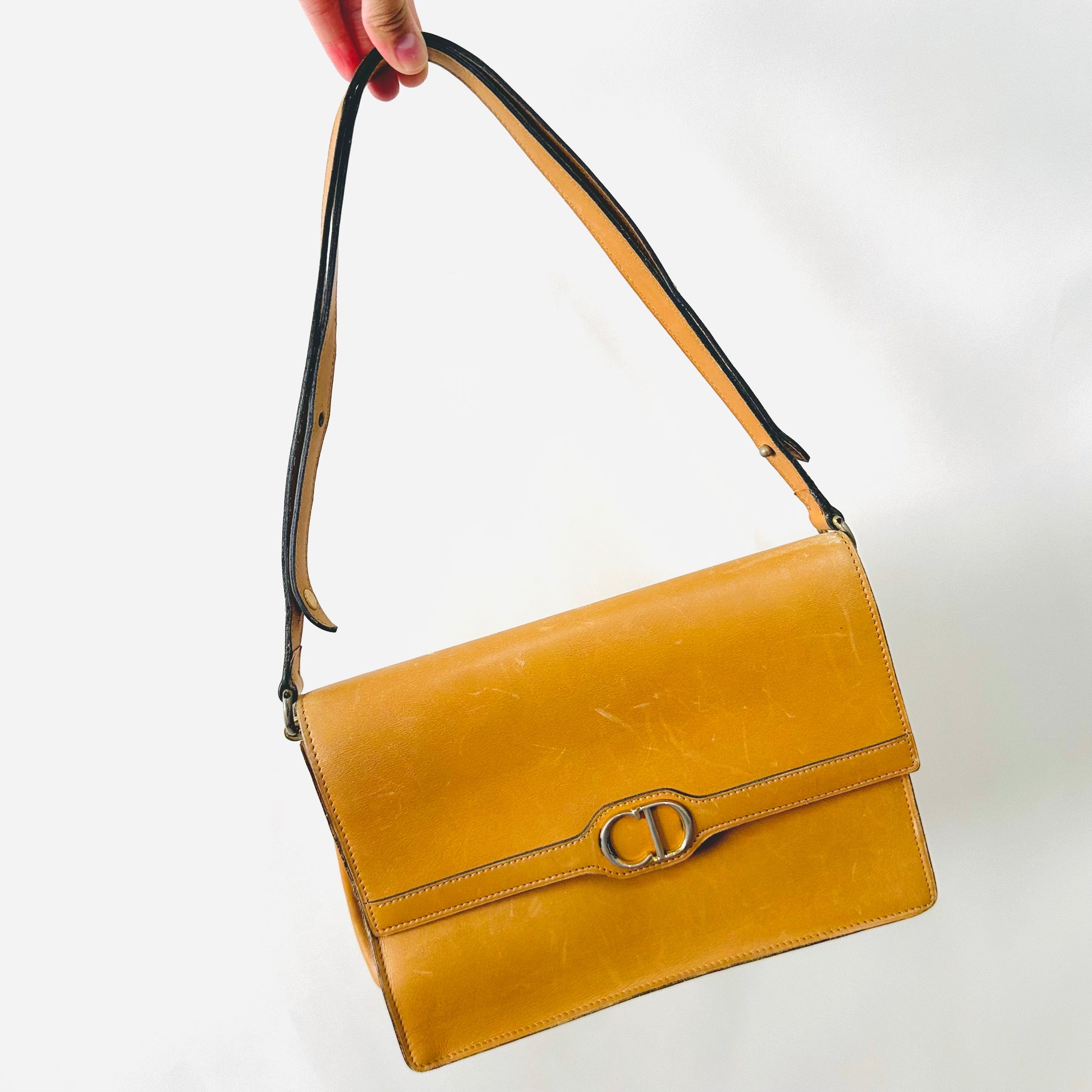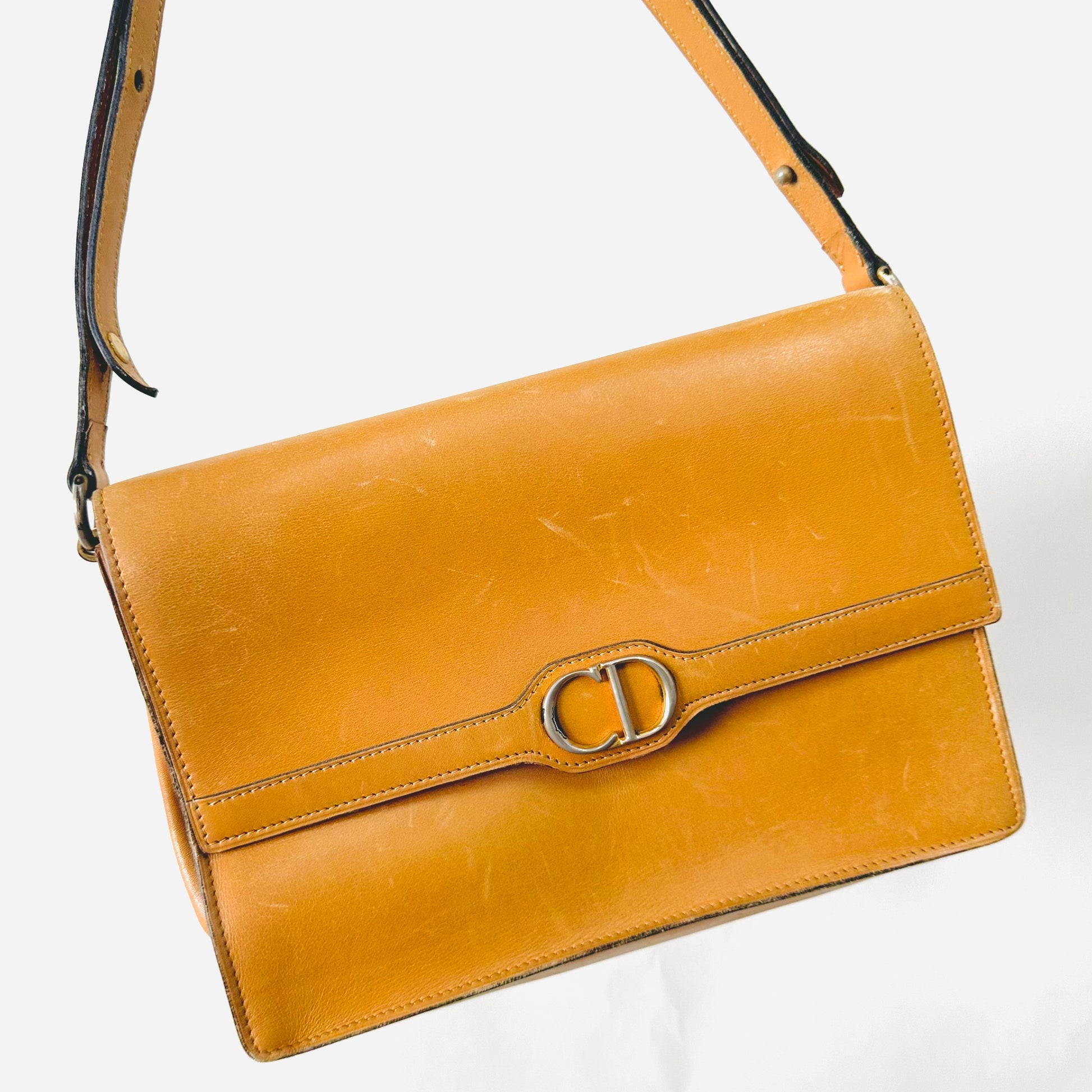 Christian Dior Caramel Brown GHW Monogram CD Logo Smooth Leather 2-Way Vintage Flap Shoulder Sling Bag